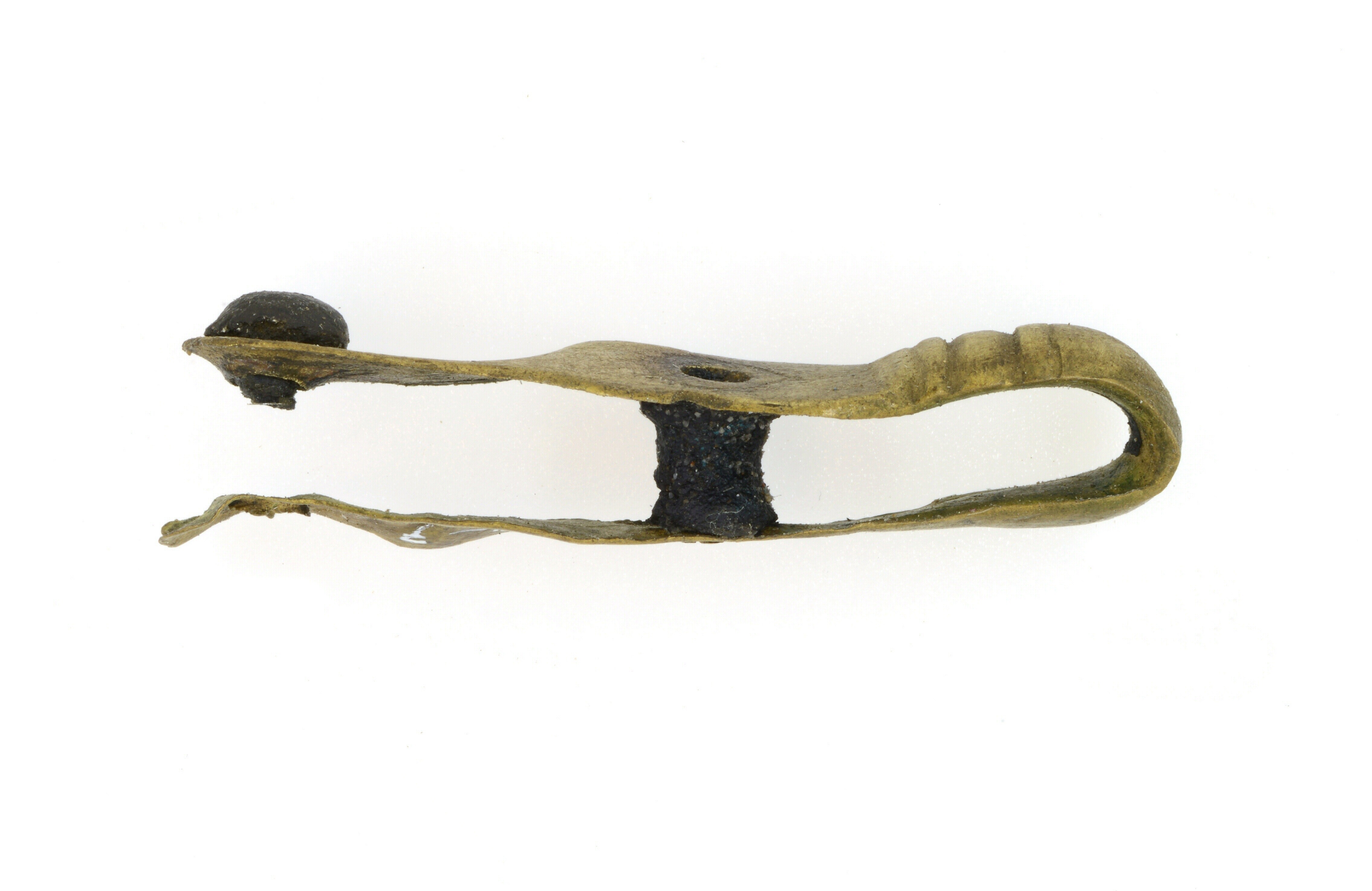 Riemverdelerhaak; paardetuig; omgeslagen met aan beide uiteinden een verbindingsgat