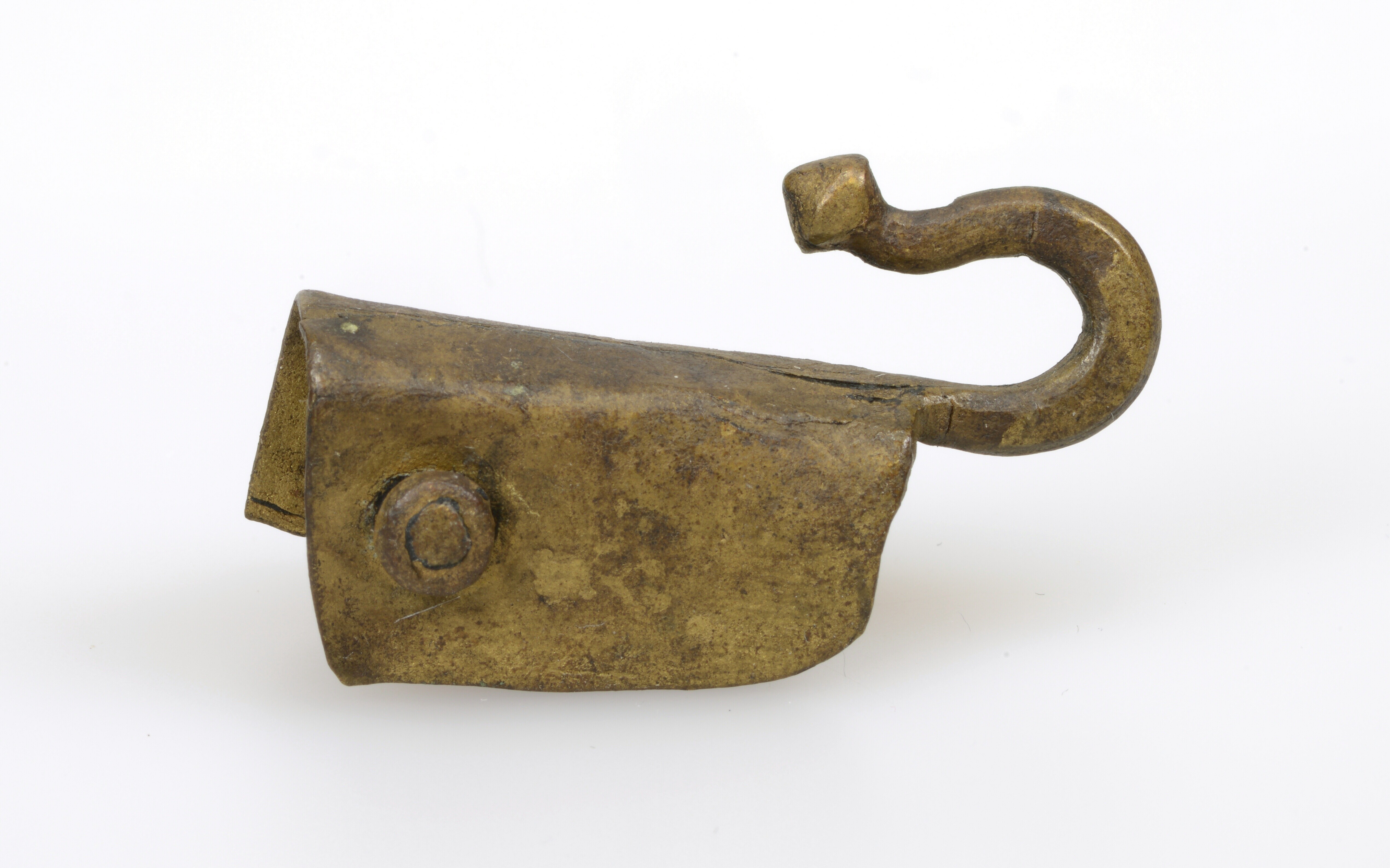Dolabraschede haak; kokervormig buisje met aan het uiteinde een haak; bronsblik