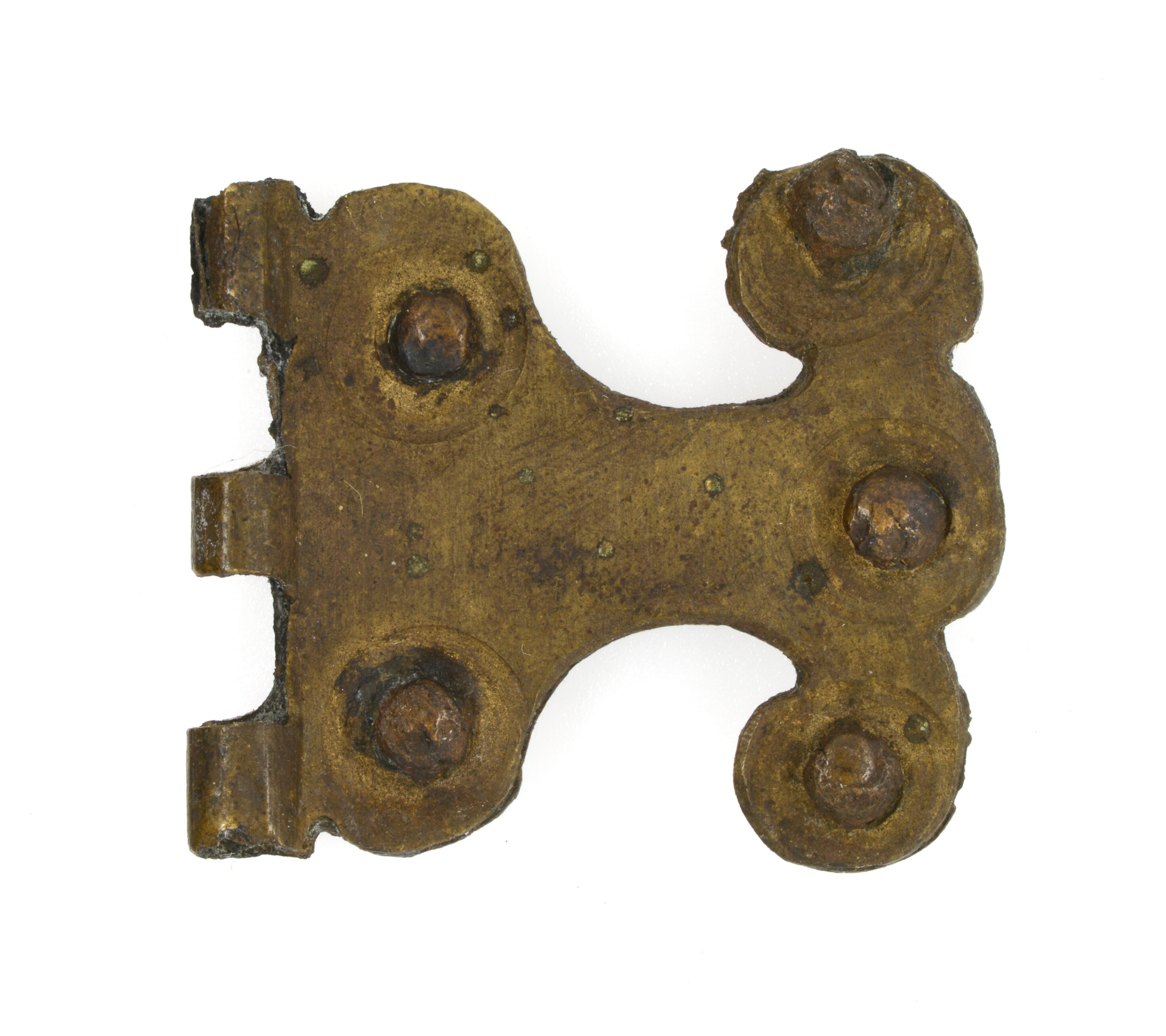 Schouderscharnier; pantserscharnier lorica segmentata; sierlijk gevormd met vijf klinknagels