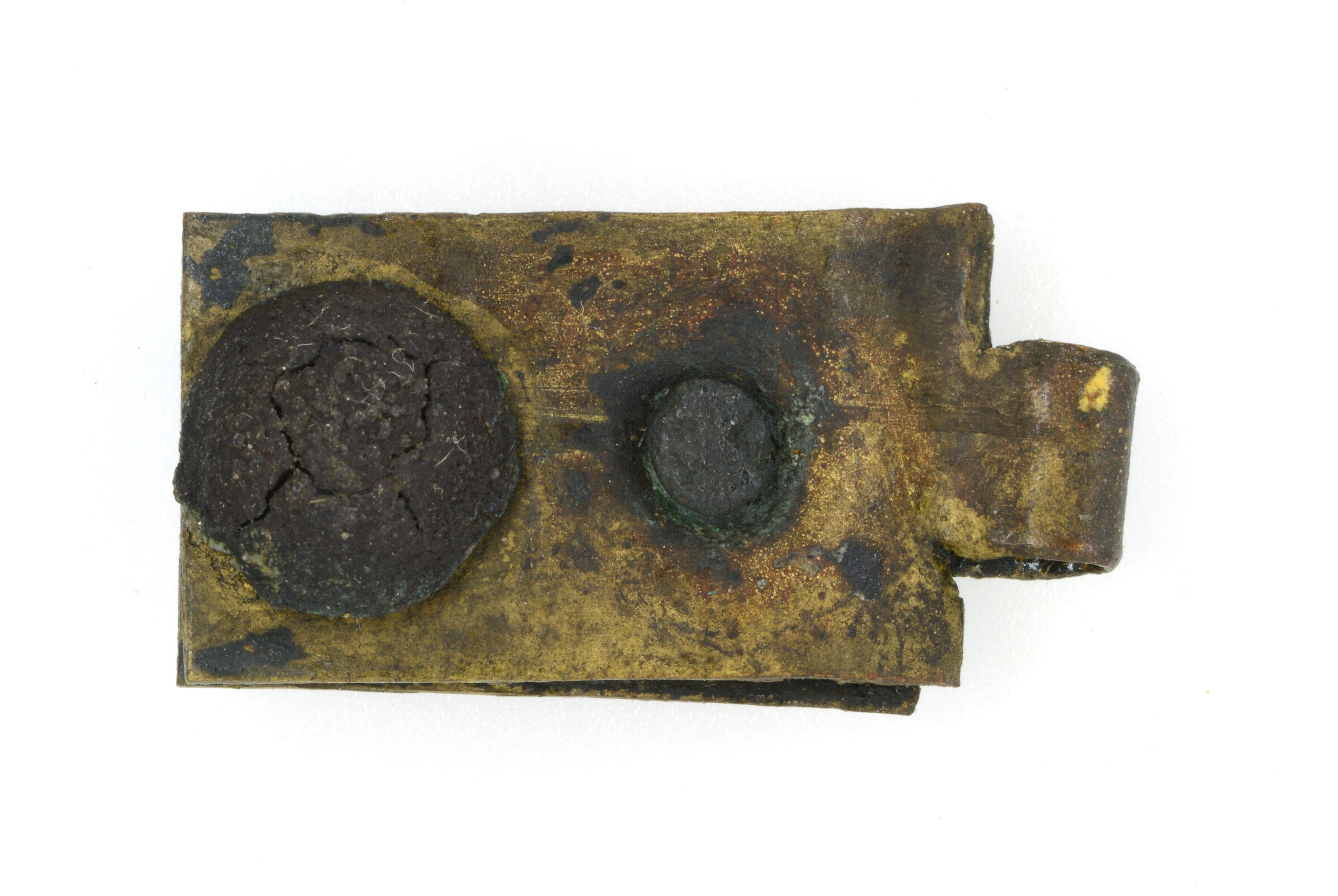 Pantsergespplaat; lorica segmentata; rechthoekig plaatje met twee klinknagels