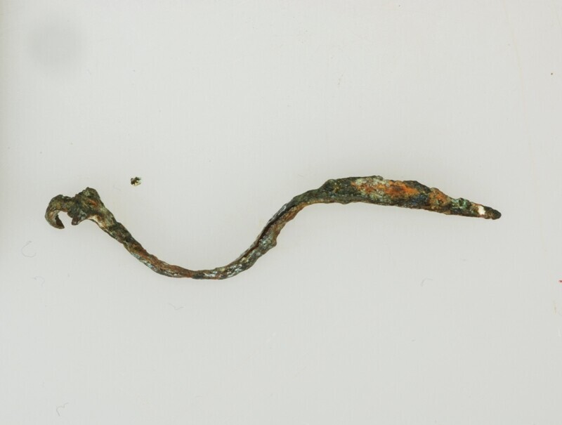 Ogenfibula (?); knikfibula?; naald en veerhouder ontbreken; vondstomstandigheden: tussen tunnel en Beeckestein bij Amsterdamse weg, oostelijk van sleuf gasunie, datum: 21-1967