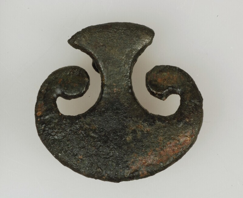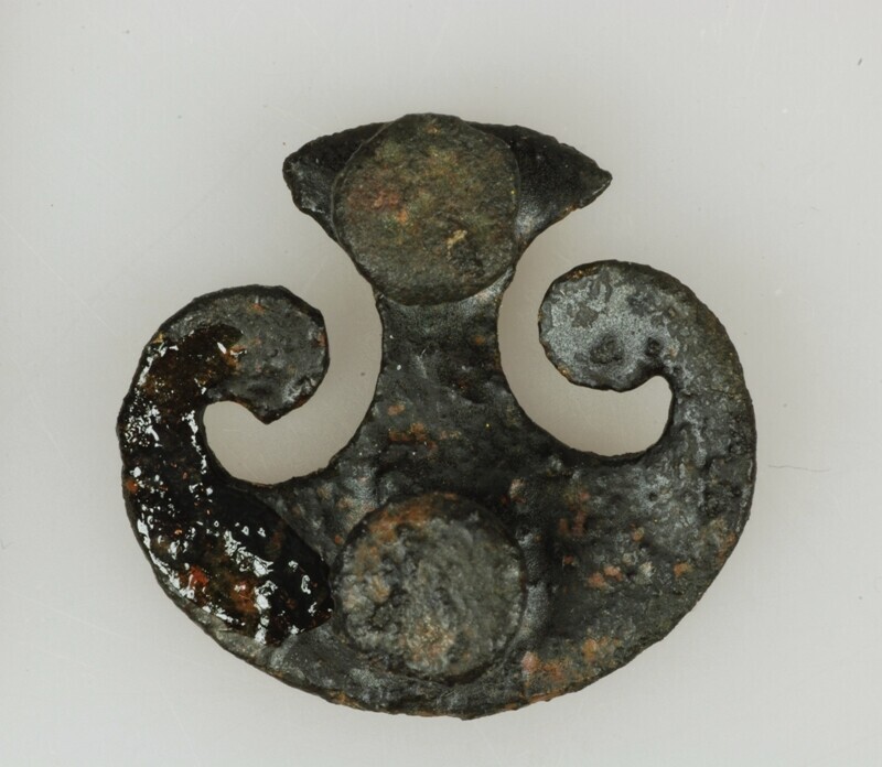 Beslag; peltavormig, vermoedelijk van een ketting van een drinkhoorn o.i.d. ; vondstdatum: 04-12-1995; vondstomstandigheden: detector recente sloot