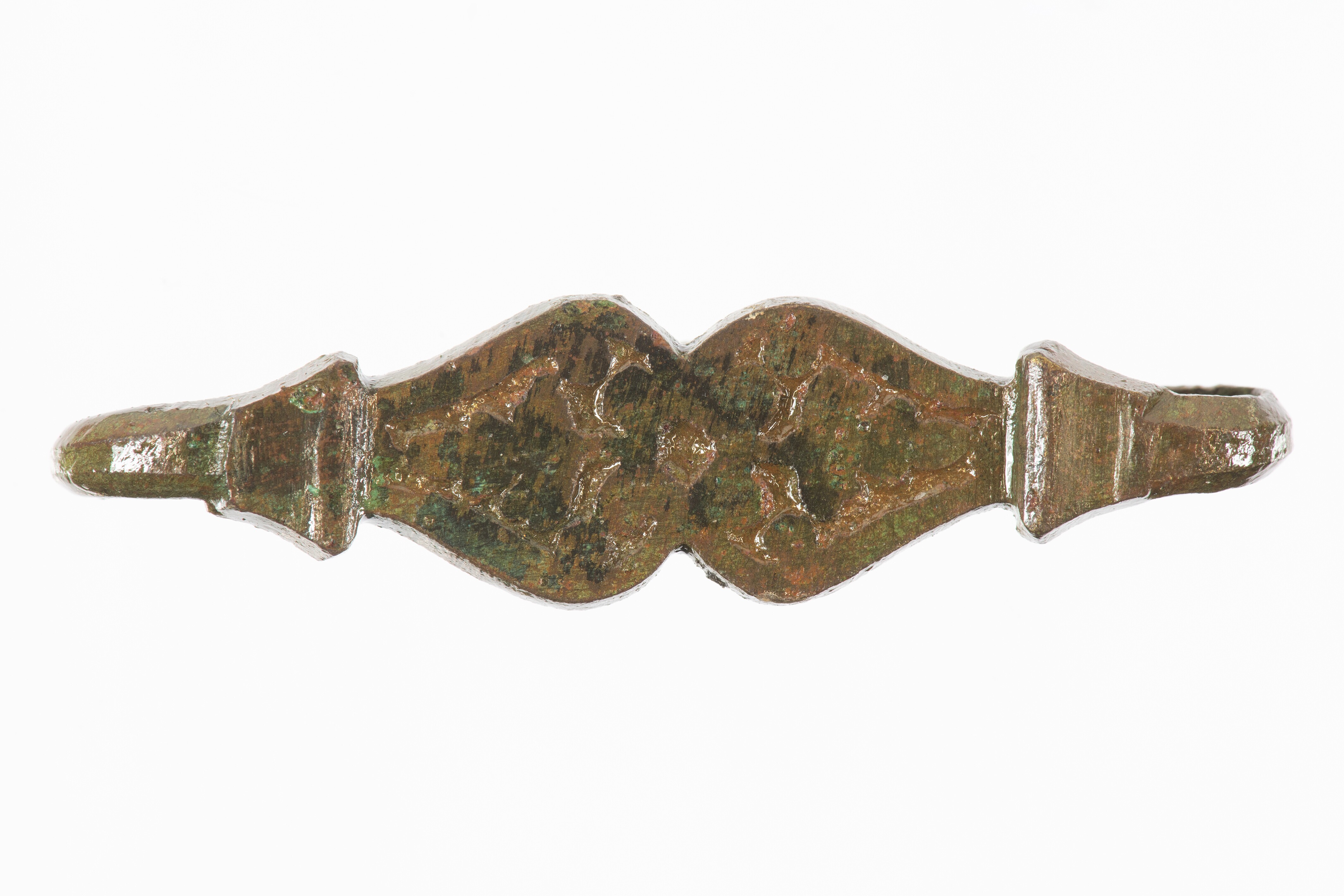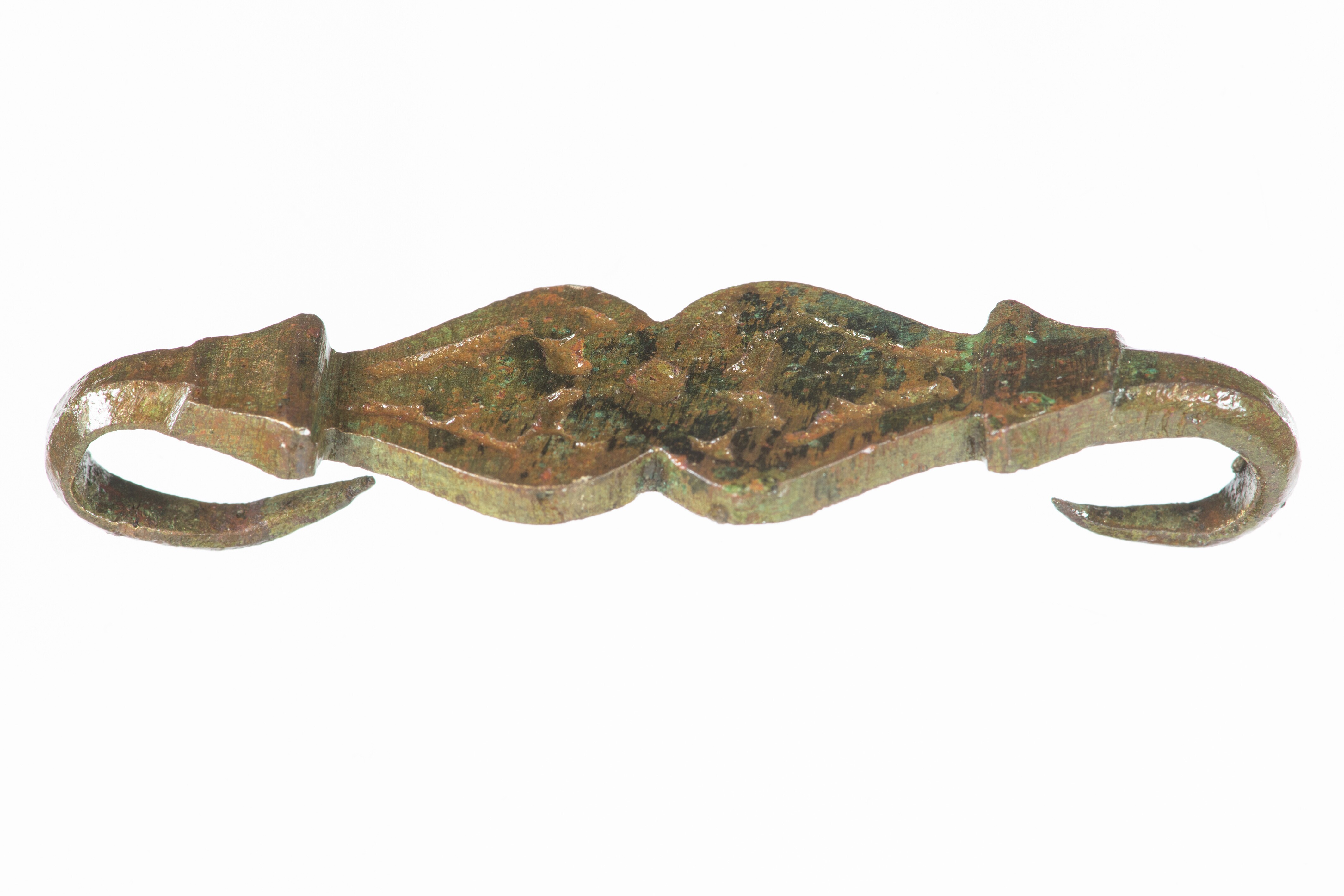 Kledinghaak; kledinghaak met versierde voorzijde en aan weerszijden omgebogen haken