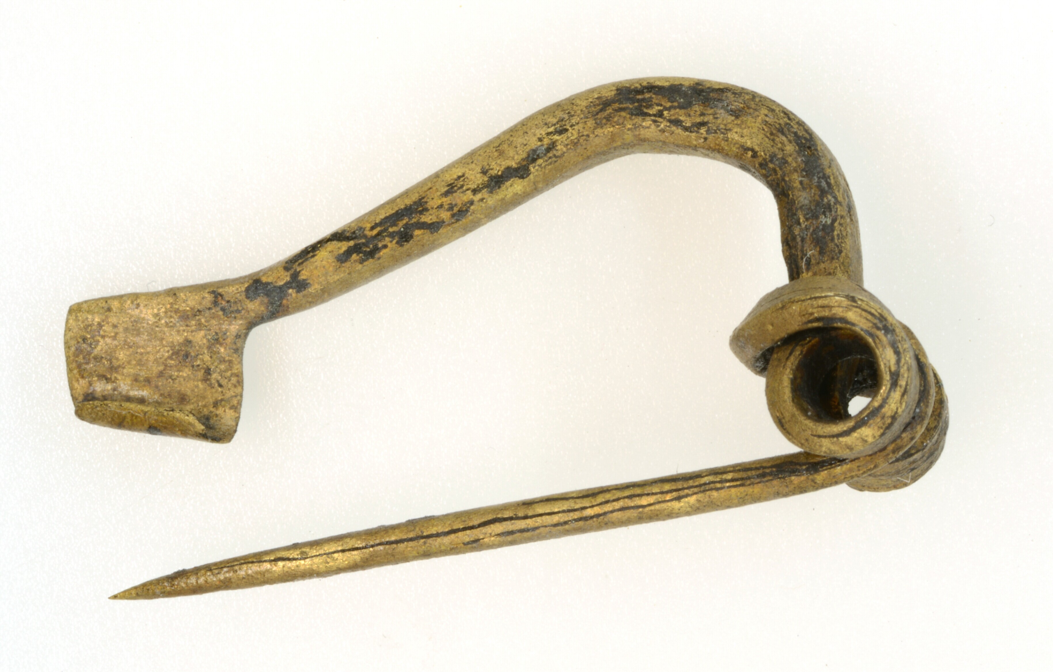 Draadfibula; type als vnr 116; relatief hoge bolle beugel met een opengewerkte naaldhouder