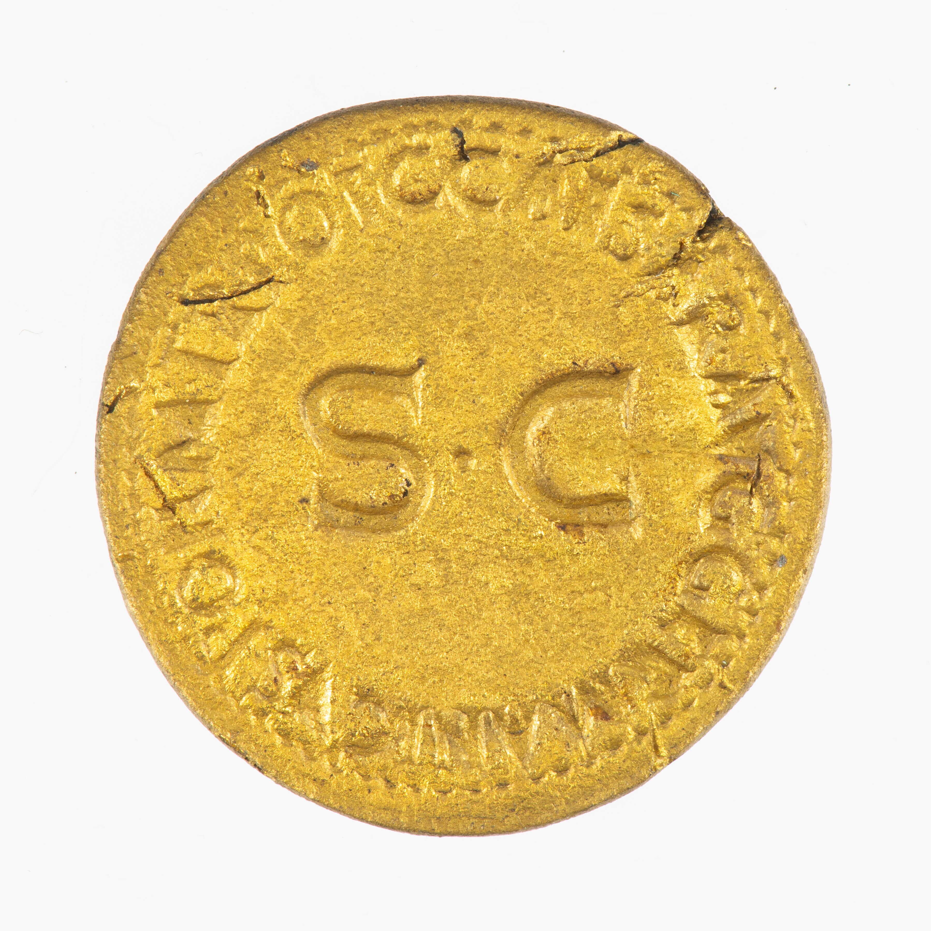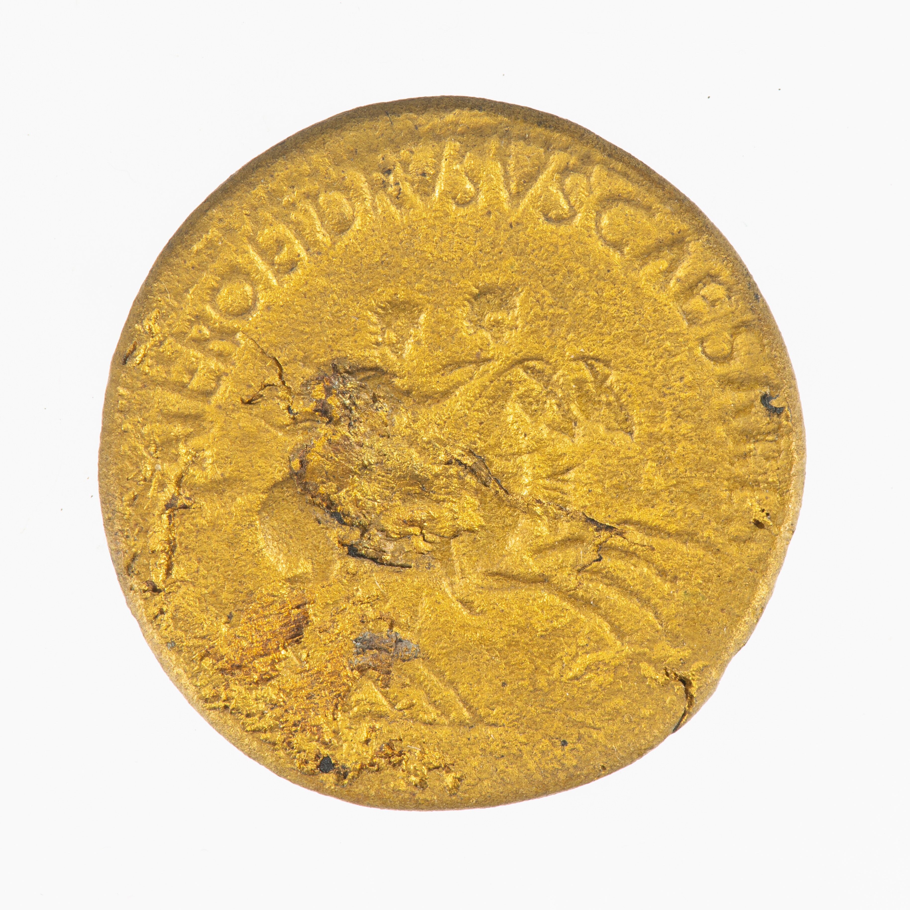 Dupondius Caligula; BMC 44, RIC2 34; vz.: de broers op twee paarden naar rechts met omschrift ''NERO ET DRVSVS CAESARES''; kz.: in het midden staat ''SC'' met het omschrift ''C.CAESAR.AVG.GERMANICVS.PON.M.TR.POT; 10.75 gram (slechts in detail verschillend exemplaar van vnr 45, objectcode 5254-103)