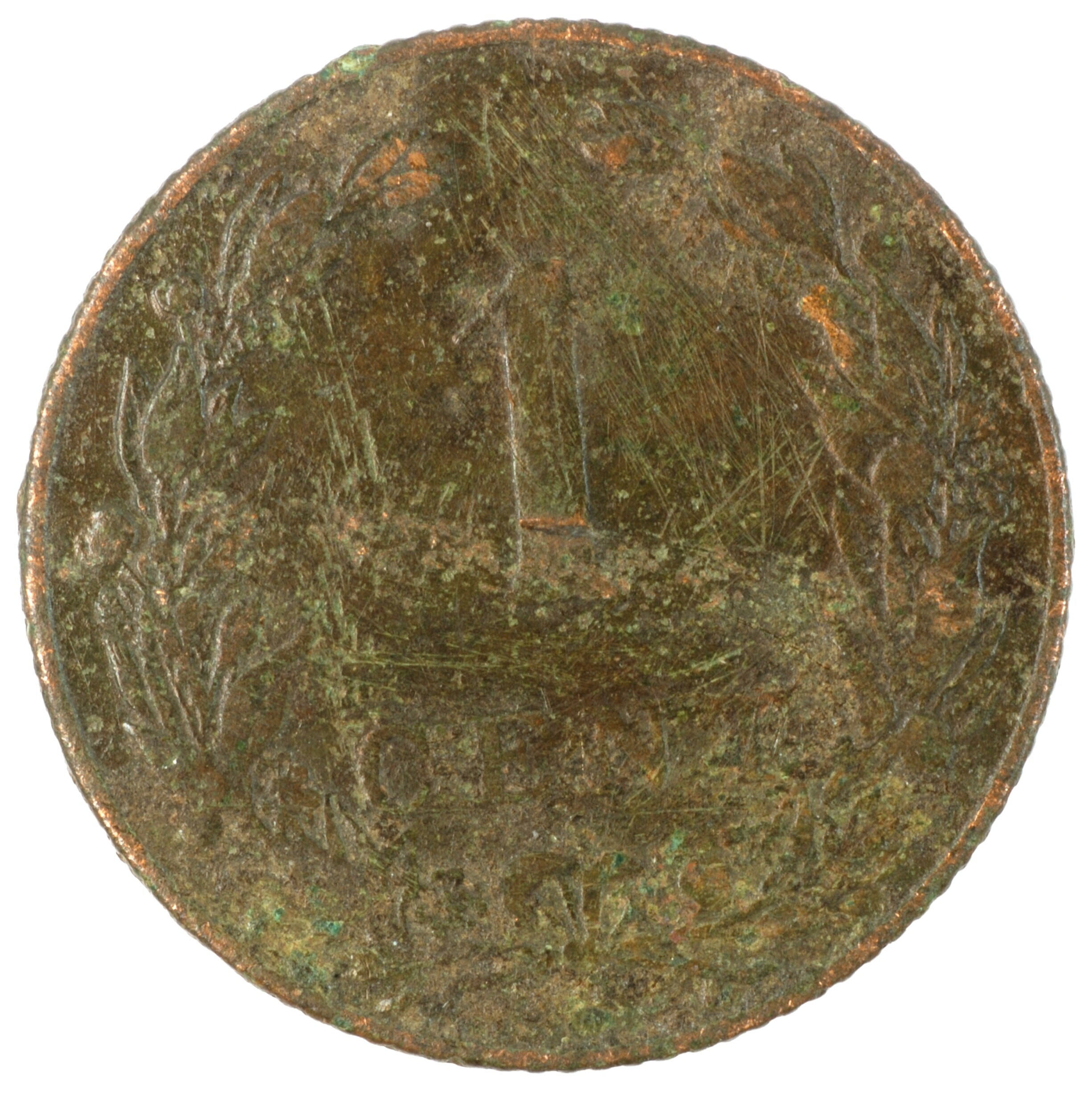 Cent; Nederland Koninkrijk (1813-heden); Wilhelmina (1890-1948); vz.: klimmende leeuw naar links met zwaard en pijlenbundel op een veld van azuur met vijftien blokken binnen parelcirkel, met omschrift (hellebaard) KONINGRIJK DER NEDERLANDEN (mercuriusstaf) 1902; kz.: binnen een krans van twee samengebonden oranjetakken in twee regels: 1 / CENT; muntplaats: Utrecht; gewicht: 2.42 gram; referentie: Schulman 971
