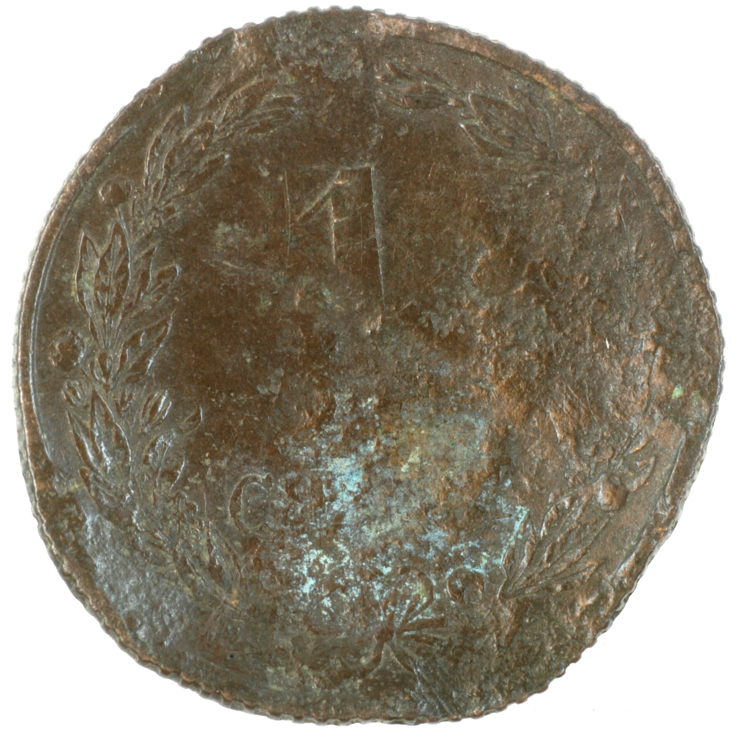 Cent; Nederland Koninkrijk (1813-heden); Wilhelmina (1890-1948); vz.: klimmende leeuw naar links met zwaard en pijlenbundel op een veld van azuur met vijftien blokken binnen parelcirkel, met omschrift (hellebaard) KONING[R]IJK DER NEDERL[A]NDEN (mercuriusstaf) 1905; kz.: binnen een krans van twee samengebonden oranjetakken in twee regels: 1 / CENT; muntplaats: Utrecht; 2.45 gram; referentie: Schulman 973