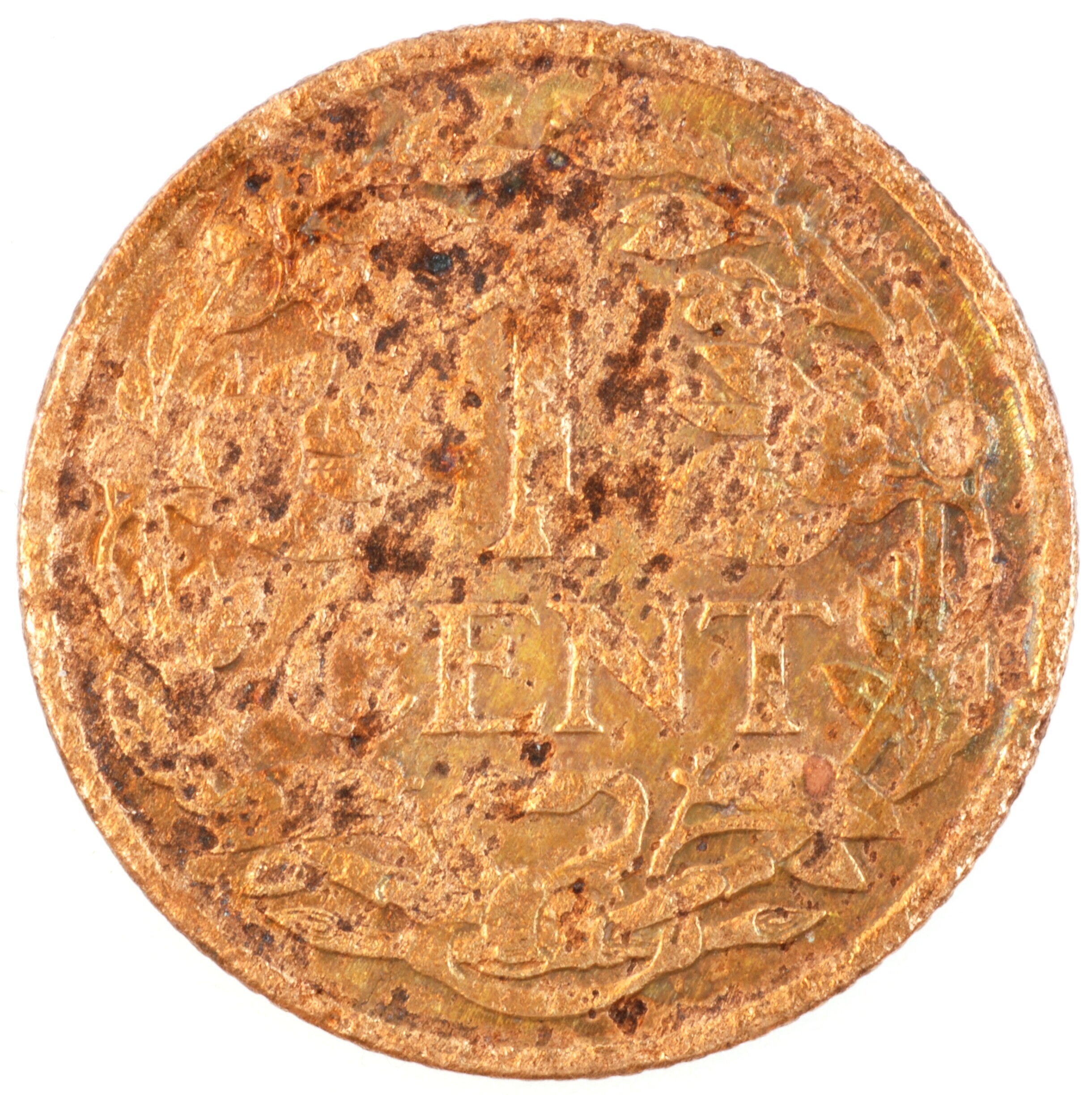 Cent; Nederland Koninkrijk (1813-heden); Wilhelmina (1890-1948); vz.: klimmende leeuw naar links met zwaard en pijlenbundel op een veld van azuur met zeventien blokken binnen parelcirkel, met omschrift (zeepaardje) KONINGRIJK DER NEDERLANDEN (mercuriusstaf) 1926; kz.: binnen een krans van twee samengebonden oranjetakken in twee regels: 1 / CENT; muntplaats: Utrecht; 2.31 gram; referentie: Schulman 988