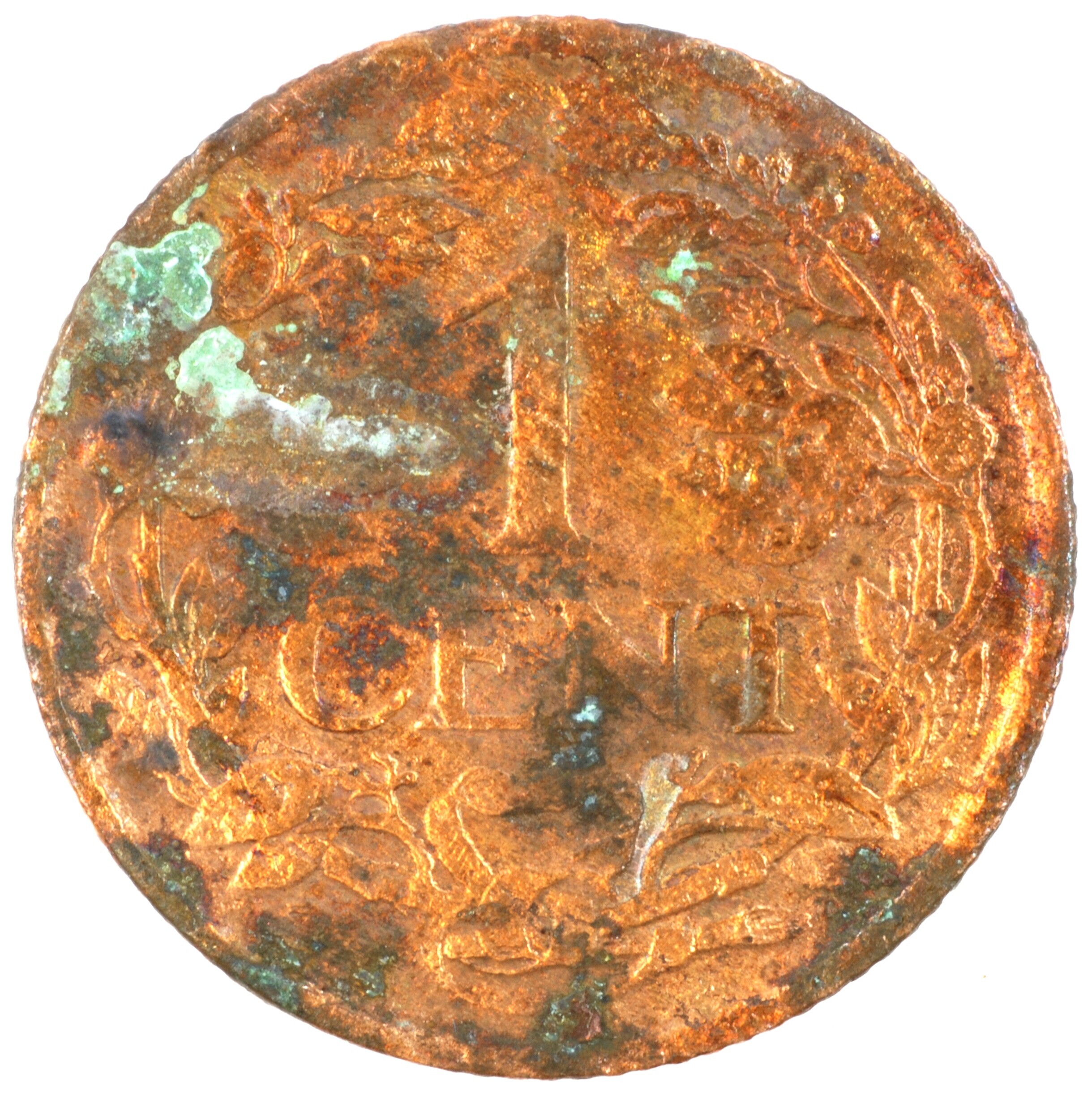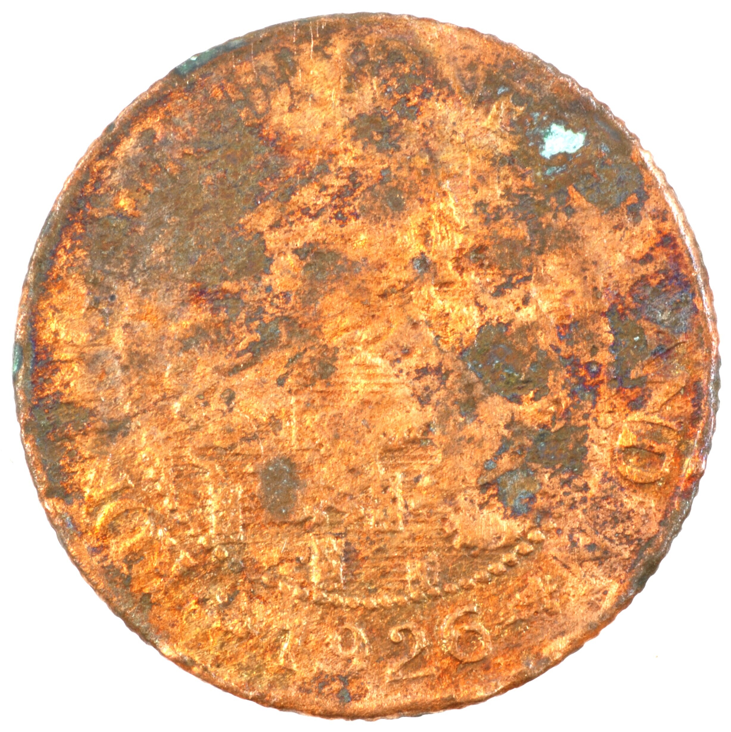 Cent; Nederland Koninkrijk (1813-heden); Wilhelmina (1890-1948); vz.: klimmende leeuw naar links met zwaard en pijlenbundel op een veld van azuur met zeventien blokken binnen parelcirkel, met omschrift (zeepaardje) KONING[R]IJK DER N[E]DERLANDEN (mercuriusstaf) 1926; kz.: binnen een krans van twee samengebonden oranjetakken in twee regels: 1 / CENT; muntplaats: Utrecht; 2.16 gram; referentie: Schulman 988