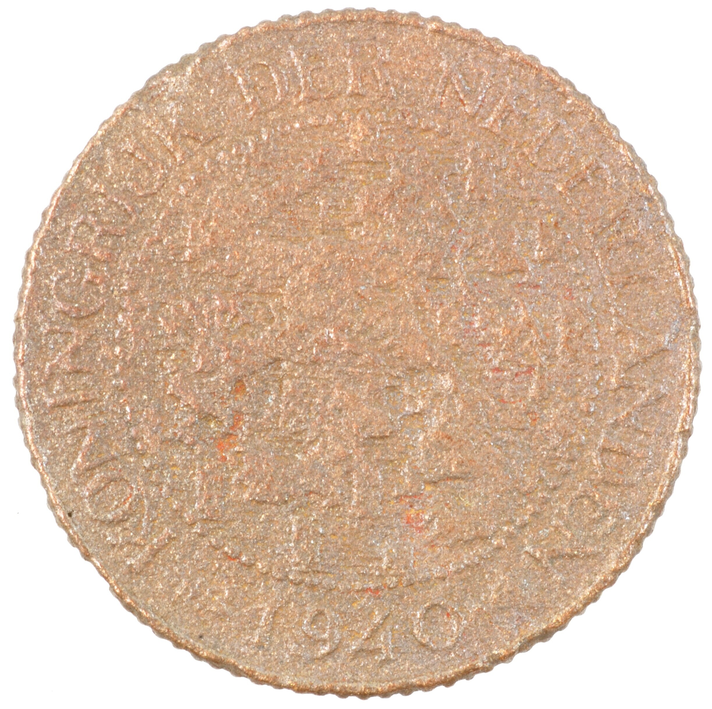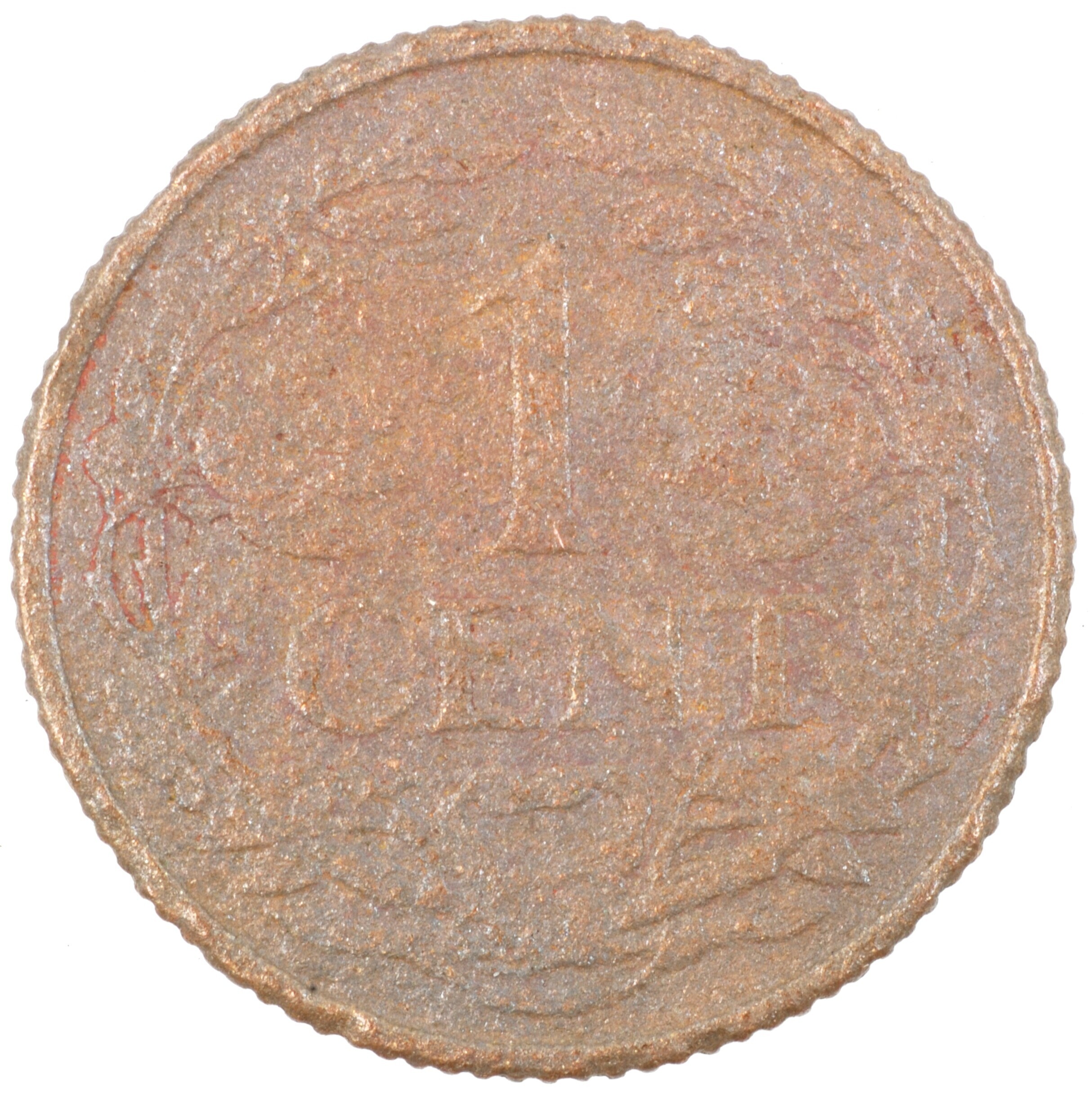 Cent; Nederland Koninkrijk (1813-heden); Wilhelmina (1890-1948); vz.: klimmende leeuw naar links met zwaard en pijlenbundel op een veld van azuur met zeventien blokken binnen parelcirkel, met omschrift (druiventros) KONINGRIJK DER NEDERLANDEN (mercuriusstaf) 1940; kz.: binnen een krans van twee samengebonden oranjetakken in twee regels: 1 / CENT; muntplaats: Utrecht; 2.26 gram; referentie: Schulman 997