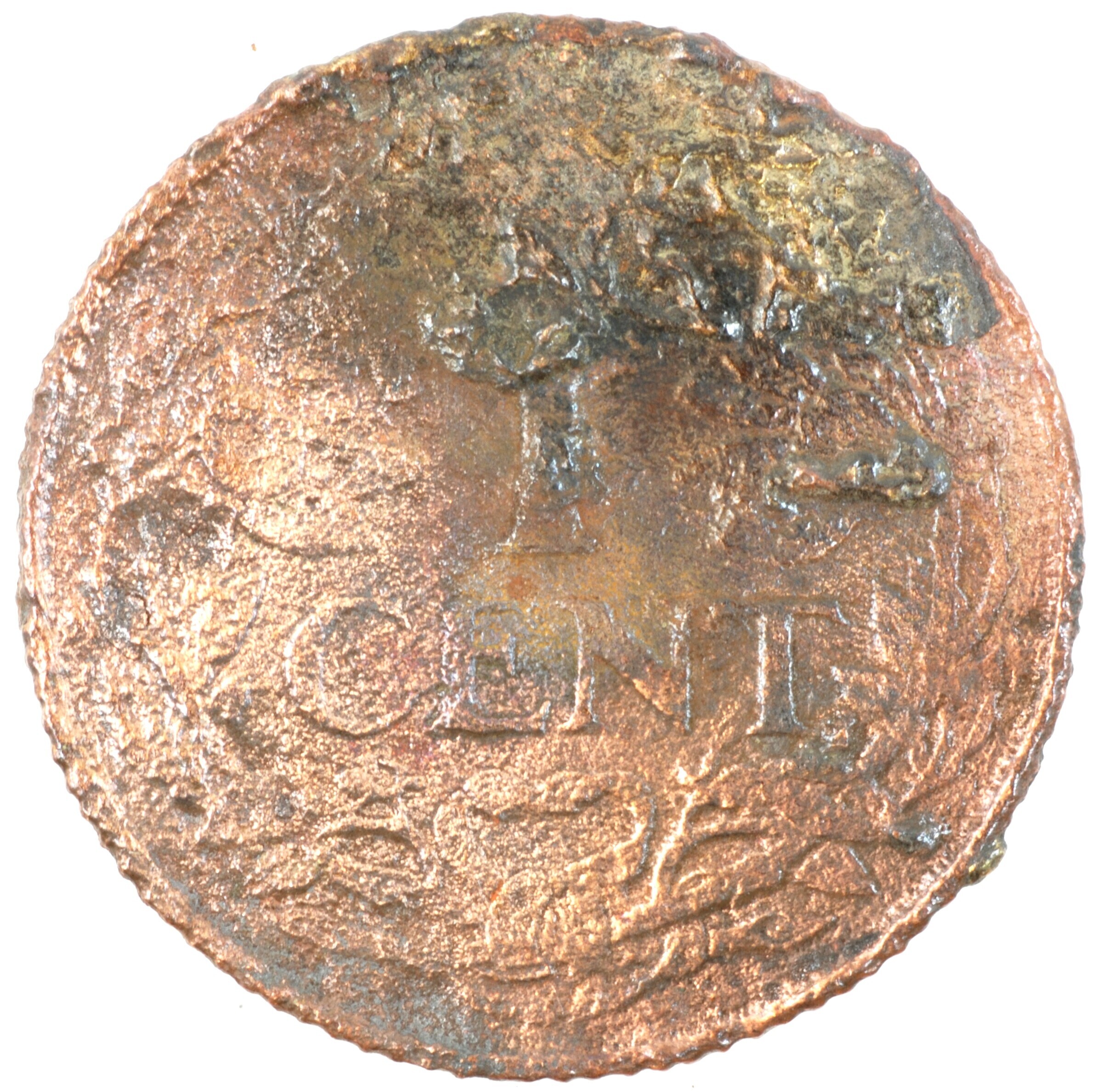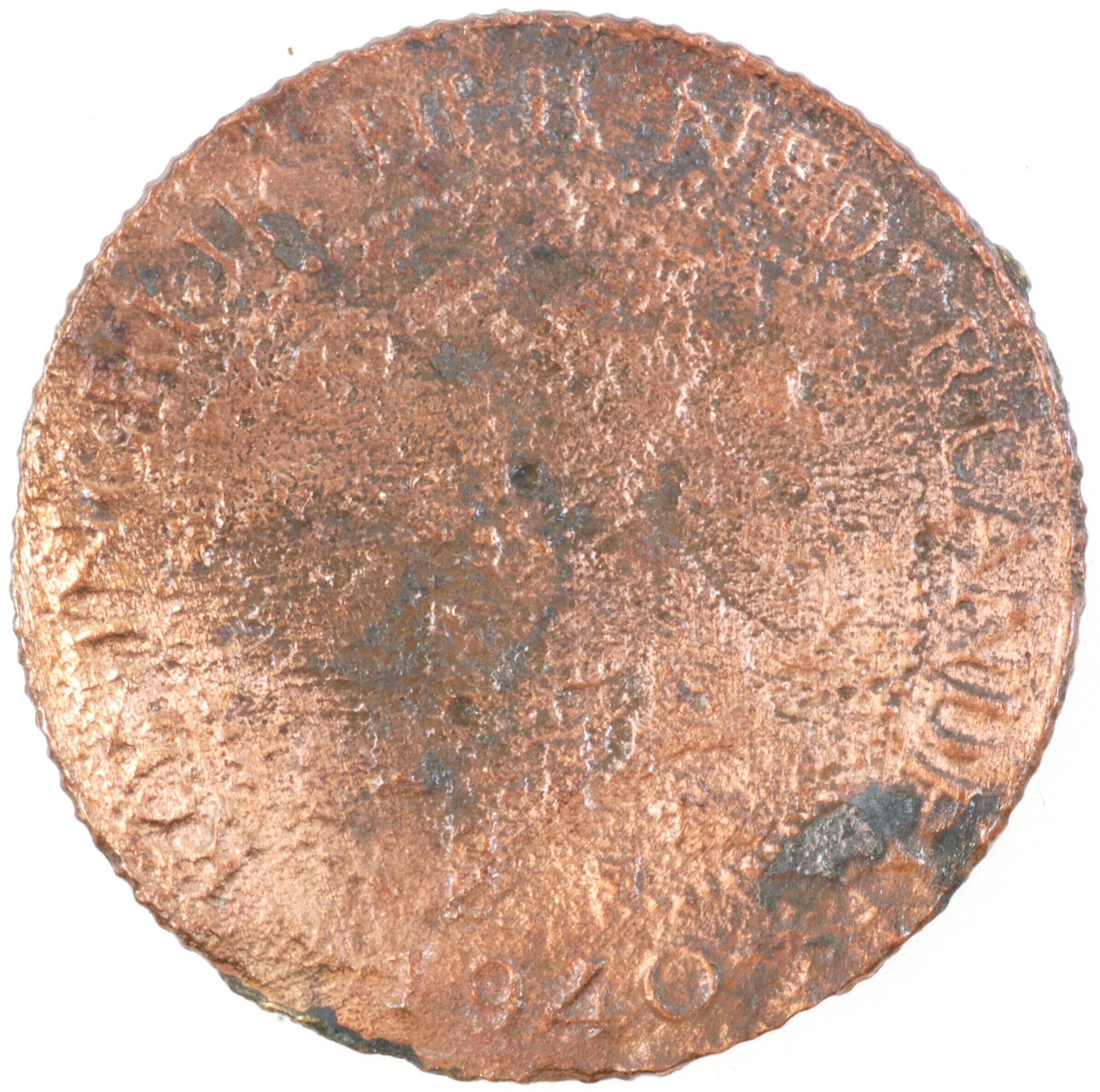 Cent; Nederland Koninkrijk (1813-heden); Wilhelmina (1890-1948); vz.: klimmende leeuw naar links met zwaard en pijlenbundel op een veld van azuur met zeventien blokken binnen parelcirkel, met omschrift (druiventros) KONINGRIJK DER NEDERLANDEN (mercuriusstaf) 1940; kz.: binnen een krans van twee samengebonden oranjetakken in twee regels: 1 / CENT; muntplaats: Utrecht; 2.01 gram; referentie: Schulman 997