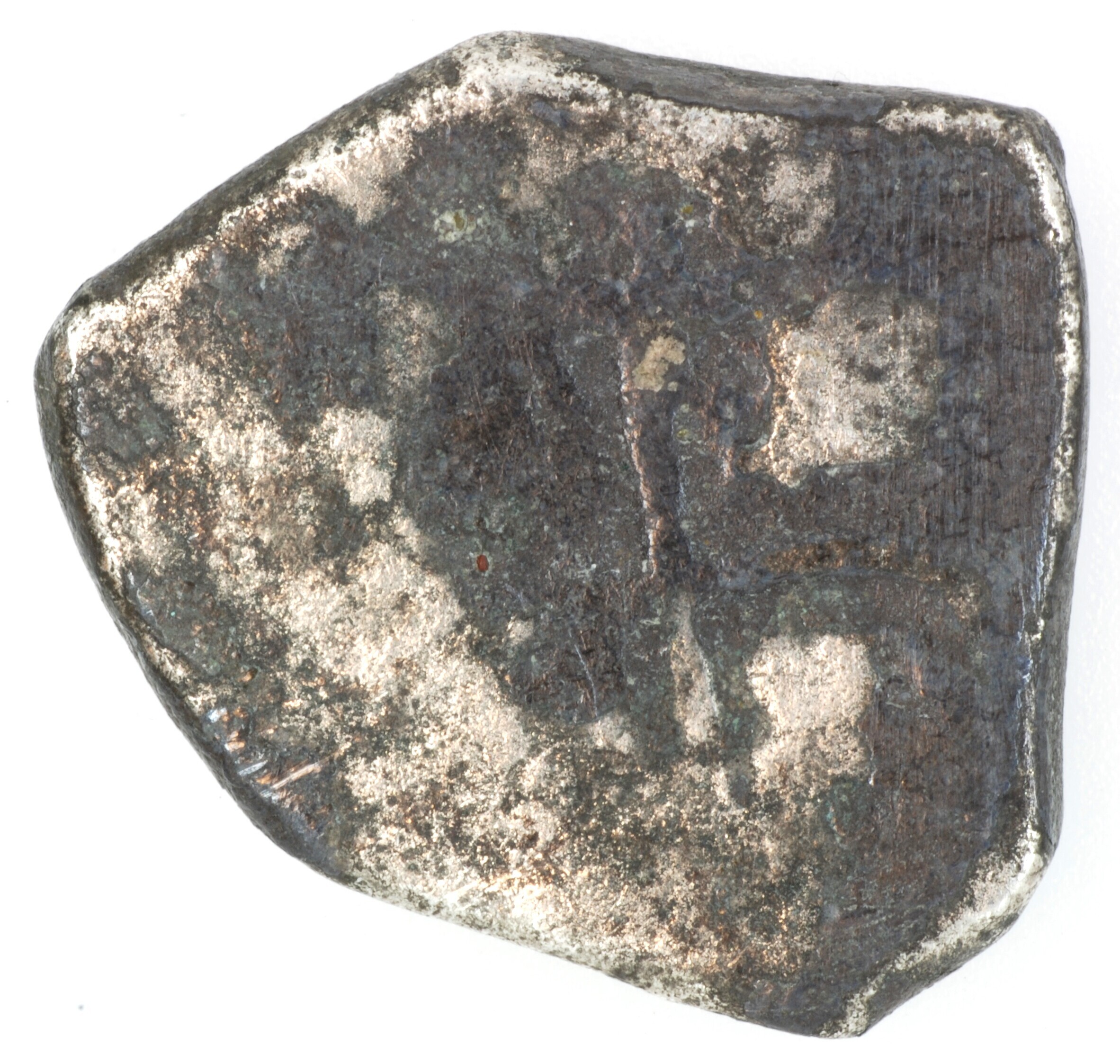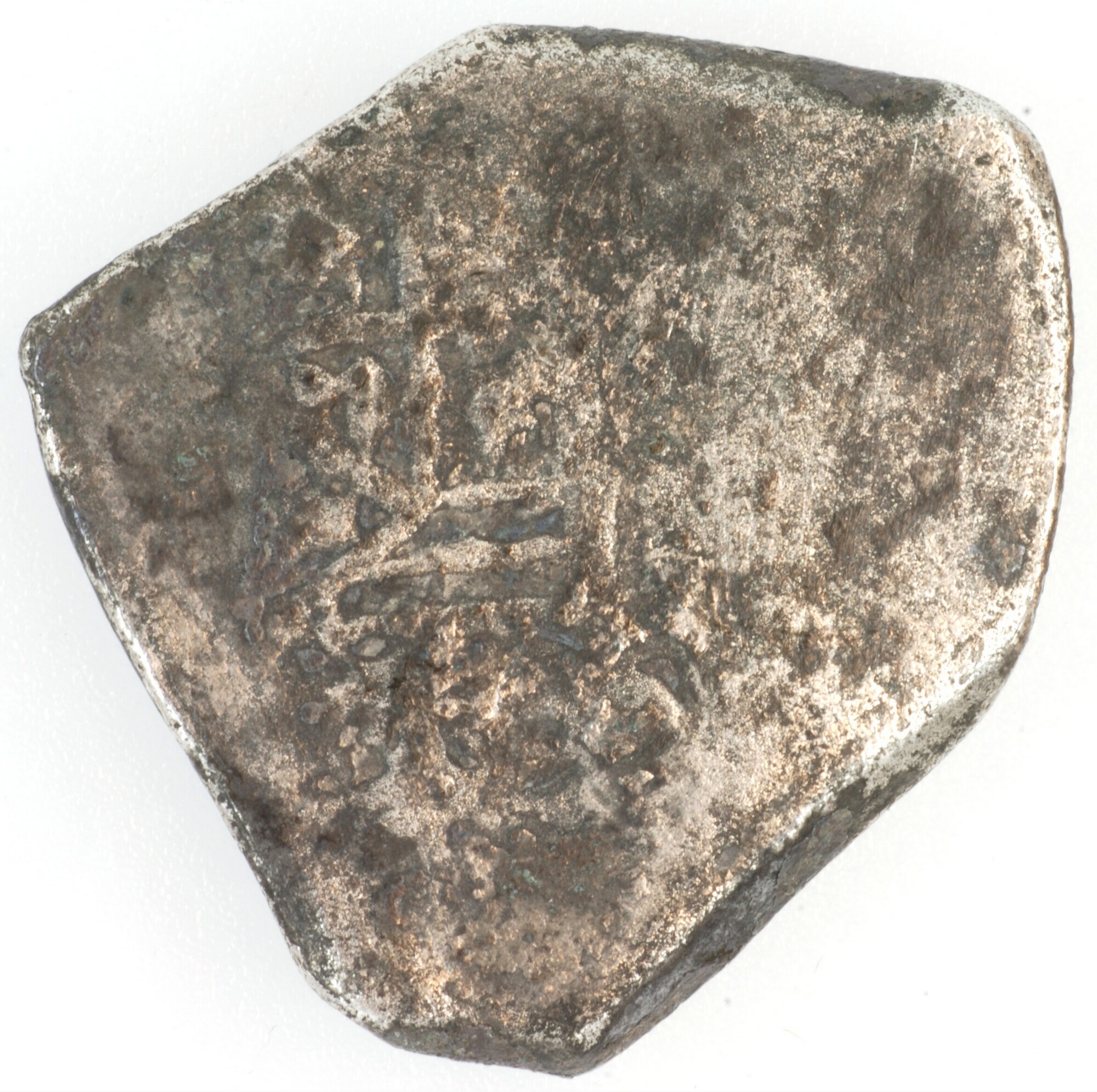 Vier reaal; Spanje; Philips II (1555-1598); vz.: wapenschild binnen een parelcirkel met omschrift […]; kz.: kort kruis met dwarsbalken bij de uiteindes, met afbeeldingen in de kwadranten binnen achtpas en parelcirkel, met omschrift: [...]; muntplaats: meerdere mogelijkheden; gewicht: 6.01 gram; referentie: meerder mogelijkheden