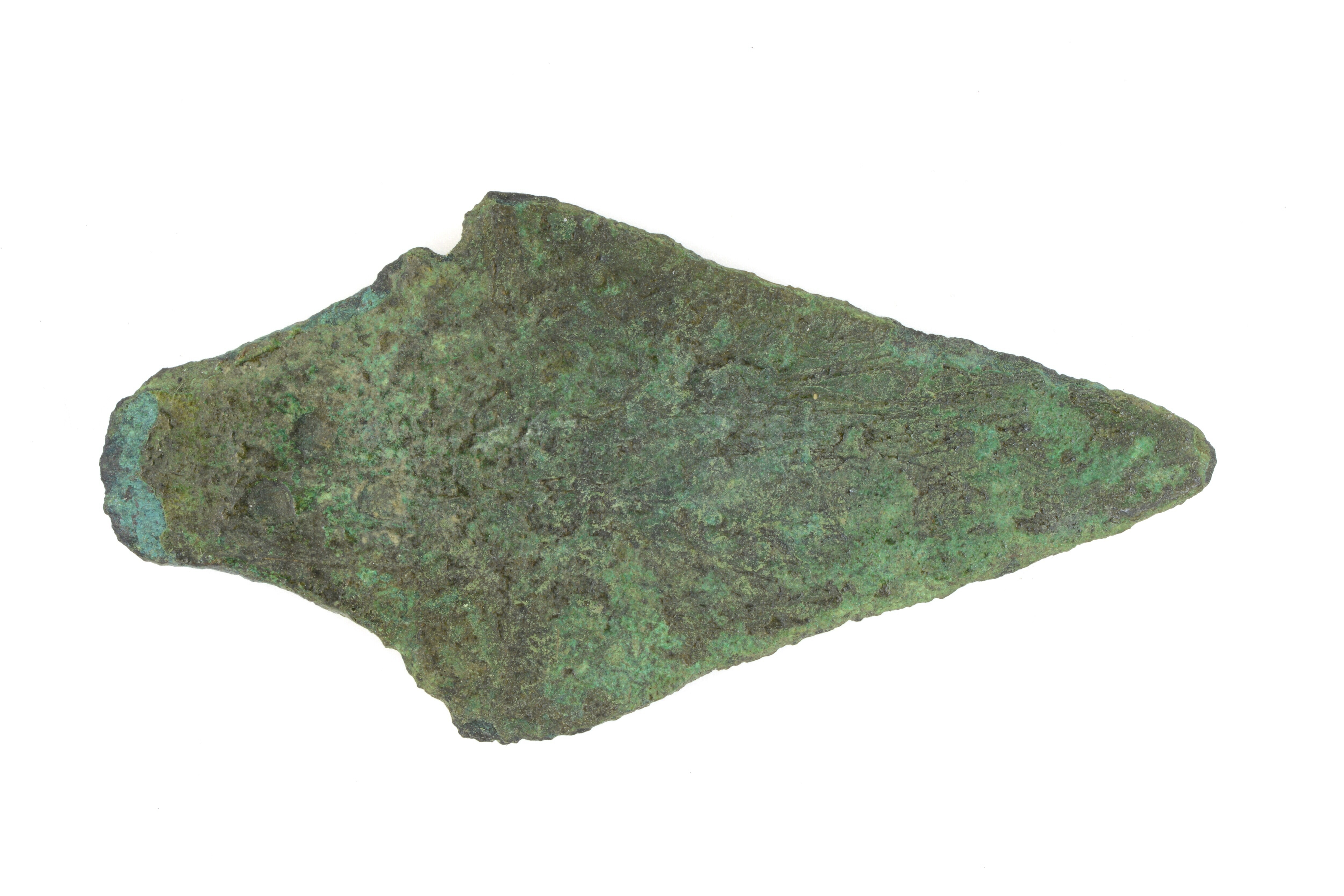 Tongdolk; op de schouders aan elke zijde één ronde uitsparing in de rand voor bevestigen; puntig uiteinde