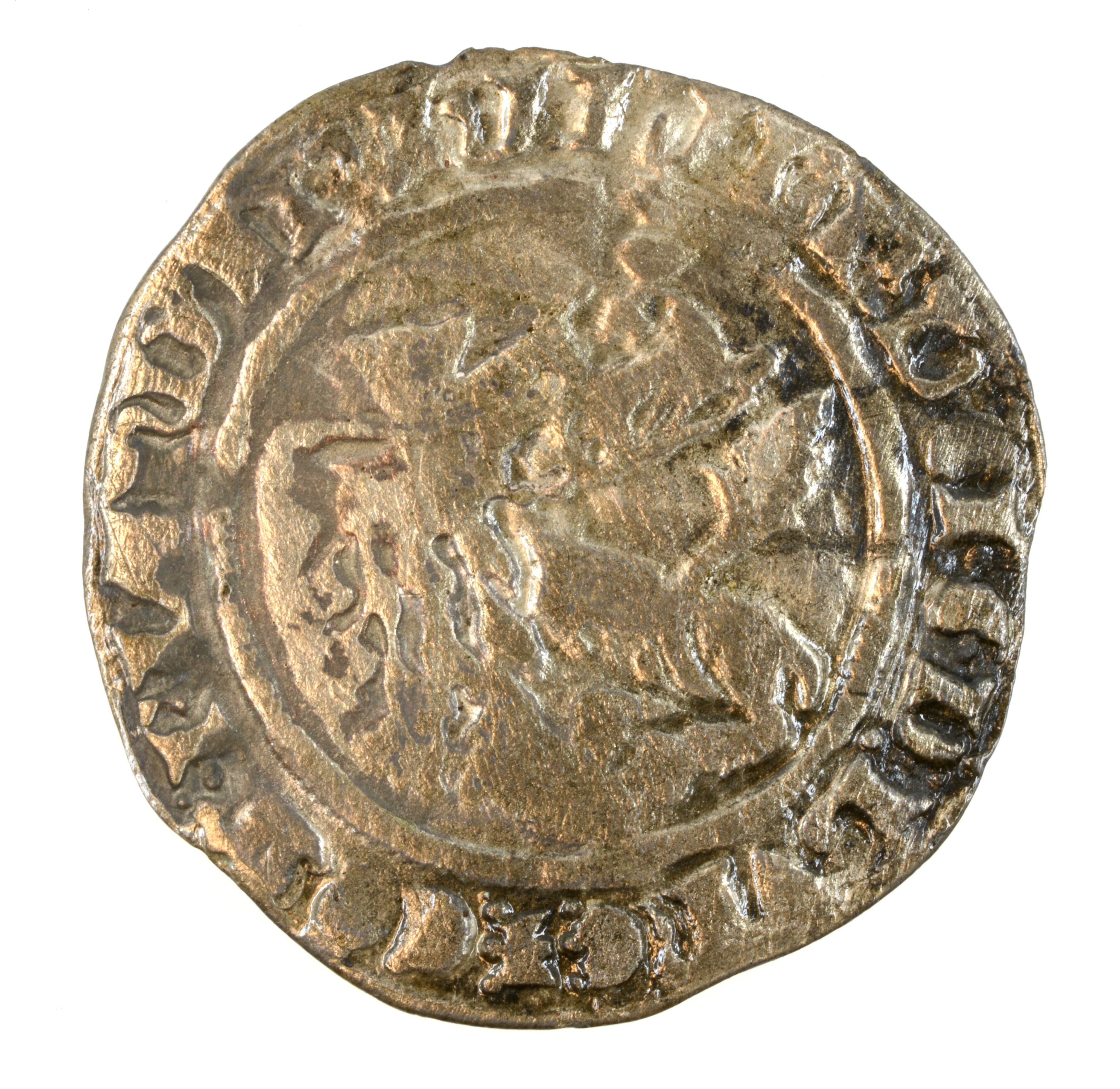 Dubbele groot Philips de Stoute; vz.: leeuw met een halsband met een Bourgondische vlag en randtekst PHILIPP.DEI.G.DX.BVRG.Z.COM.FLAND (Philips bij de gratie Gods Hertog van Bourgondie en Graaf van Vlaanderen); kz.: een kruis met daarachter het wapen van Bourgondie en met de randtekst SIT.NOME.DOMINI.BENEDICTVM (munt van Vlaanderen de naam des Heren zij geloofd); gewicht: 1.98 gram
