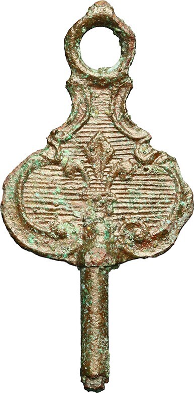 Horlogesleutel; fleur-de-lismotief aan beide zijden; gewicht: 1.72 gram