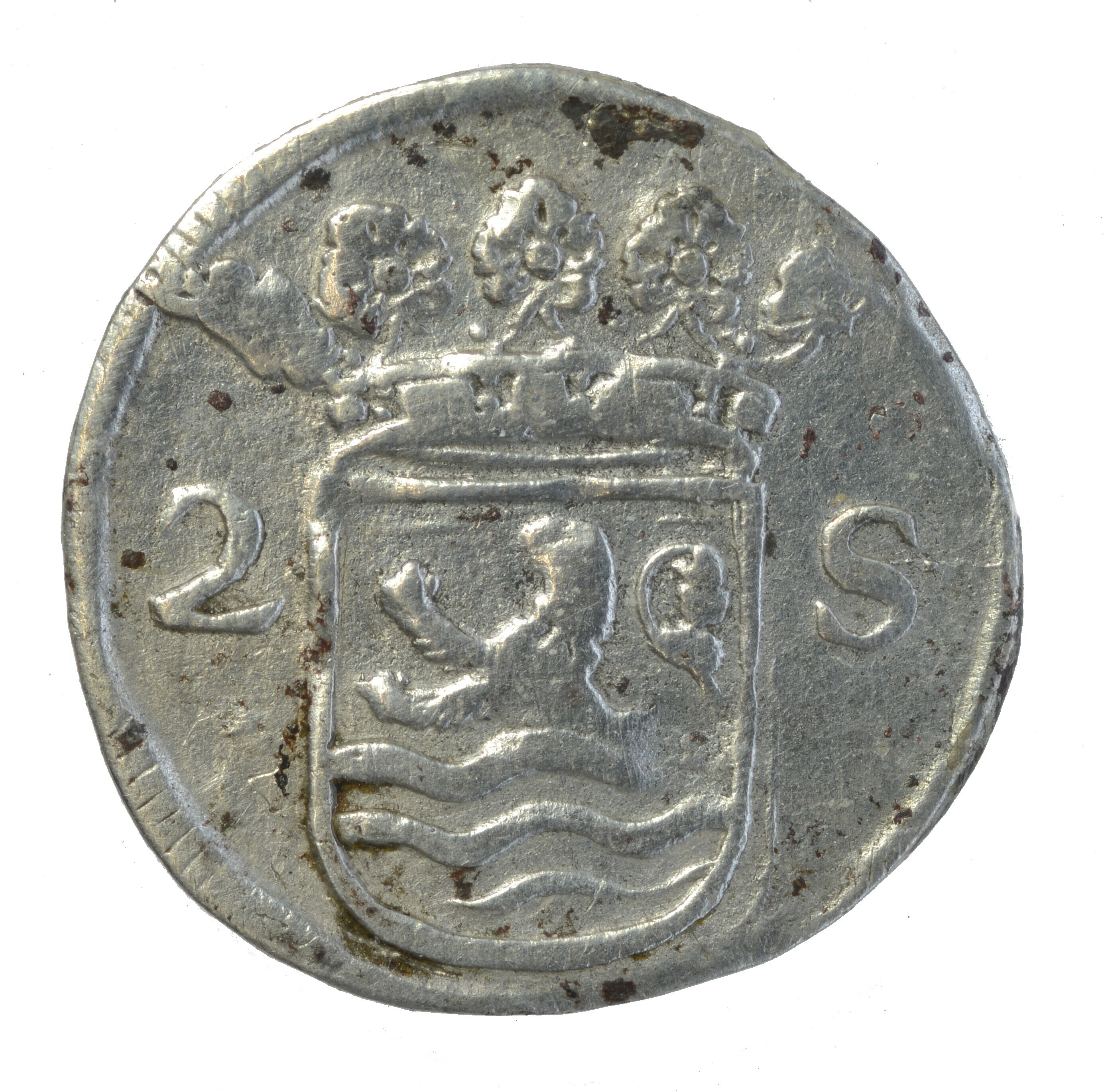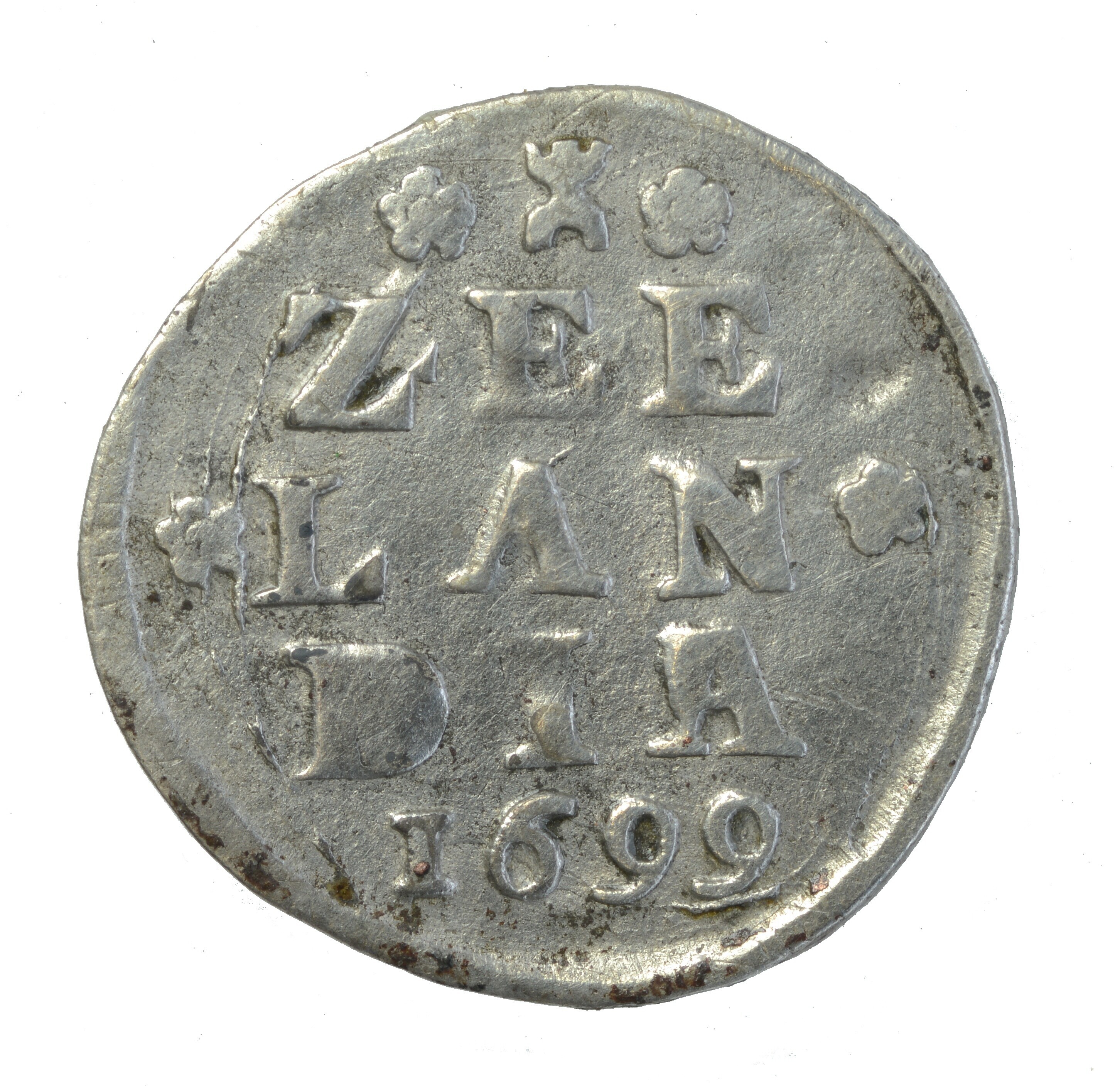 Dubbele stuiver; Zeeland Provincie (1581-1795); vz.: ZEE LAN DIA in drie regels met hieronder het jaartal 1699; kz.: gekroond wapen met 2 en S; gewicht: 1.49 gram