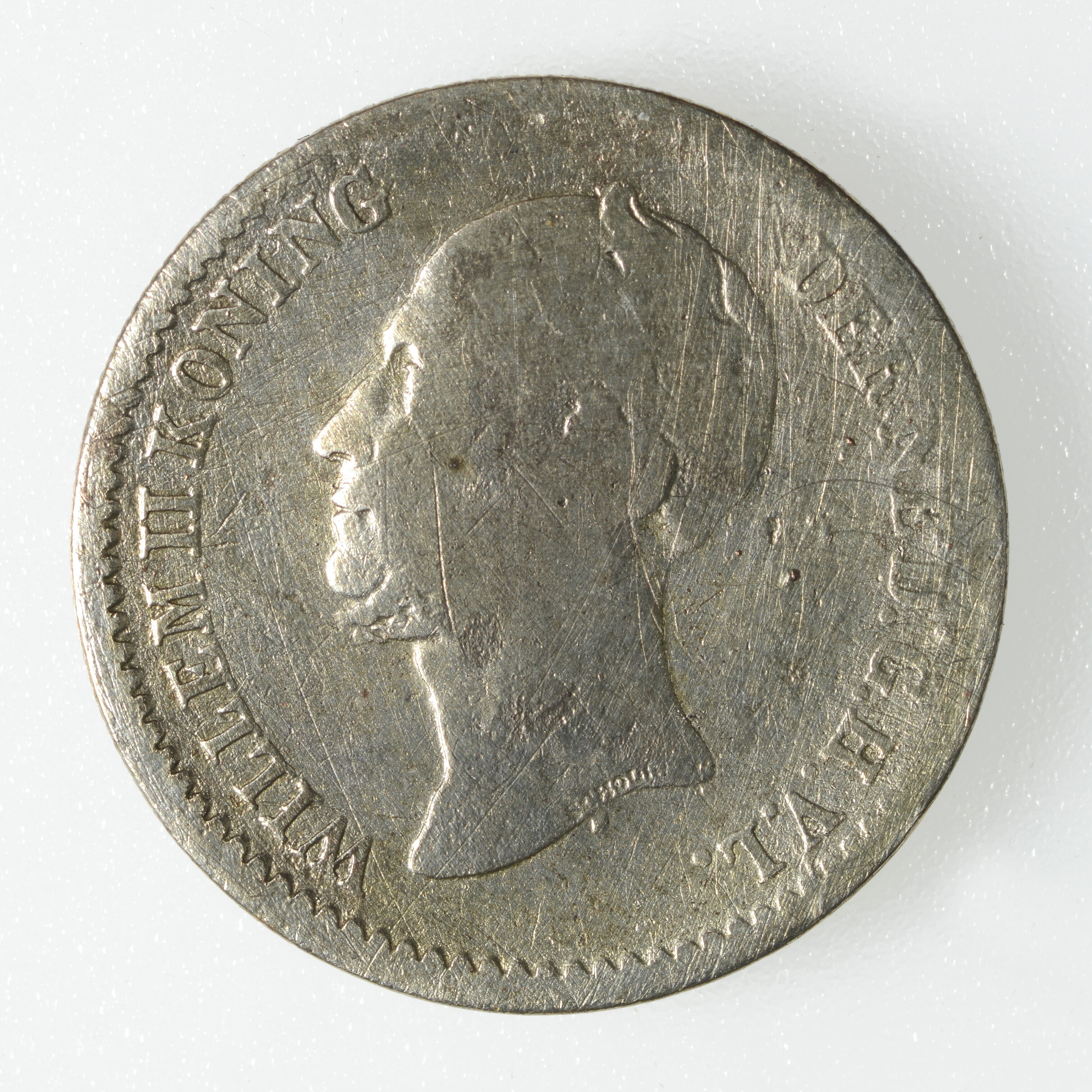 Dubbeltje; Nederland Koninkrijk (1813-heden); Willem II (1840-1849); vz.: portret van Koning Willem II naar links met randtekst WILLEM II KONING DER NEDERLANDEN; kz.: 10 CENTS 1849 binnen twee samengebonden eikentakken; gewicht: 1.31 gram