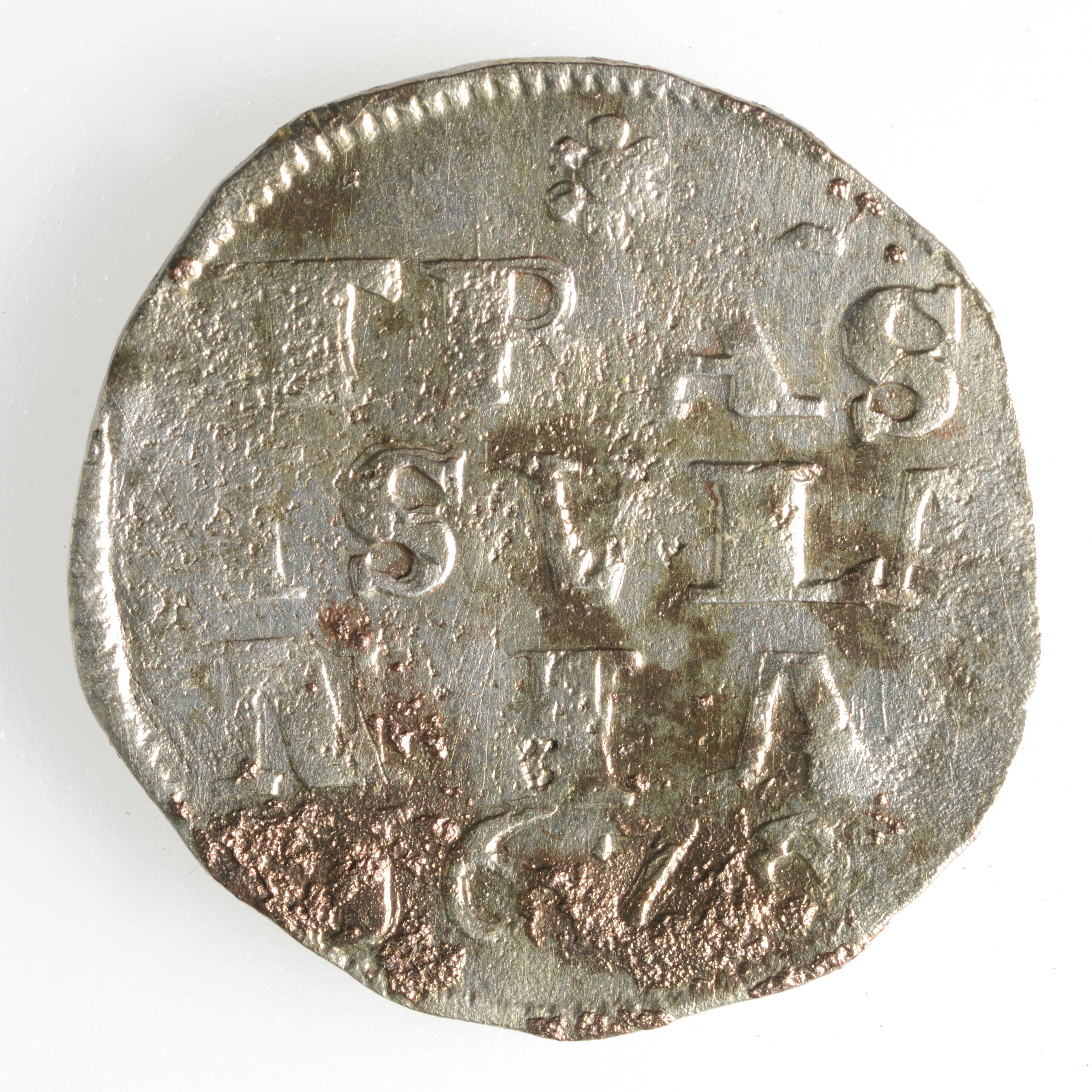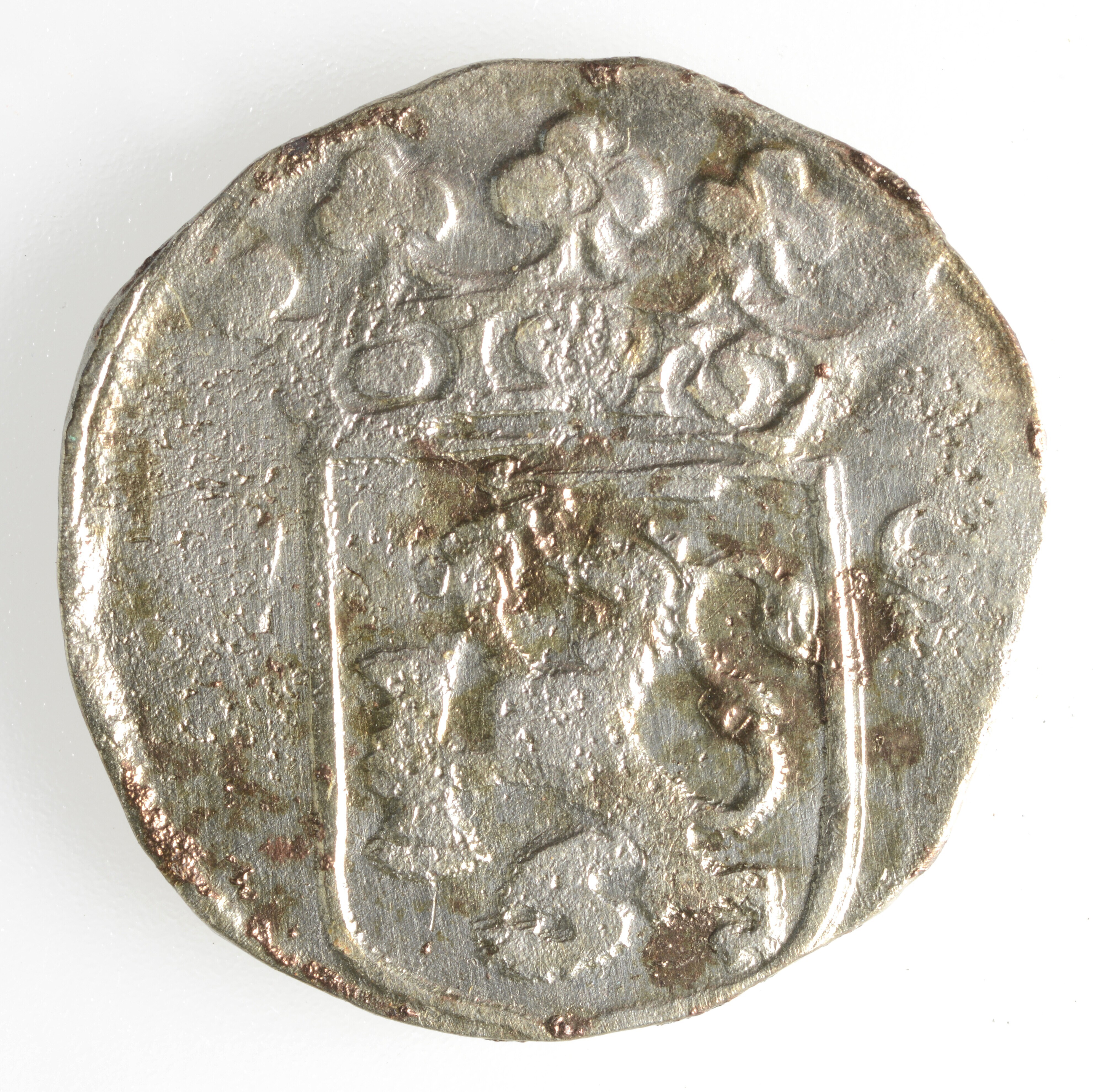 Dubbele wapenstuiver; Overijssel Provincie (1581-1795); vz.: muntteken rozet met hieronder de tekst TRAS ISVLA NIA in drie regels en het jaartal 1678; kz.: gekroond provinciewapen met waardeaanduiding 2 S ; gewicht: 1.45 gram