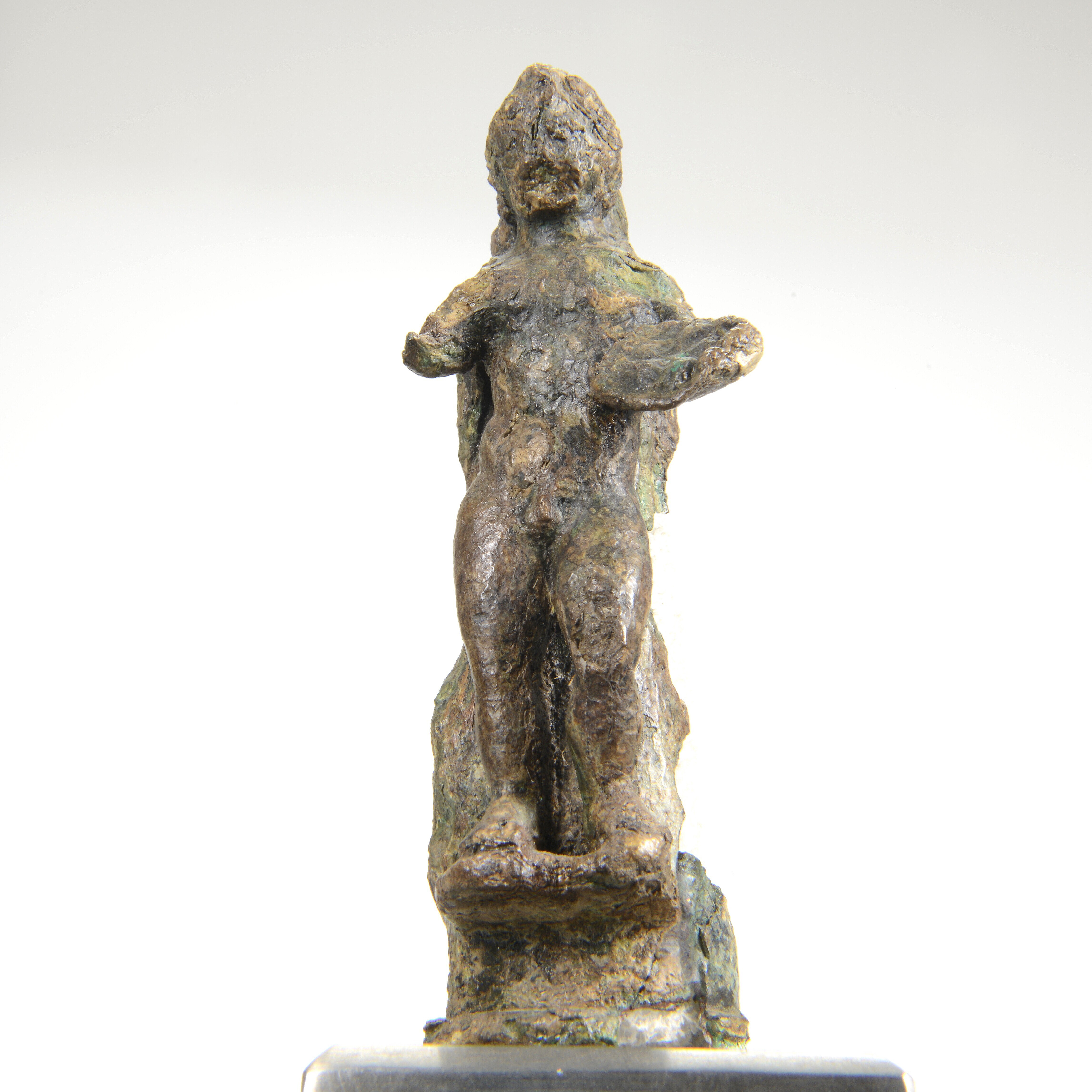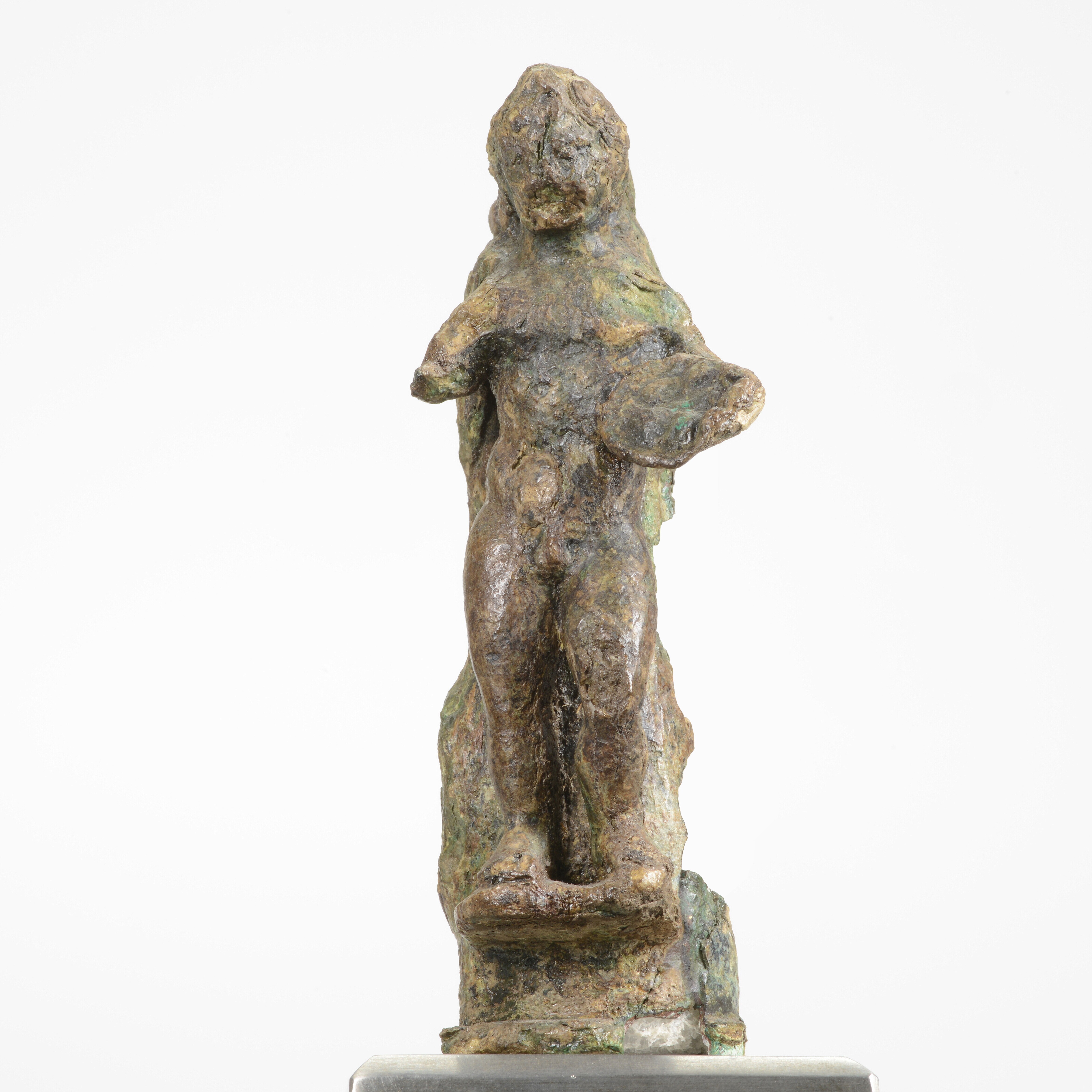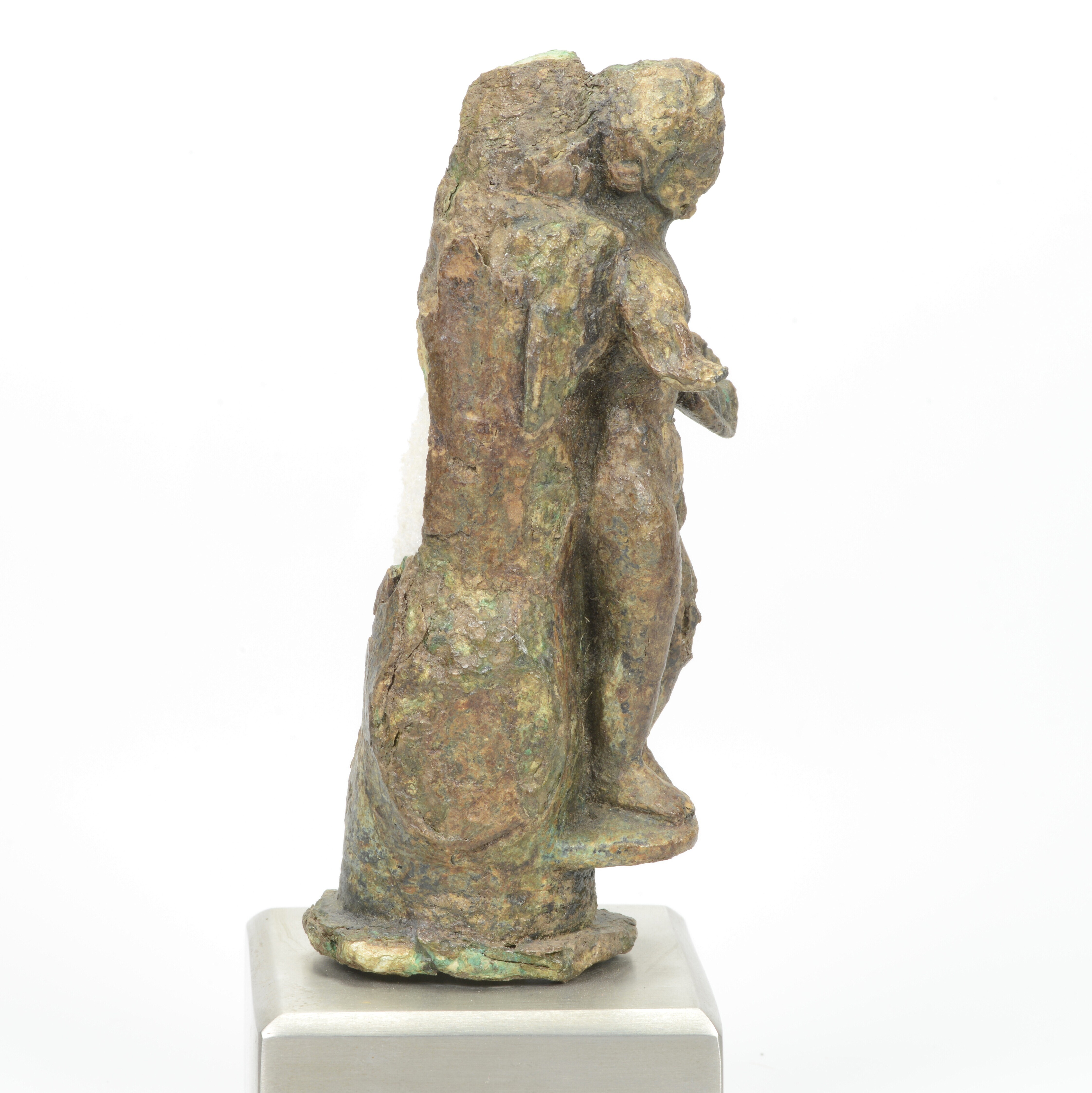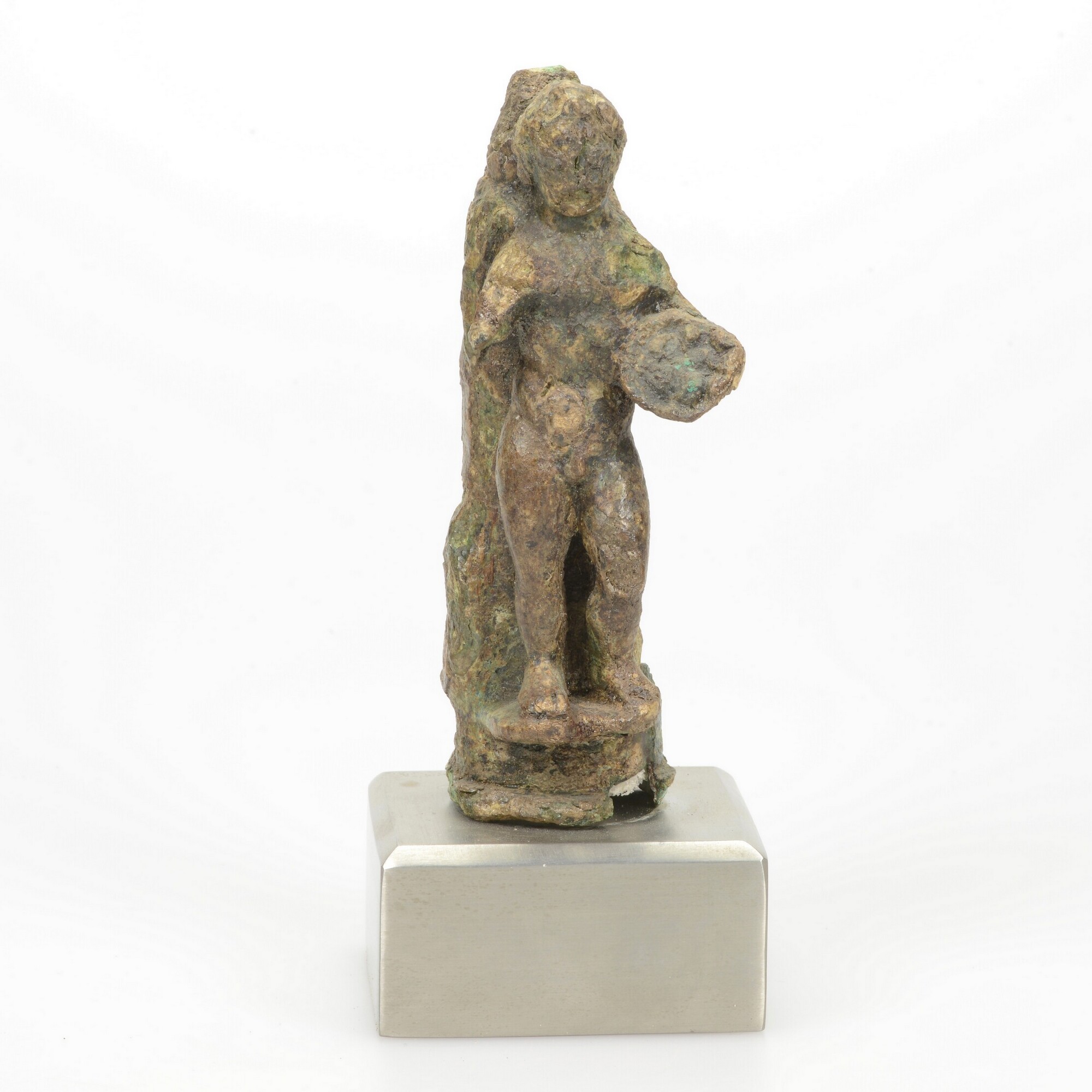 Putto of Amor met schaal in linkerhand; rechterarm deels afgebroken; oorspronkelijk onderdeel van een meubel of onderzijde van een drinkschaal
