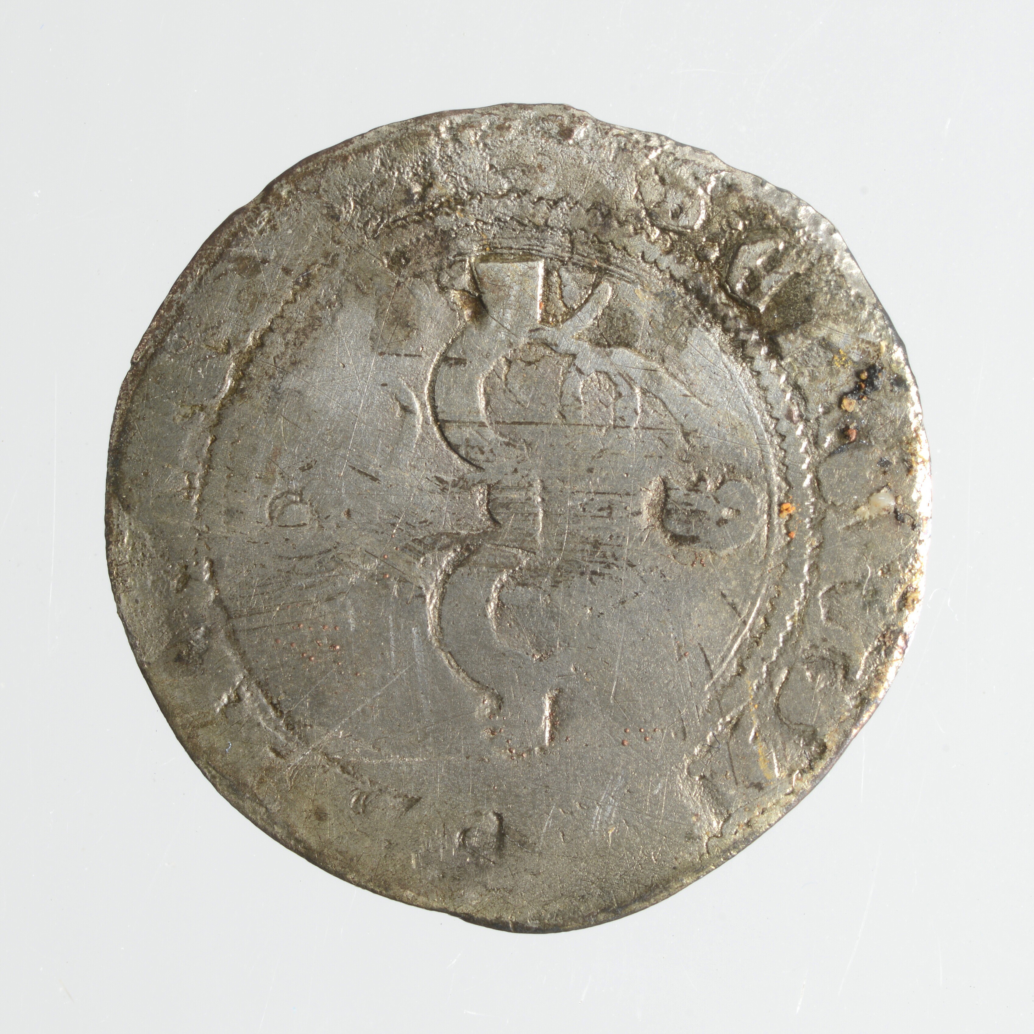 Halve reaal; Spanje; Ferdinand en Isabella (1474-1504); vz.: versierd juk en omschrift G; FERNANDVS ET Helisabet D G REX; kz: versierde pijlenbundel en omschrift ET REGINA:CAST : LIGIO : ARAGO : SICI . G; muntplaats: Granada; gewicht: 1.24 gram