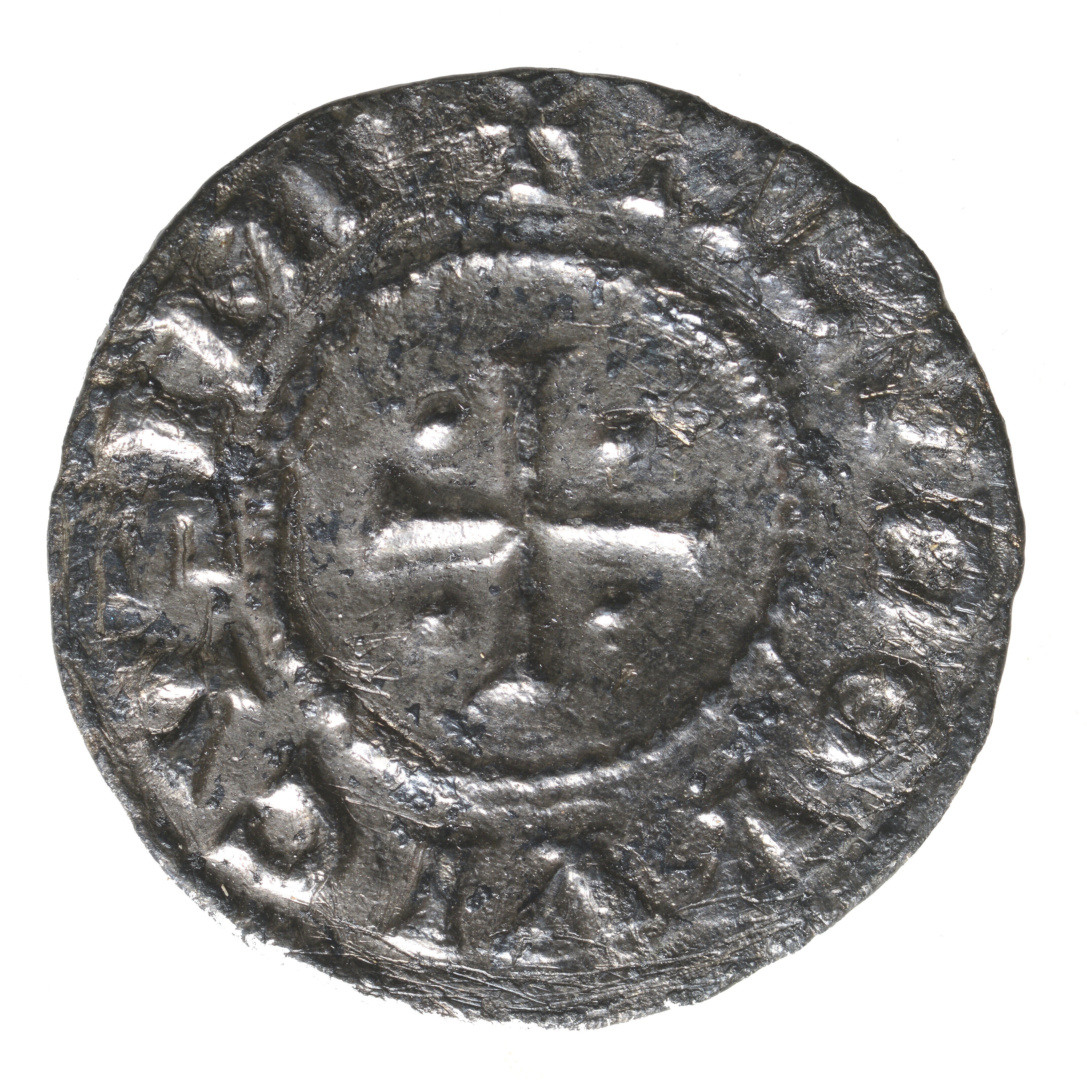 Denarius; Karolingische Rijk (800-887); Lodewijk de Vrome (814-840); vz.: kort gevoet kruis, met omschrift: +HLVDOVVICVS IMP; kz.: tempel binnen parelcirkel, met omschrift: XRISTIANA RELIGIO; muntplaats: Sens, Frankrijk; gewicht: 1.68 gram