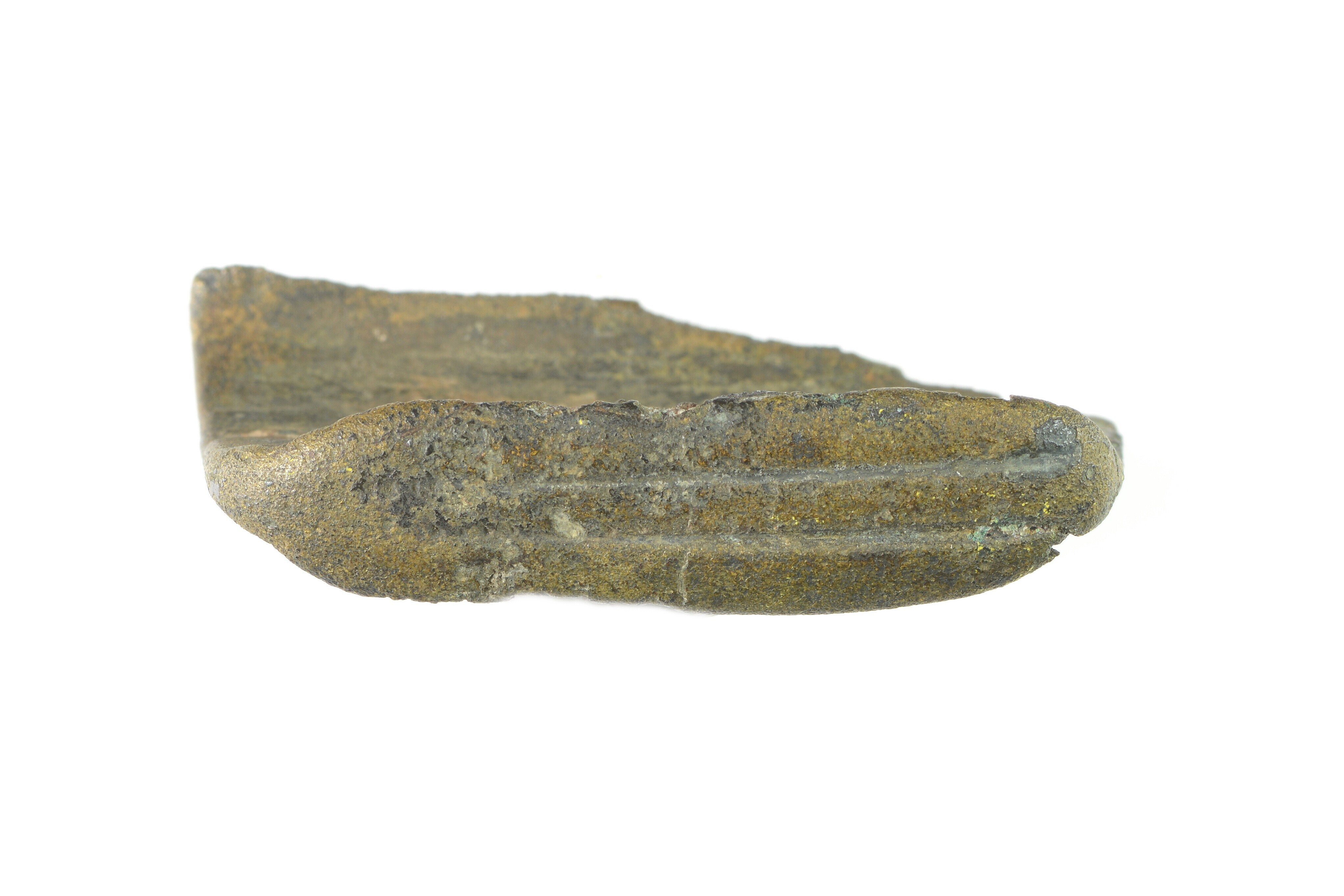 Strigilis (mogelijk beslag?); randfragment met lijnversiering