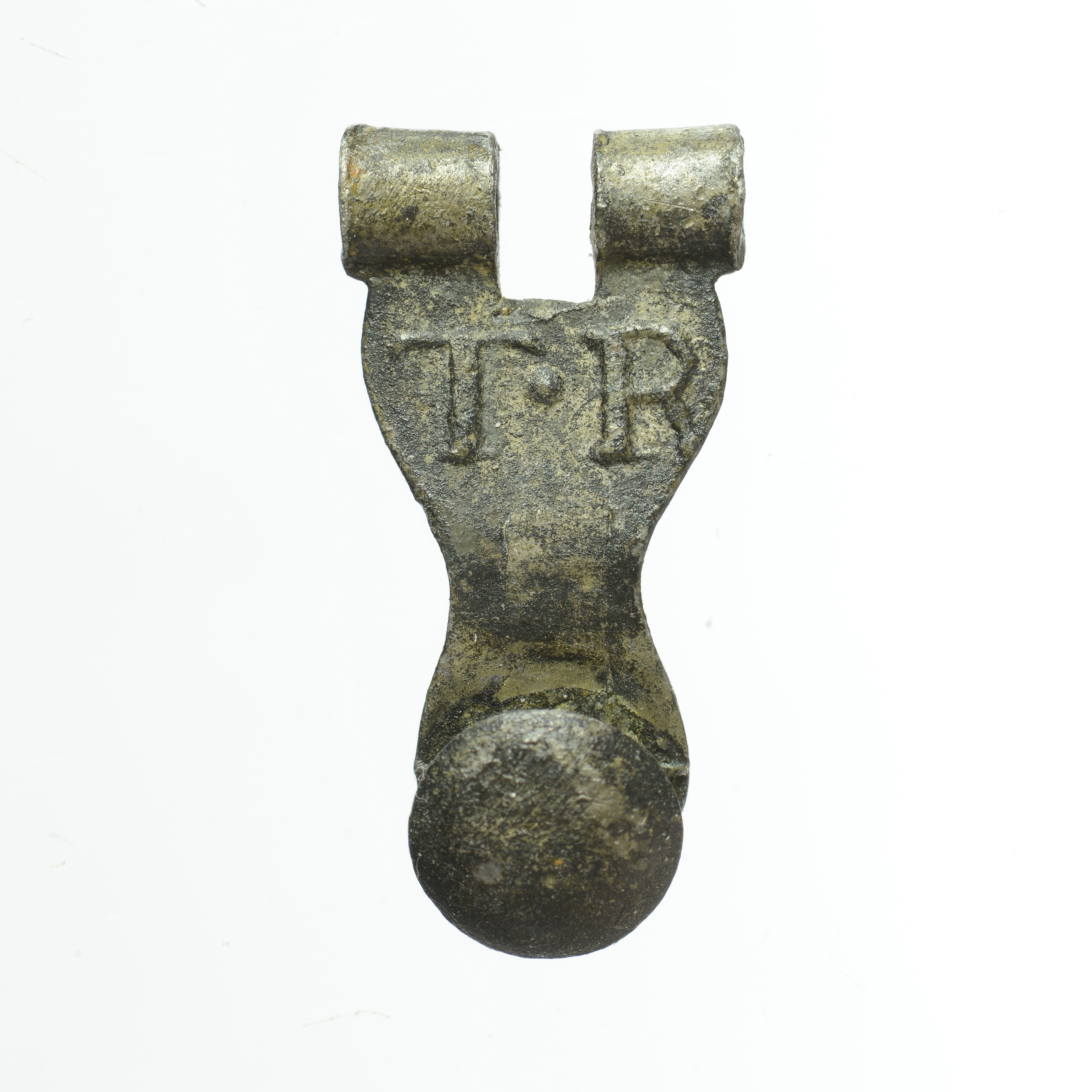 Gesp; beslagplaat met knop; stempel: T.R.
