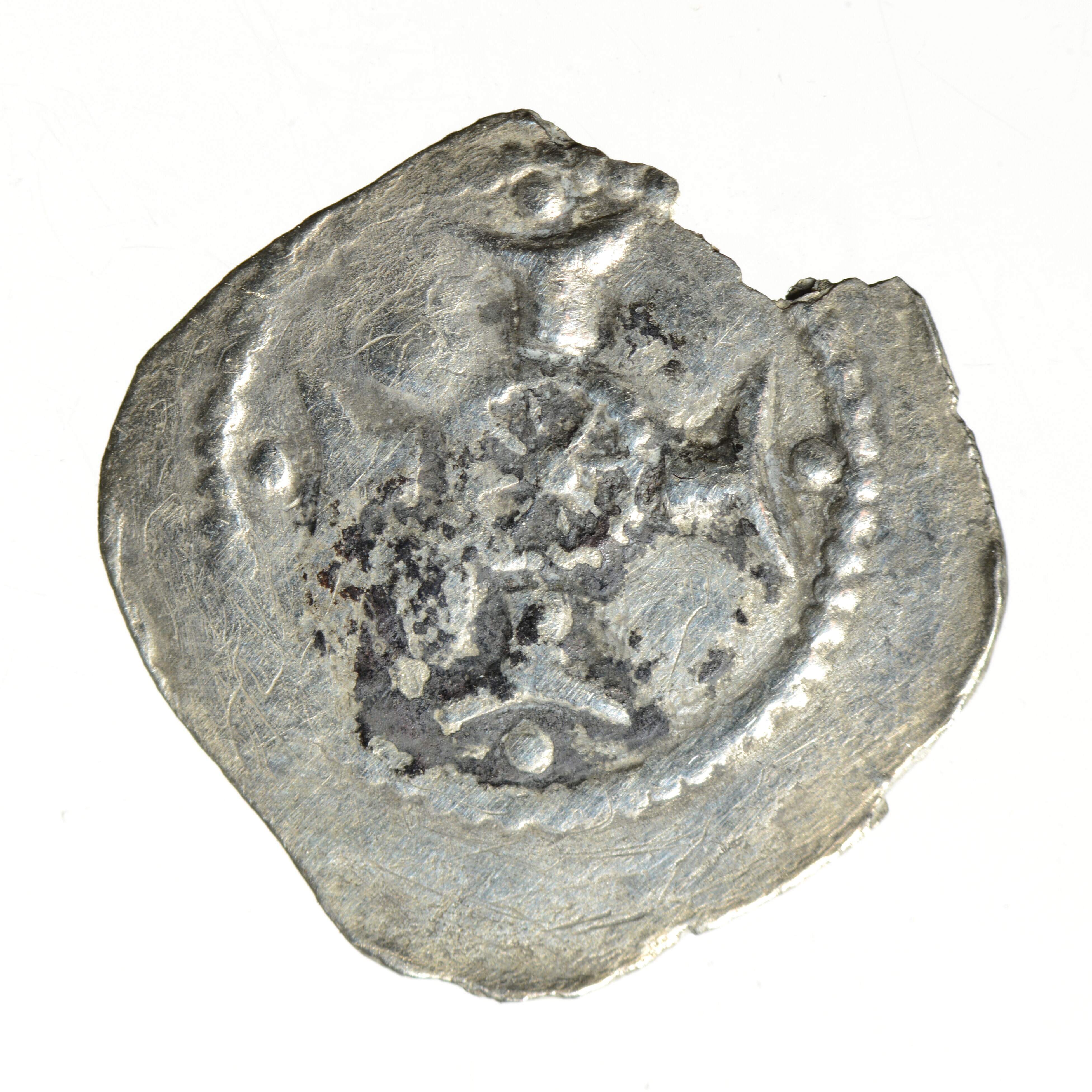 Penning; Utrecht Bisdom (1010-1528); bisschop anoniem; vz.: borstbeeld (naar rechts) van een bisschop met een “Turkse muts” en een kromstaf, binnen een parelcirkel, geen omschrift; kz.: gevoet kruis met bolletjes op de voeten en centraal een ster in een parelcirkeltje, binnen een parelcirkel, geen omschrift; muntplaats: Deventer; gewicht: 0,35 gram
