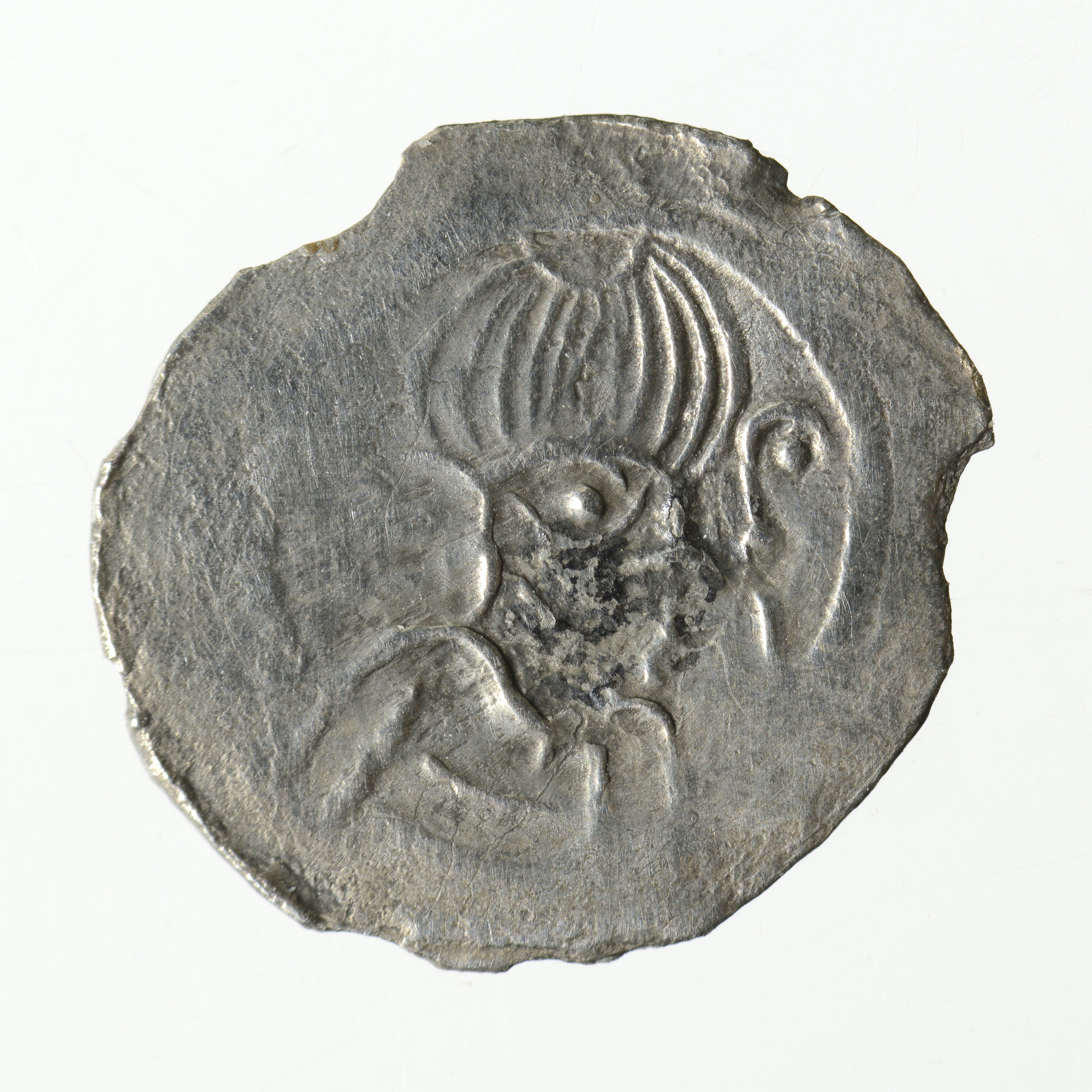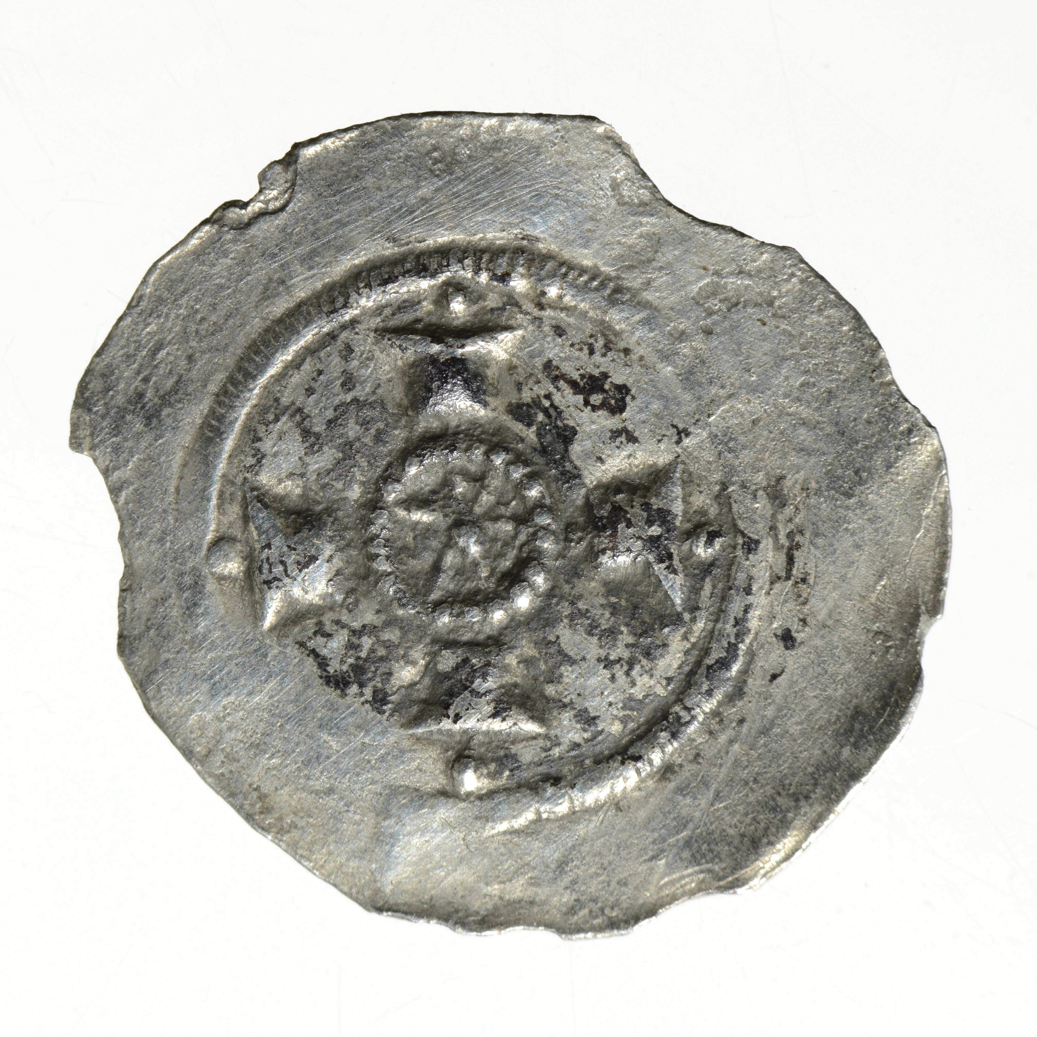 Penning; Utrecht Bisdom (1010-1528); bisschop anoniem; vz.: borstbeeld (naar rechts) van een bisschop met een “Turkse muts” en een kromstaf, binnen een parelcirkel, geen omschrift; kz.: gevoet kruis met bolletjes op de voeten en centraal een ster in een parelcirkeltje, binnen een parelcirkel, geen omschrift; muntplaats: Deventer; gewicht: 0,35 gram
