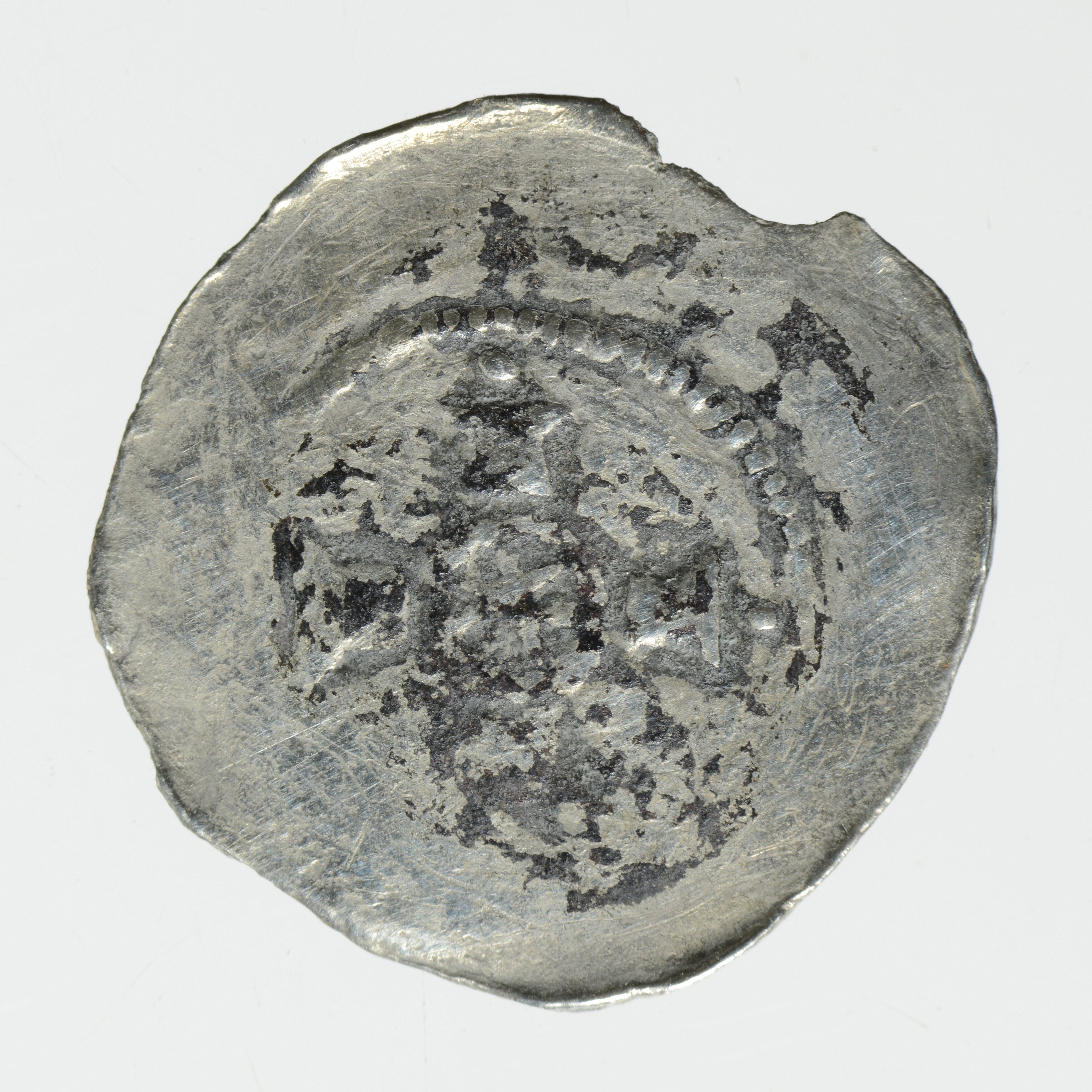 Penning; Utrecht Bisdom (1010-1528); bisschop anoniem; vz.: borstbeeld (naar rechts) van een bisschop met een “Turkse muts” en een kromstaf, binnen een parelcirkel, geen omschrift; kz.: gevoet kruis met bolletjes op de voeten en centraal een ster in een parelcirkeltje, binnen een parelcirkel, geen omschrift; muntplaats: Deventer; gewicht: 0,49 gram