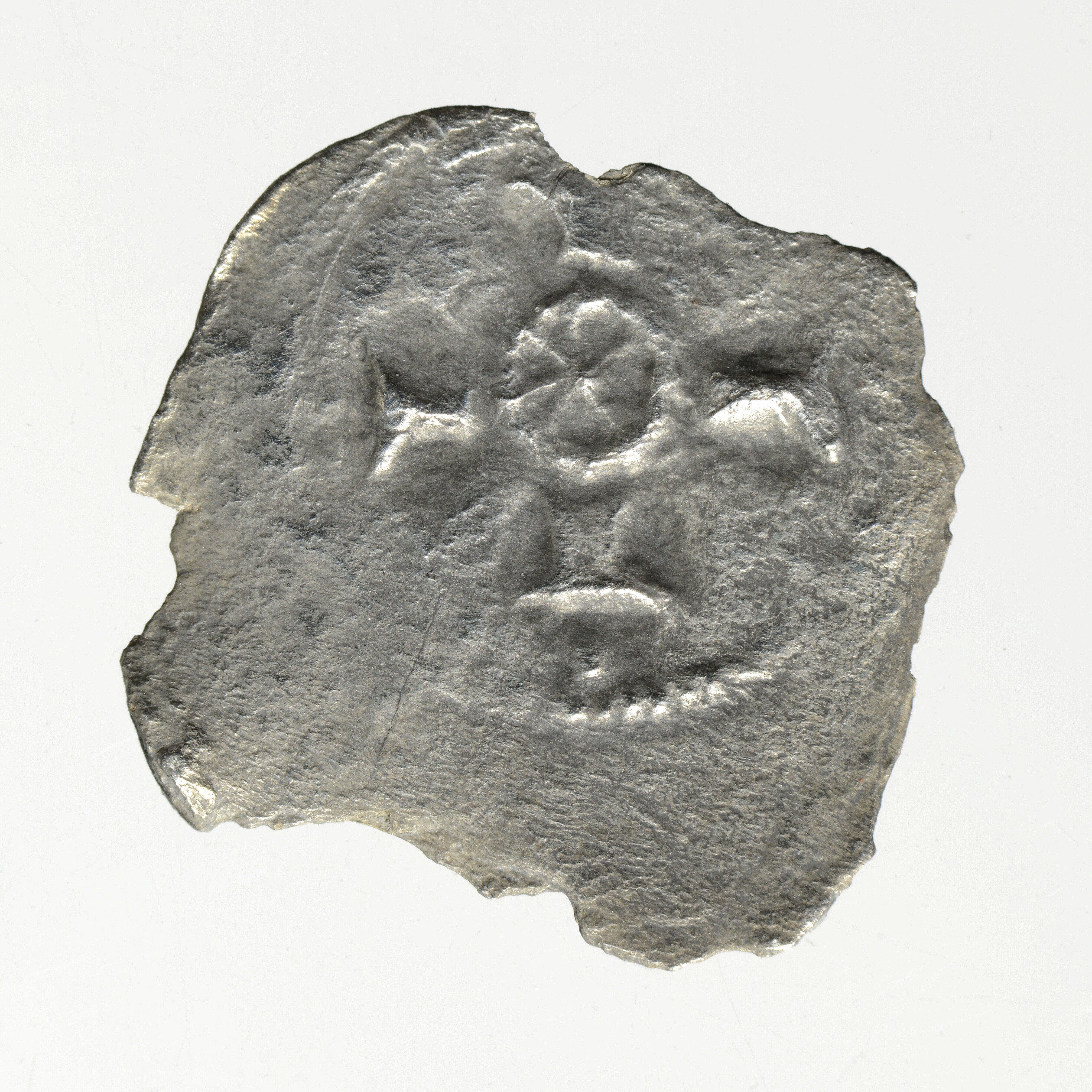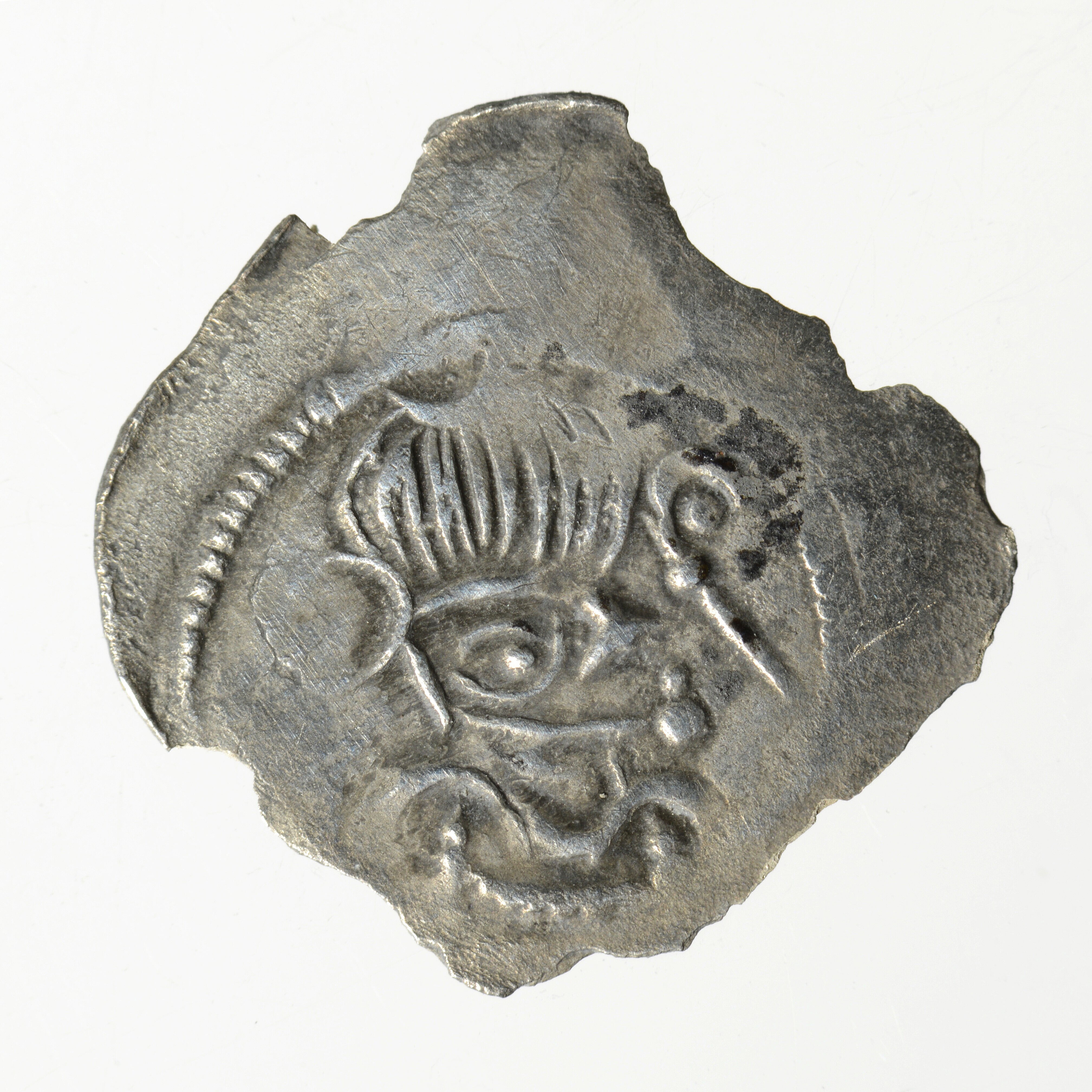Penning; Utrecht Bisdom (1010-1528); bisschop anoniem; vz.: borstbeeld (naar rechts) van een bisschop met een “Turkse muts” en een kromstaf, binnen een parelcirkel, geen omschrift; kz.: gevoet kruis met bolletjes op de voeten en centraal een ster in een parelcirkeltje, binnen een parelcirkel, geen omschrift; muntplaats: Deventer; gewicht: 0,25 gram