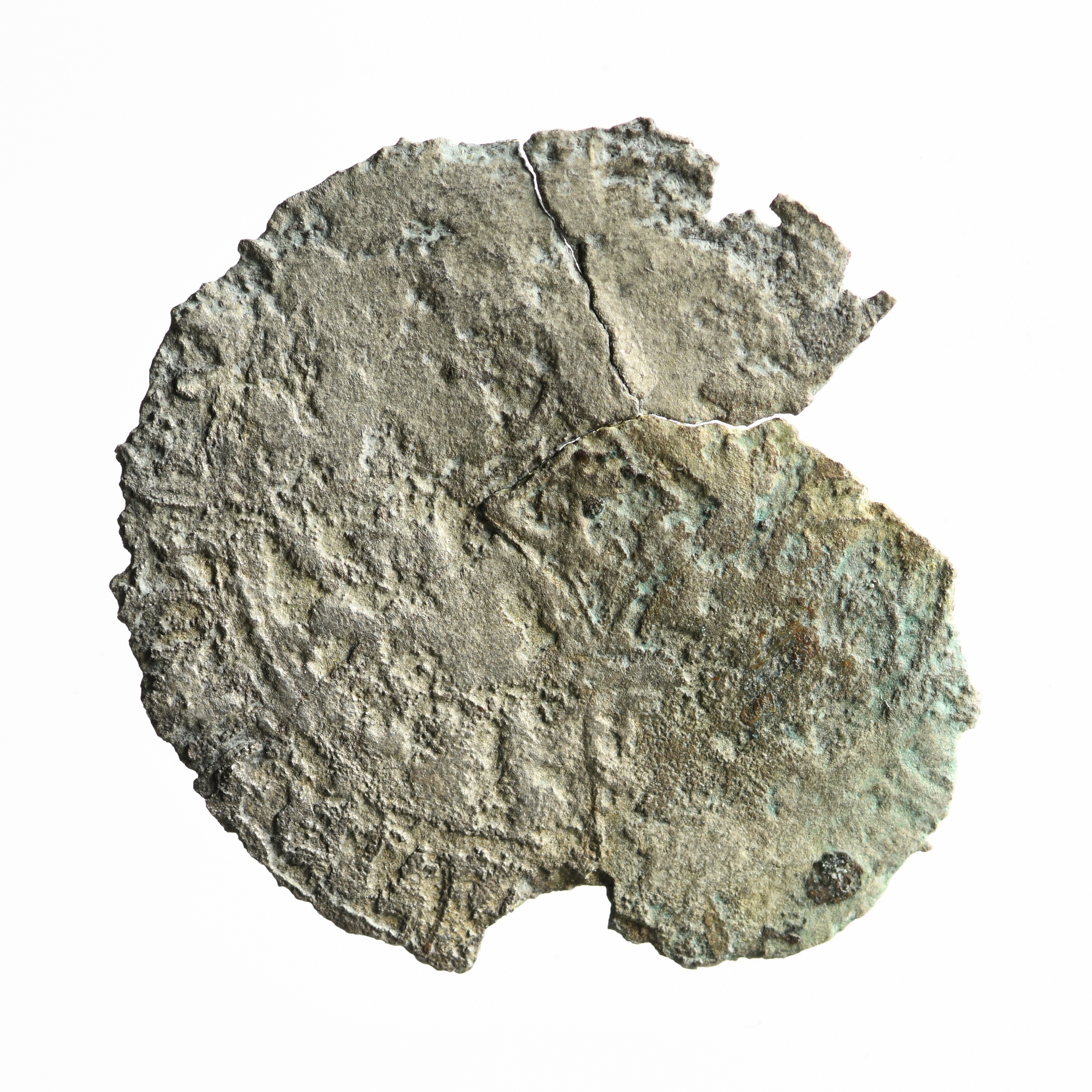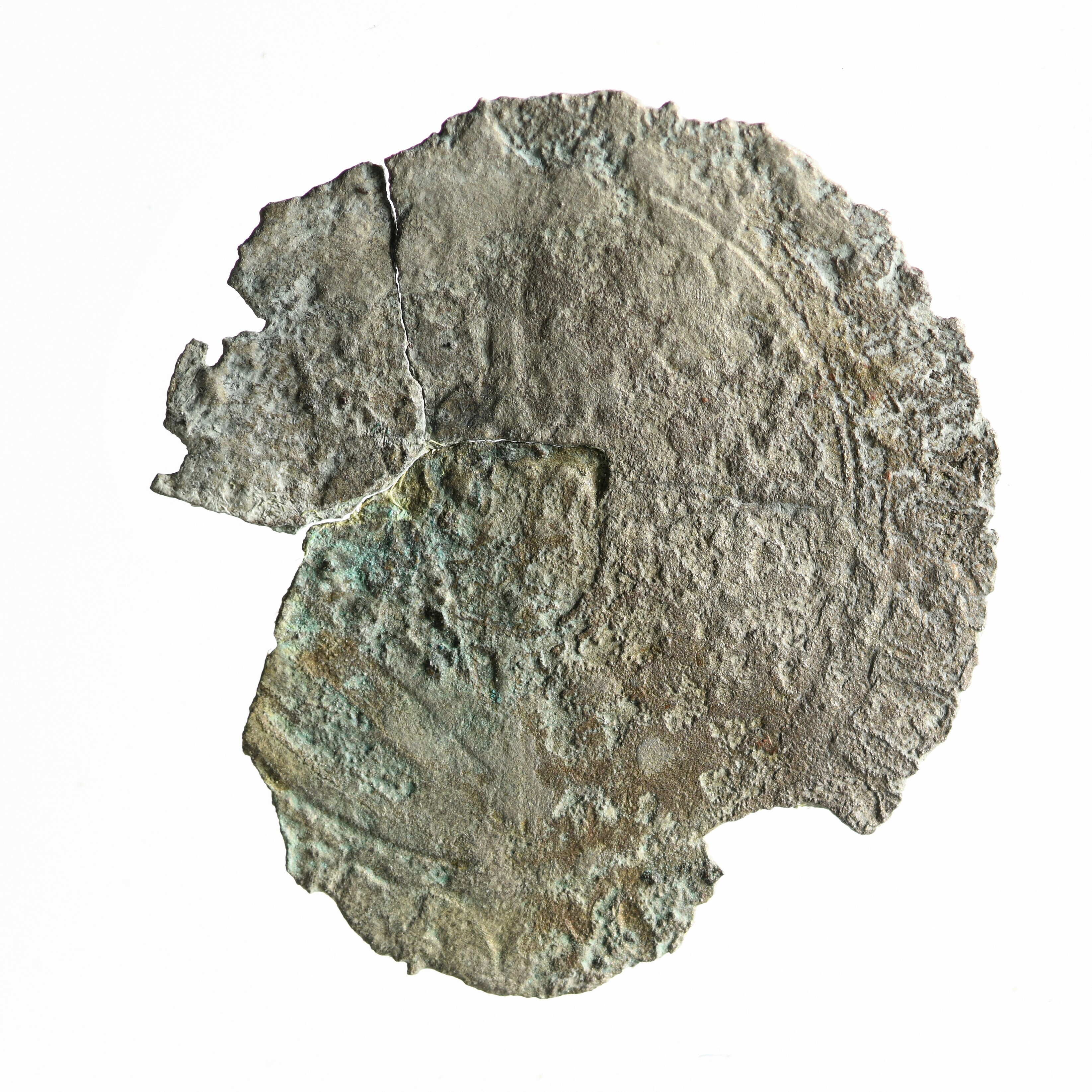 Groot; Karel V (1506-1555); vz.: Bourgondisch wapenschild met wapenschild in het midden binnen (parel)cirkel met onleesbaar omschrift; kz.: lang gevoet kruis met wapenschild met onleesbaar omschrift; gewicht: 0.52 gram