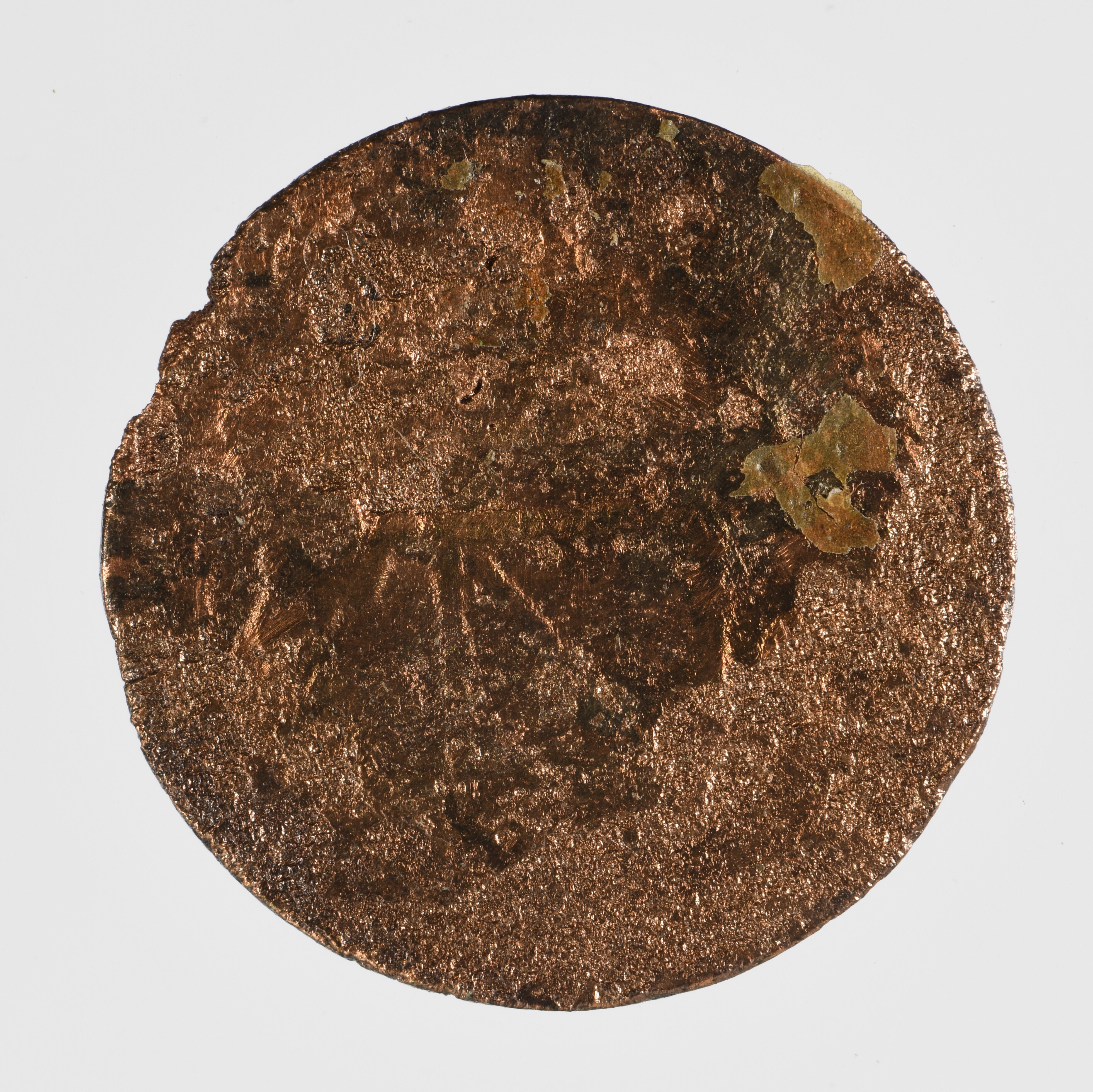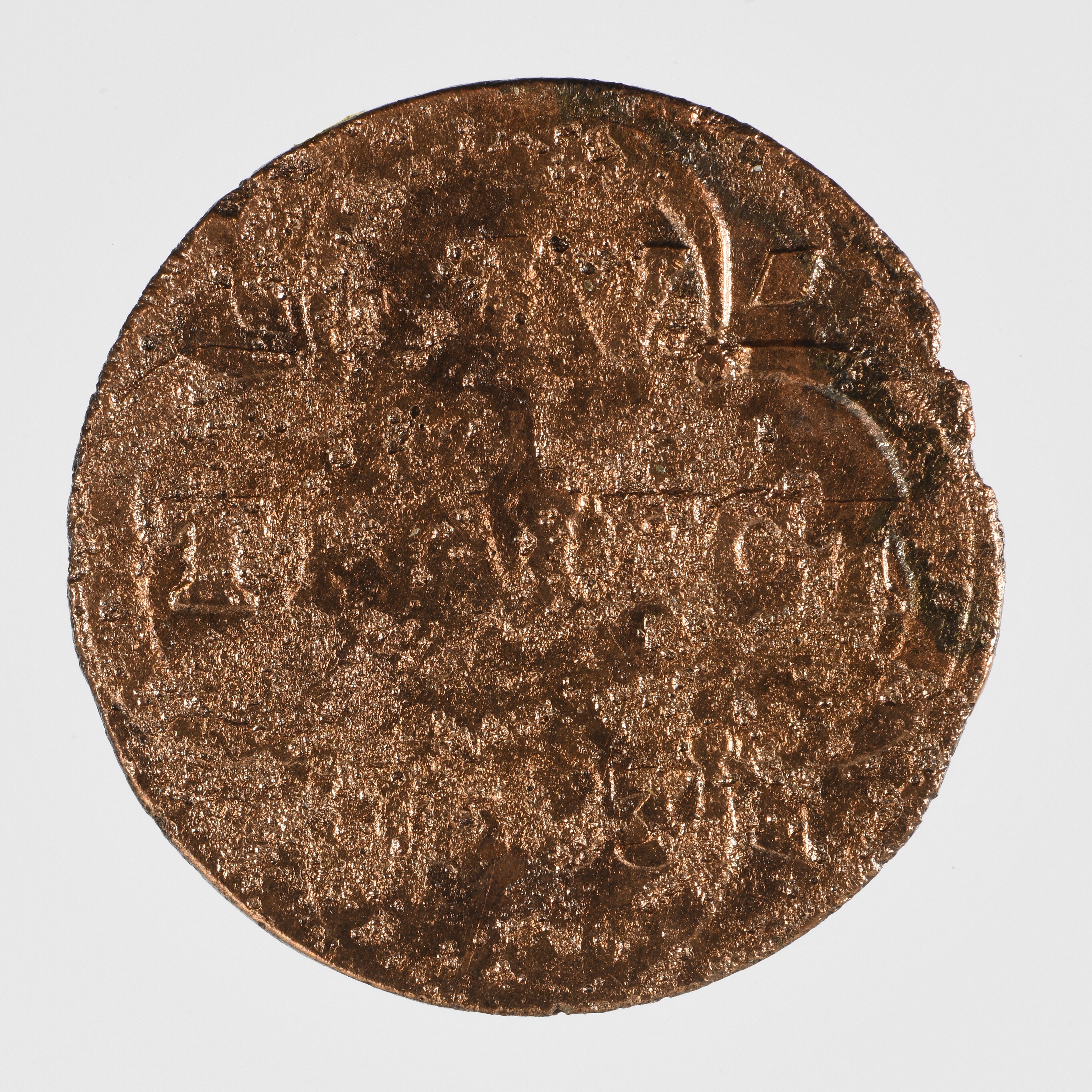Duit; Utrecht Stad (1581-1795); vz.: binnen een vierpas in drie regels: [C]IV. / TRAIECT / 1683; kz.: gekroond en door twee leeuwen vastgehouden stedelijk wapenschild met daaronder UTRECHT; muntplaats: Utrecht; gewicht: 2.22 gram