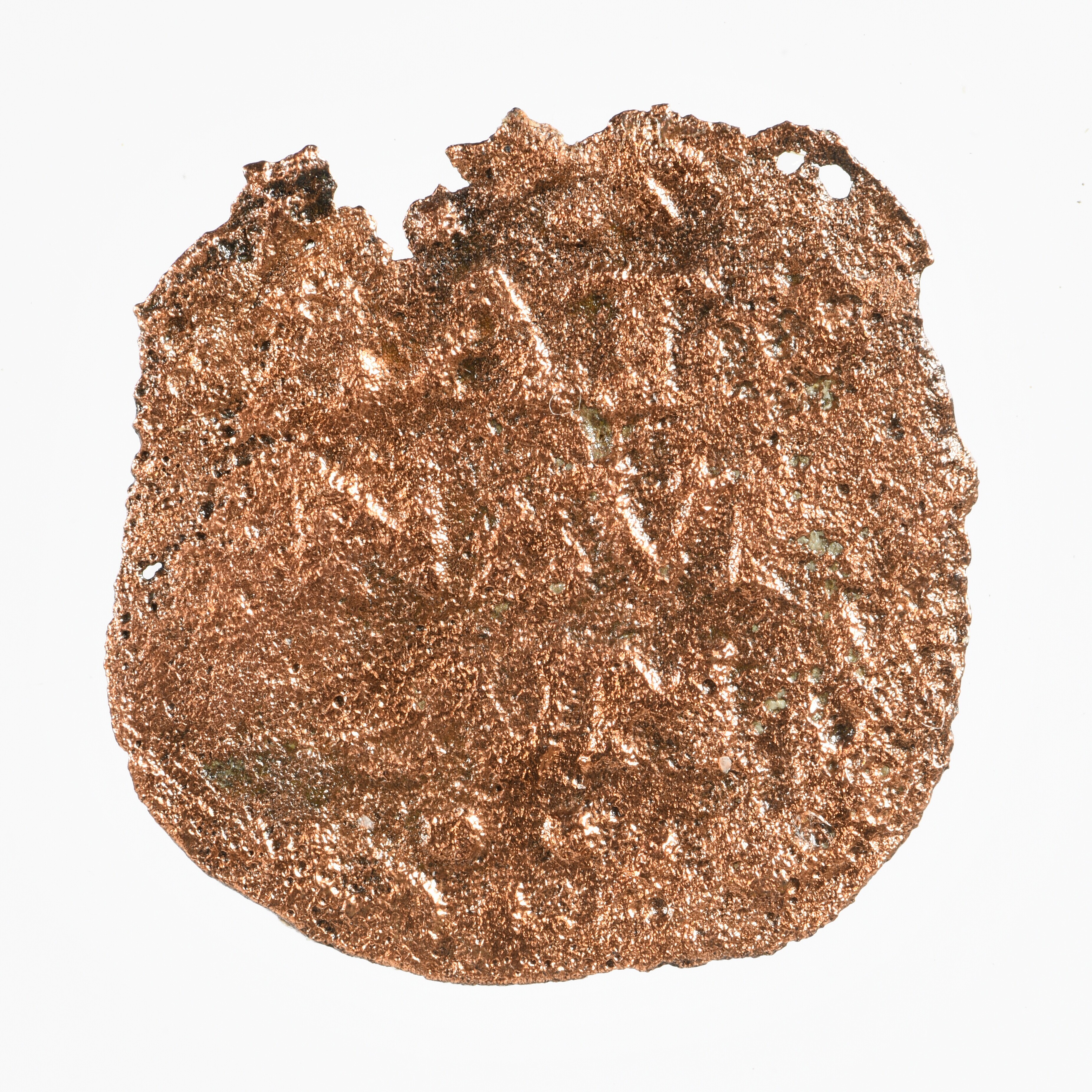 Duit; Gelderland Provincie (1581-1795); Batenburg; vz.: binnen een tulpkrans opschrift in vijf regels: • • / BAT / [E]NBV[R] / [G]VM / ••[•]; kz.: versierd en gekroond wapenschild met ongewapende klimmende leeuw, naar links gewend, in twee halve tulpkransen; muntplaats: Batenburg; gewicht: 0.78 gram