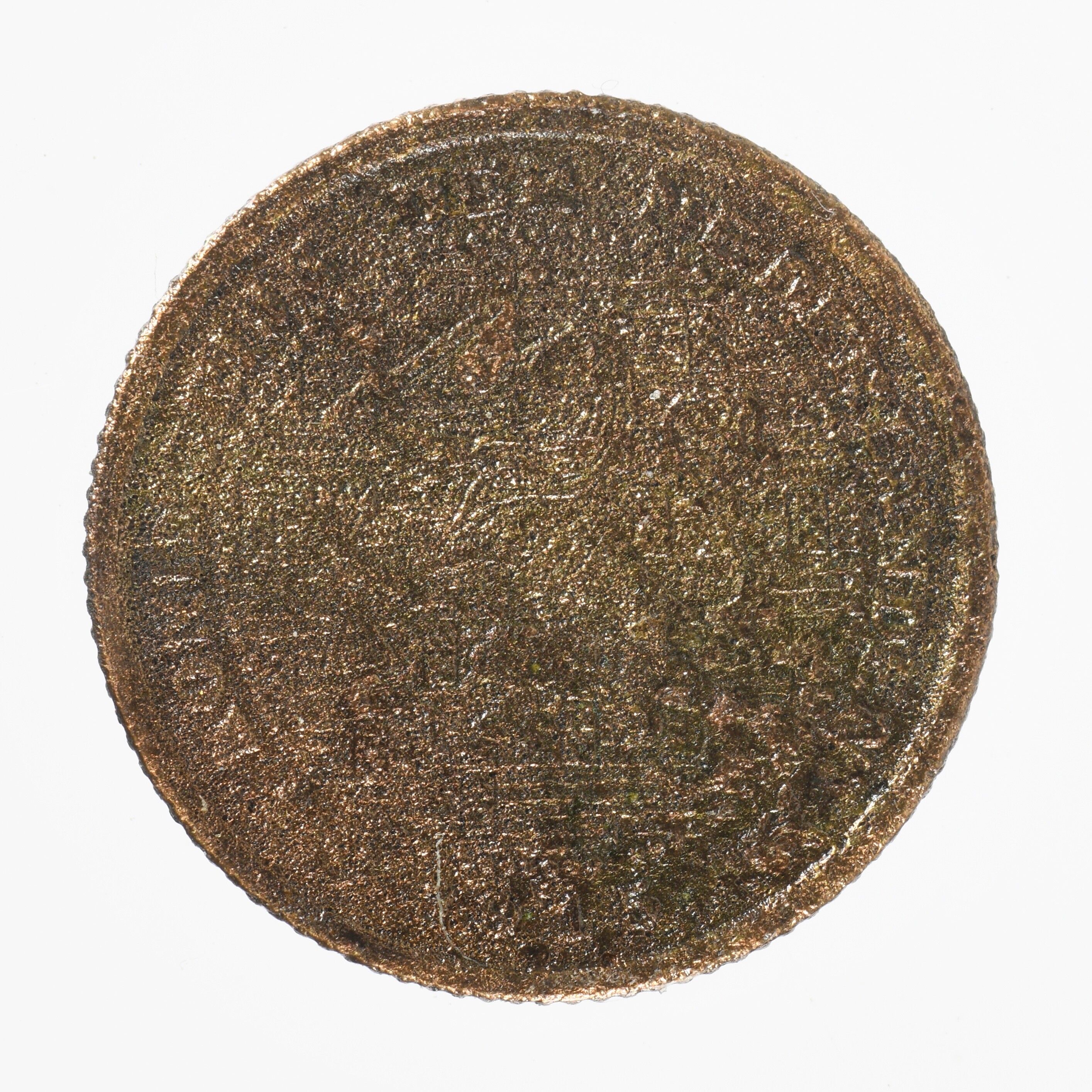 Halve cent; Nederland Koninkrijk (1813-heden); Wilhelmina (1890-1948); vz.: klimmende leeuw naar links met zwaard en pijlenbundel op een veld van azuur met zeventien blokken binnen parelcirkel, met omschrift (druiventros) KONINGRIJK DER NEDERLANDEN (mercuriusstaf) 1938; kz.: binnen een krans van twee samengebonden oranjetakken in twee regels: ½ / CENT; muntplaats: Utrecht; gewicht: 1.16 gram