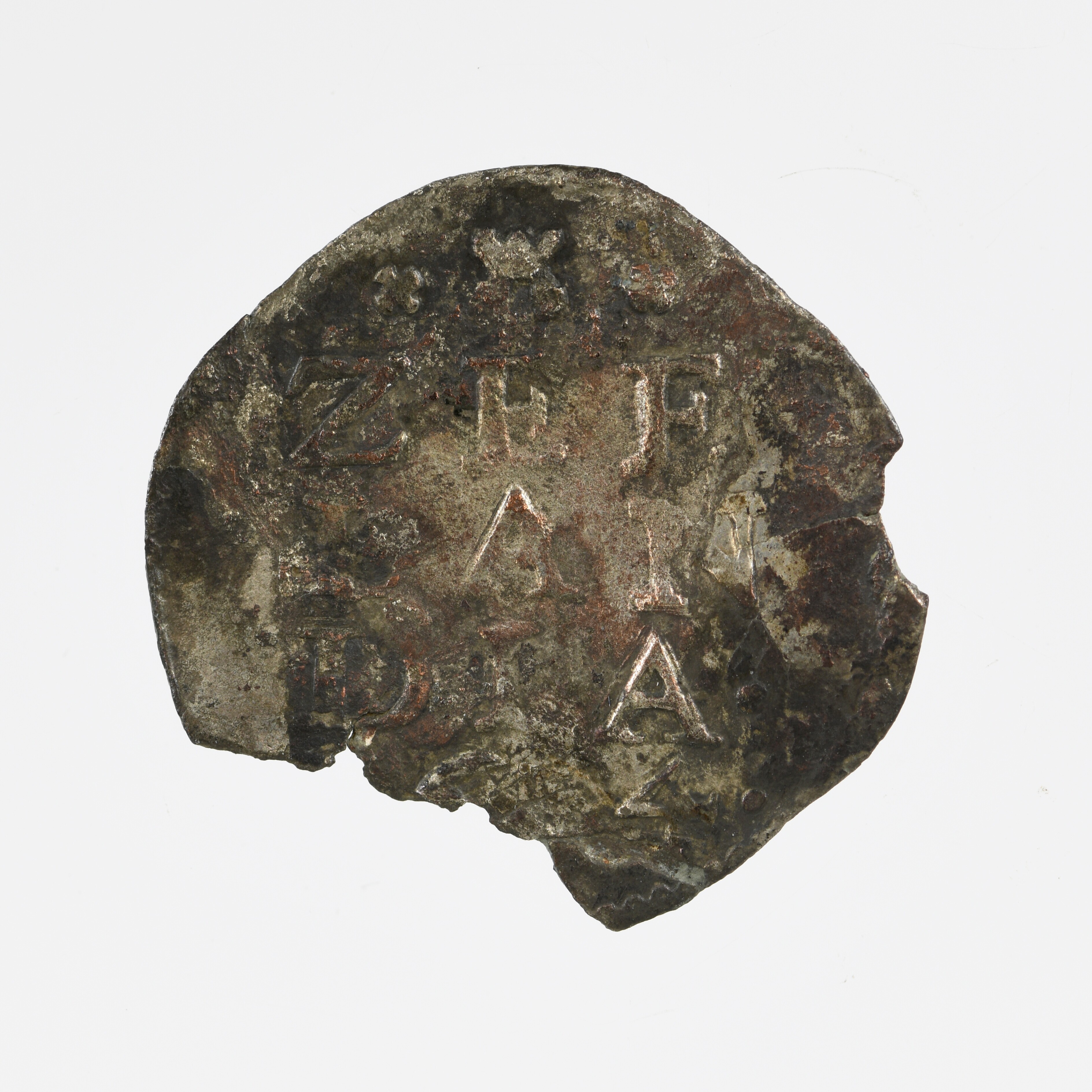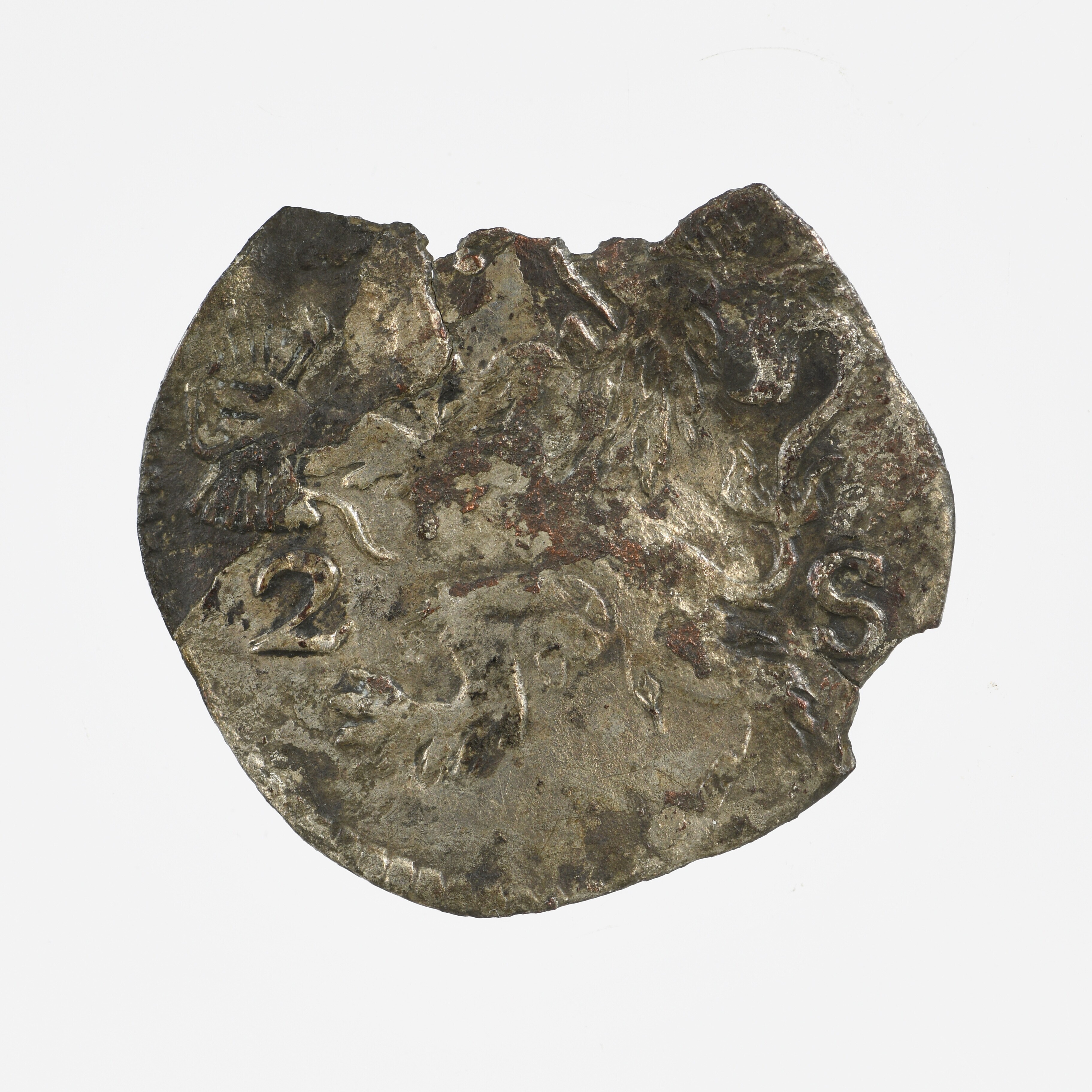 Dubbele stuiver; Zeeland Provincie (1581-1795); vz.: in vier regels: rozet (burcht) rozet / ZEE / [L]AN / DIA / [16(1 of 2)]4; kz.: naar links klimmende generaliteitsleeuw met (niet zichtbaar) 2 – S ter weerszijden; muntplaats: Middelburg; gewicht: 0.93 gram