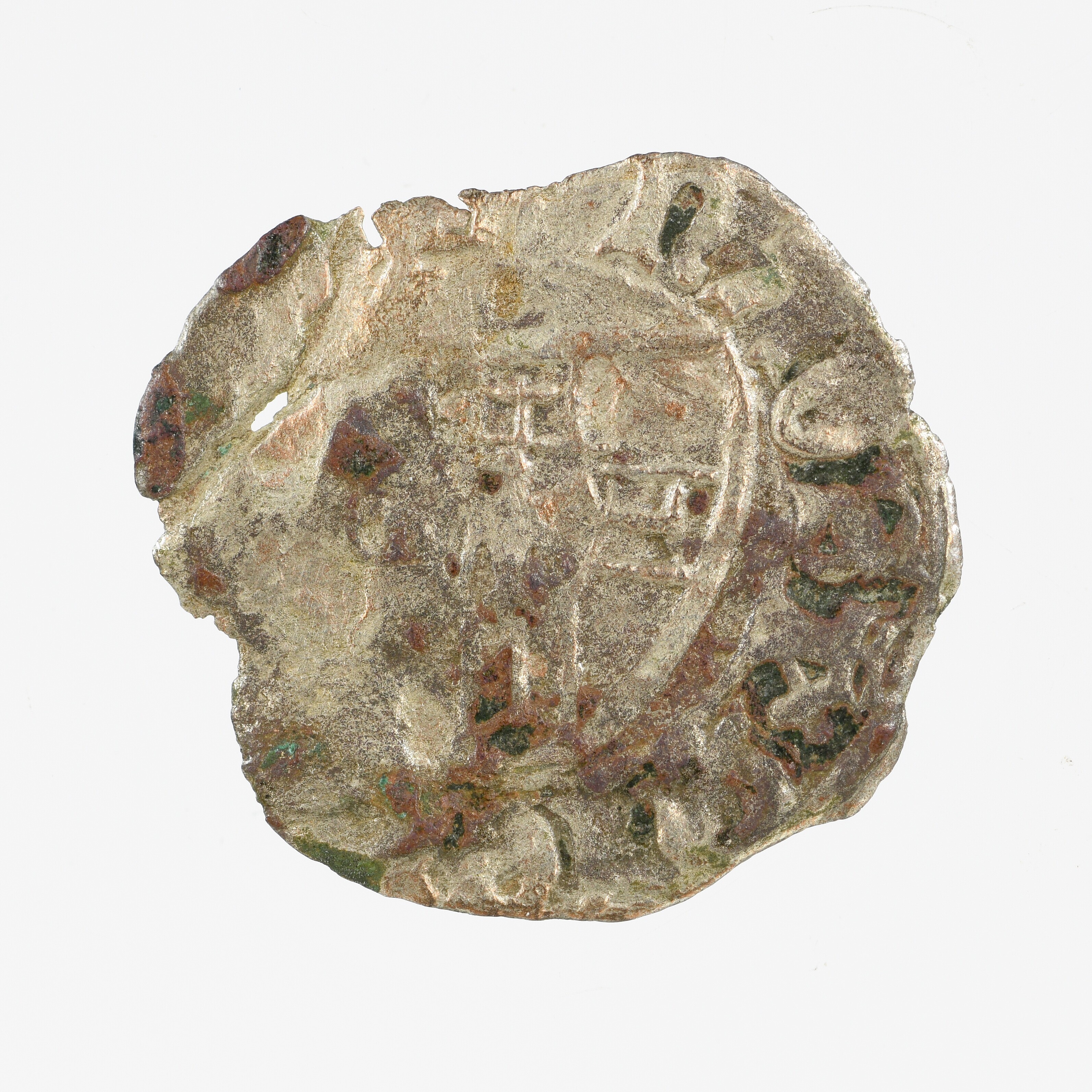 Schilling; Duitse Orde (1192-heden); Grootmeester Michael Küchmeister van Sternberg (1414-1422) vz.: schild met centrale adelaar en kruizen aan de vier zijden met omschrift + MAGST MIC[HAEL·PRI]; kz.: kruis binnen schild met omschrift [*MONE]TA·DNO[R]V[M·PRU]; gewicht: 0.99 gram