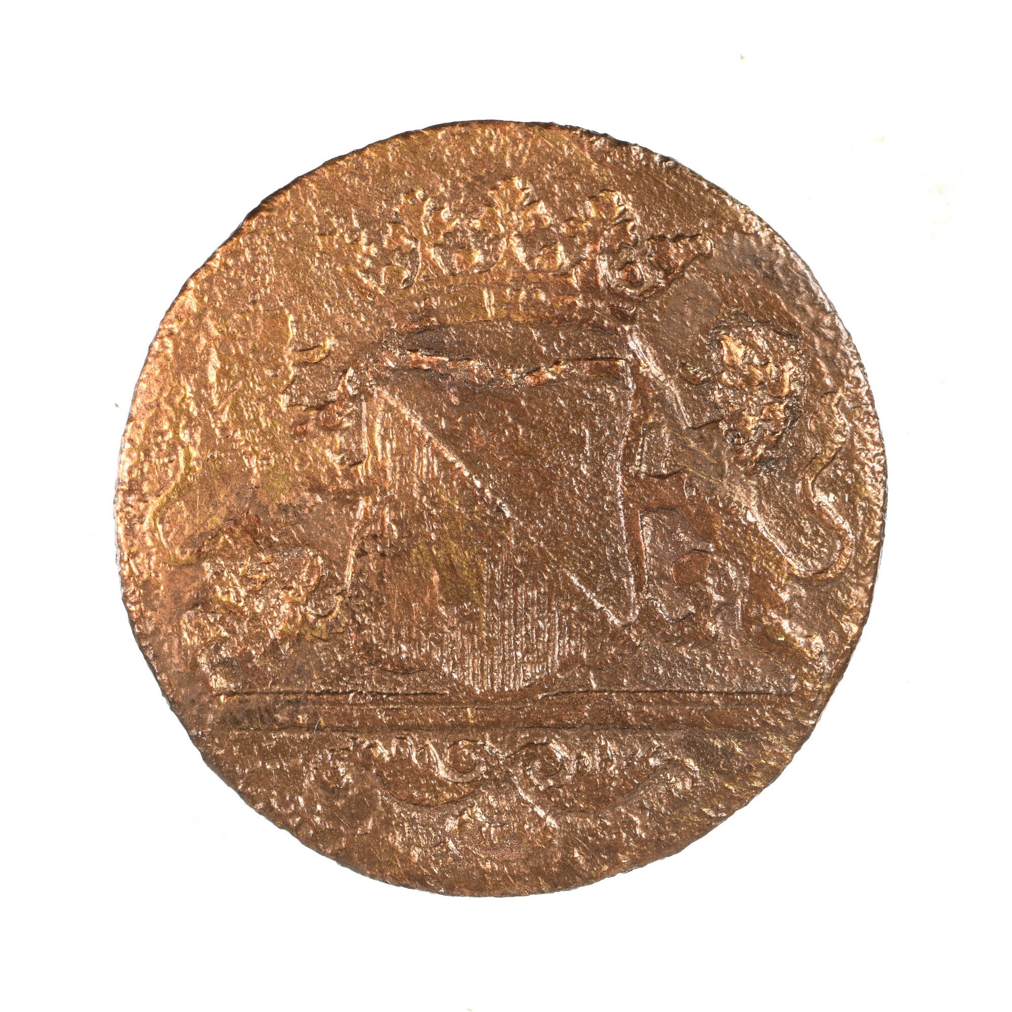Duit; Utrecht Stad (1581-1795); vz.: in drie regels STAD / UTRECHT / 1784; kz.: gekroond en aan weerszijden door leeuwen vastgehouden stadswapen van Utrecht; muntplaats: Utrecht; gewicht: 2.71 gram