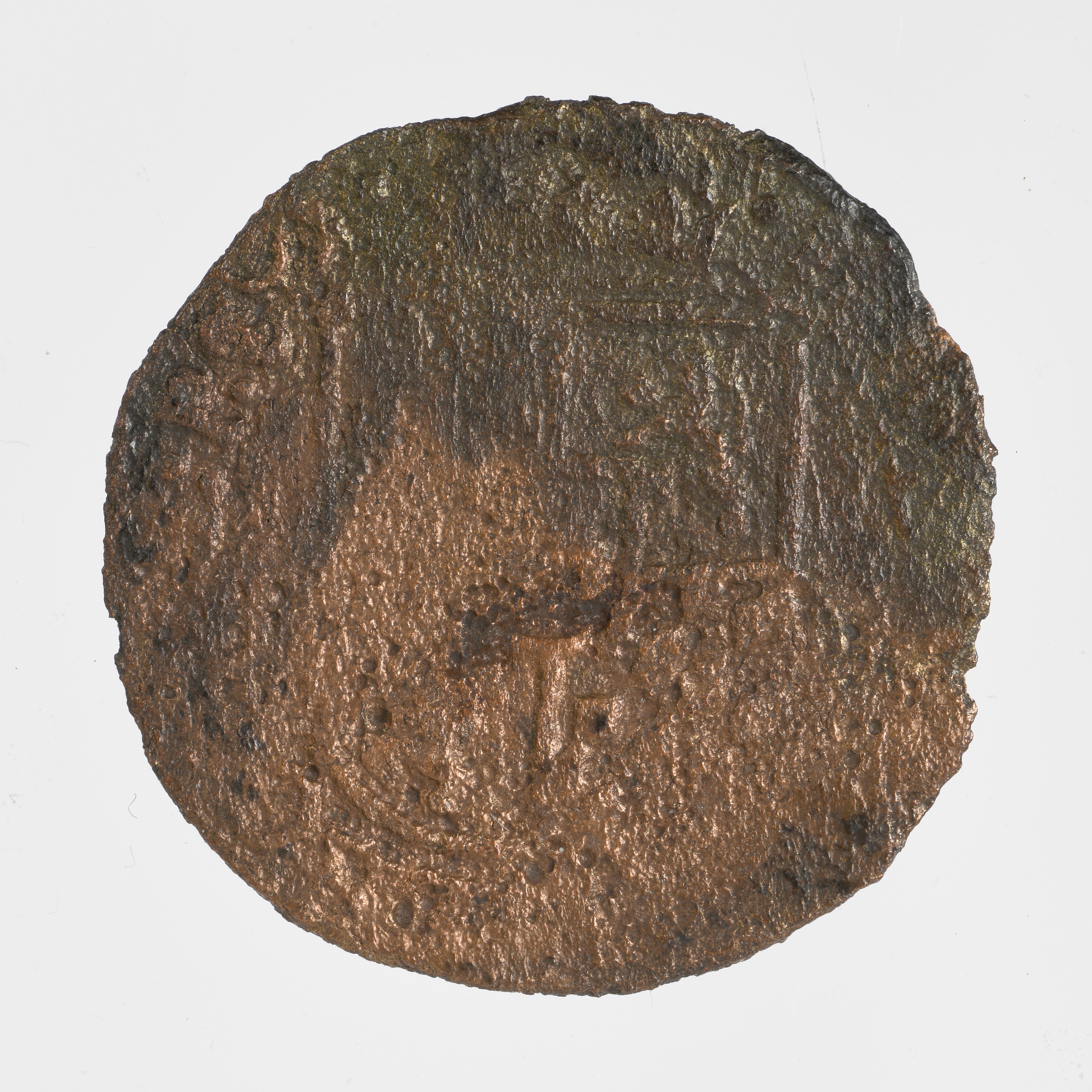 Aidant; Maaslandse Heerlijkheden; Stavelot; Ferdinand van Beieren (1612-1650); vz.: gekroond wapenschild met leeuwen en ruiten in kwartieren, en de Stavelotse wolf in het wapenschild in het midden, met omschrift [F]E[RDI D G•E]LEC [COL PRI S]T[A]; kz.: letters F B onder een bisschopshoed, met tussen de letters in is een medusa hoofd afgebeeld van het graafschap ...