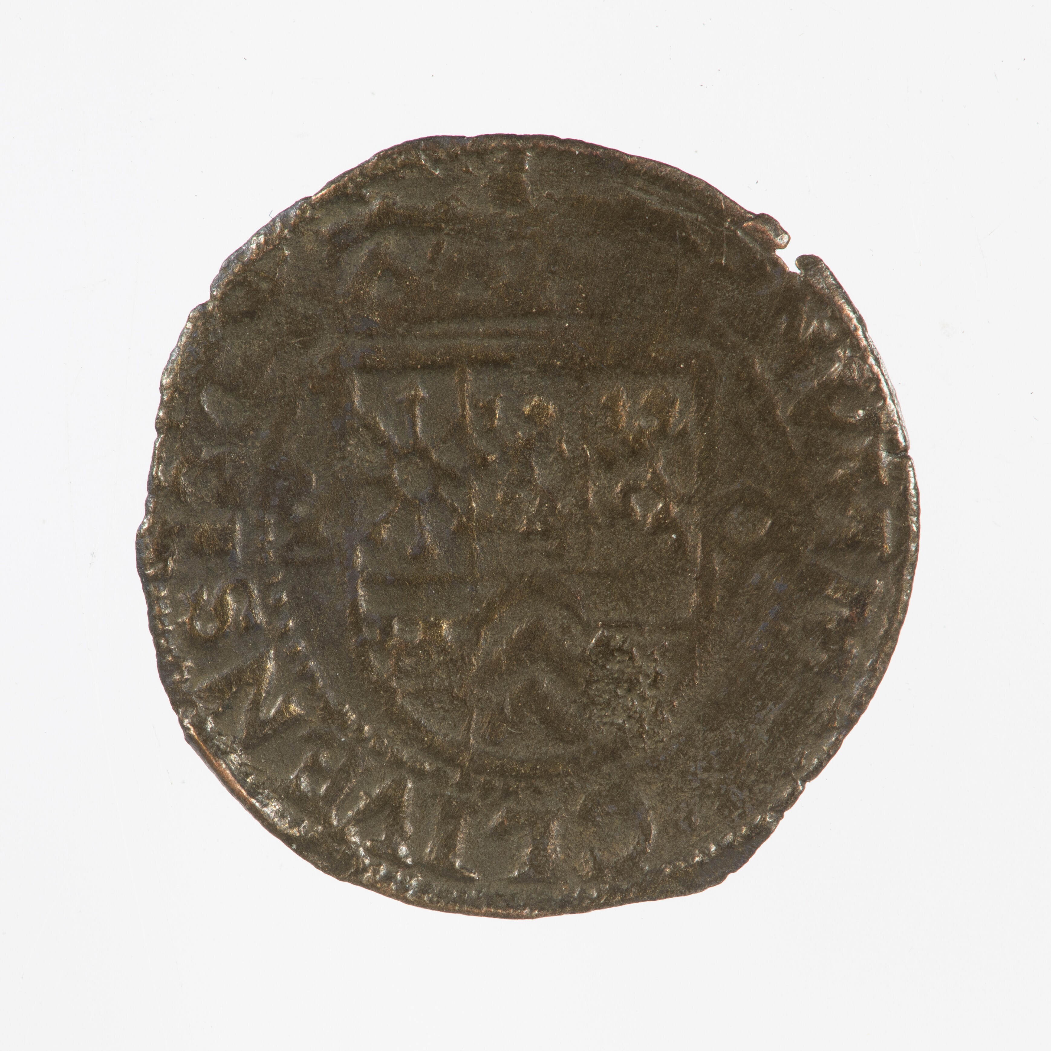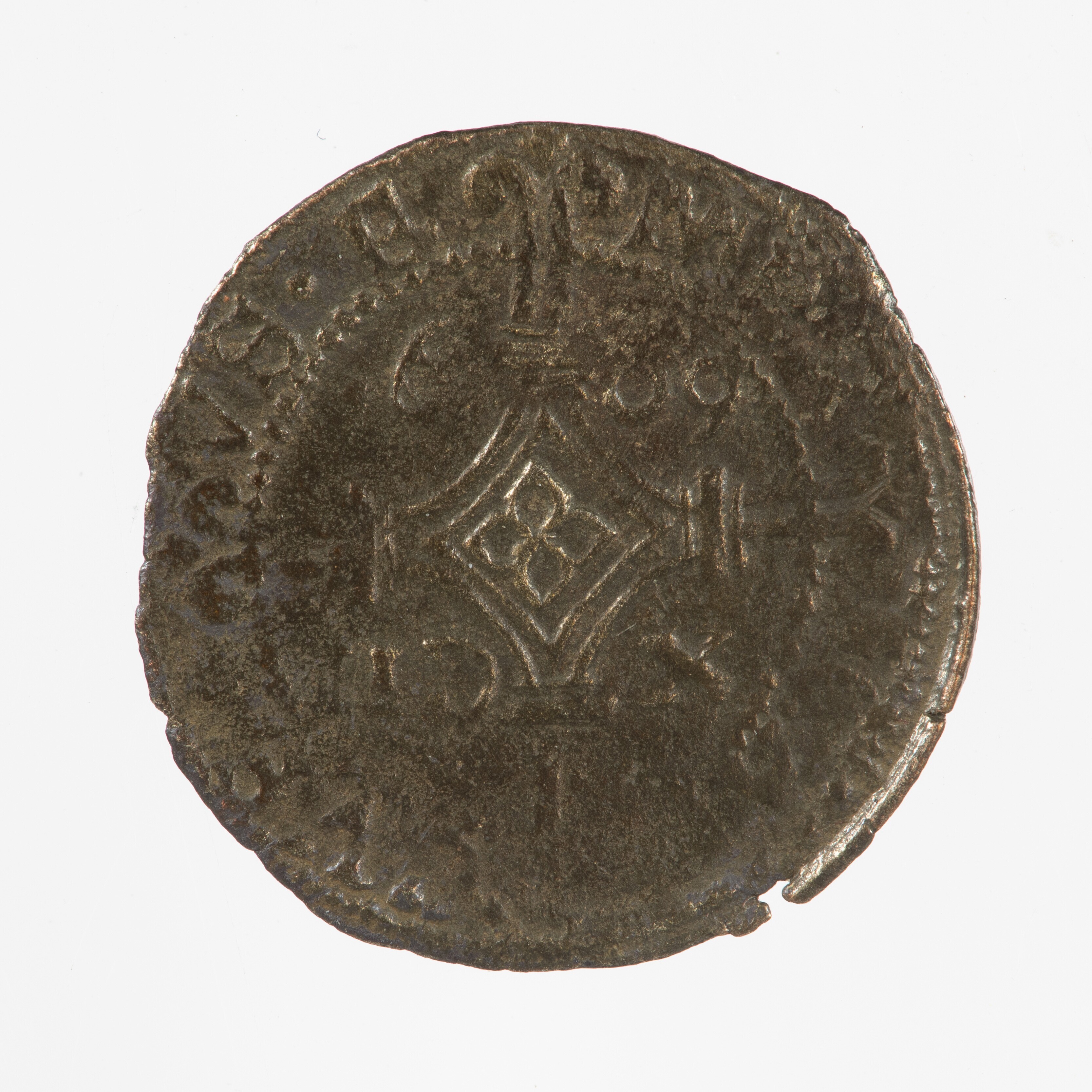 Halve stuber; Hertogdom Gulik-Berg-Kleef (1521-1609); Johann Wilhelm von Jülich-Kleve-Berg (1592-1609); vz.: gekroond zesdelig wapenschild met omschrift NVMMVS • CLIVENSIS(O?); kz.: lang kruis met gekrulde uiteinden met in het midden een bloem en in kwarten X / CII / 6 / 09 en met omschrift CVS / VS • E / M[BR] / ICA; muntplaats: Emmerich ...