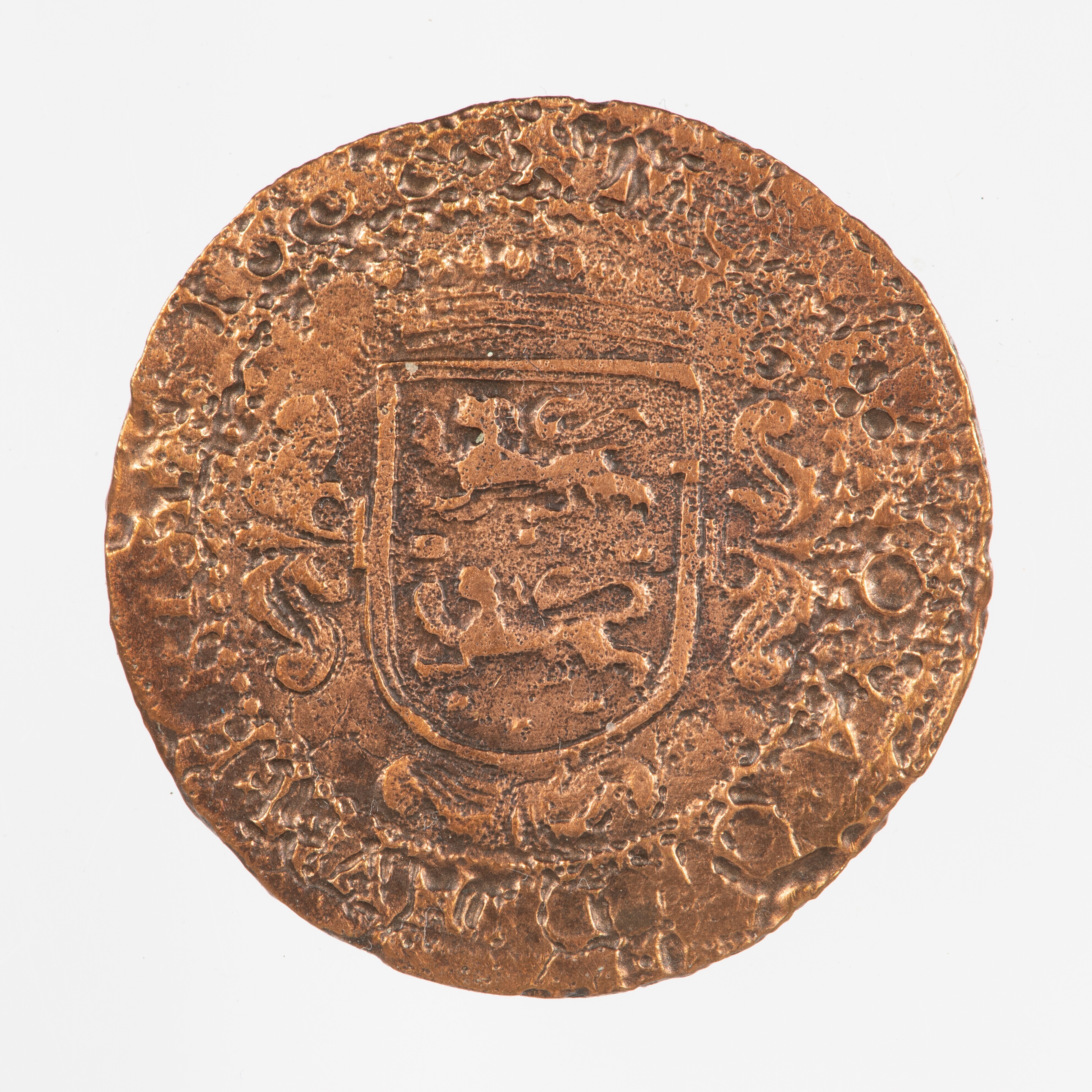 Oord; Friesland Provincie (1581-1795); vz.: buste van een Saksische edelman met geschouderd zwaard, aan weerszijden de letters F en O met omschrift (leeuw) [NI]SI. DOMINVS + [NOBIS]C[V]M.; kz.: gekroond en versierd wapenschild van Friesland met omschrift (leeuw) MO[NE x] NOVA x ORD[I]NVM x FRIS 160(8?); muntplaats: Leeuwarden; gewicht: 3.50 gram