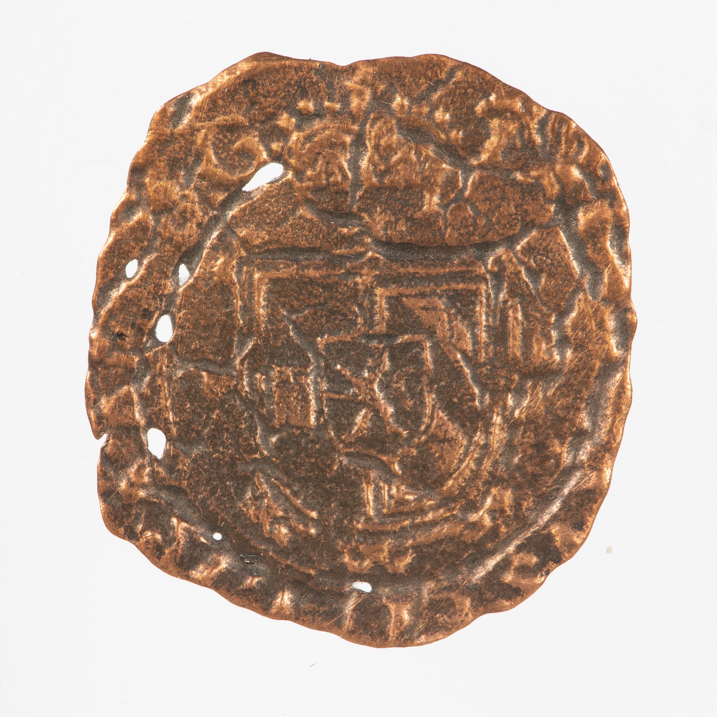 Duit; Brabant Hertogdom (1183 -1795); Stad Den Bosch; Albert en Isabella (1598-1621); vz.: gekroond Bourgondisch wapenschild met omschrift [ALBERTVS. ET. ELISABET. D]G; kz.: schuin geplaatst stokkenkruis dat door een vuurijzer is geplaatst, waaraan de keten van de orde van het gulden vlies hangt met aan weerszijden 16 – 15, met omschrift [(muntmeesterteken)] ARC[HI]D[•AVST•]DVC•BVRG[•ET•B•Z•]; gewicht: 0.80 ...