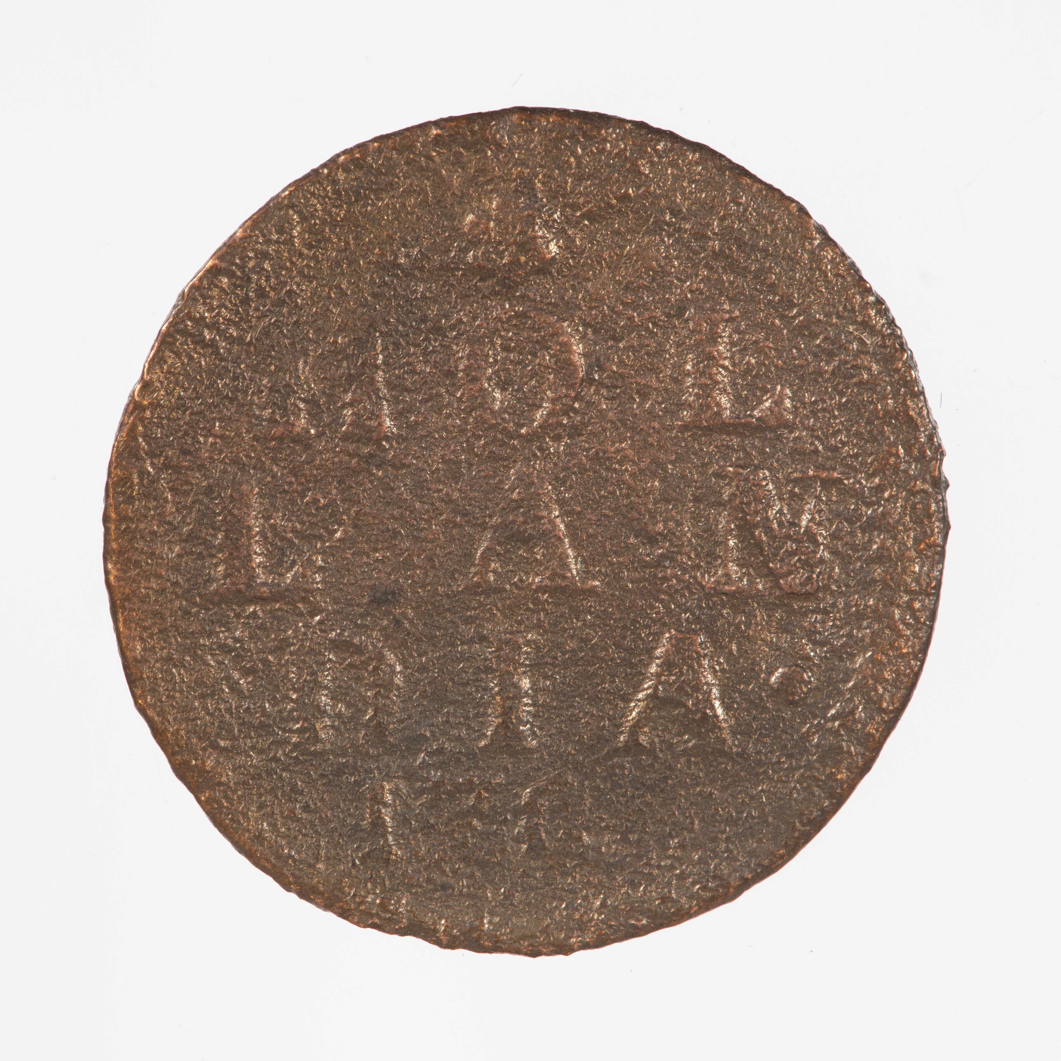 Duit; Holland Provincie (1581-1795); vz.: in vijf regels: • (rozet) • / HOL / LAN / DIA • / 170[x]; kz.: klimmende leeuw naar links met lans en vrijheidshoed binnen een gesloten Hollandse tuin; muntplaats: Dordrecht; gewicht: 3.12 gram