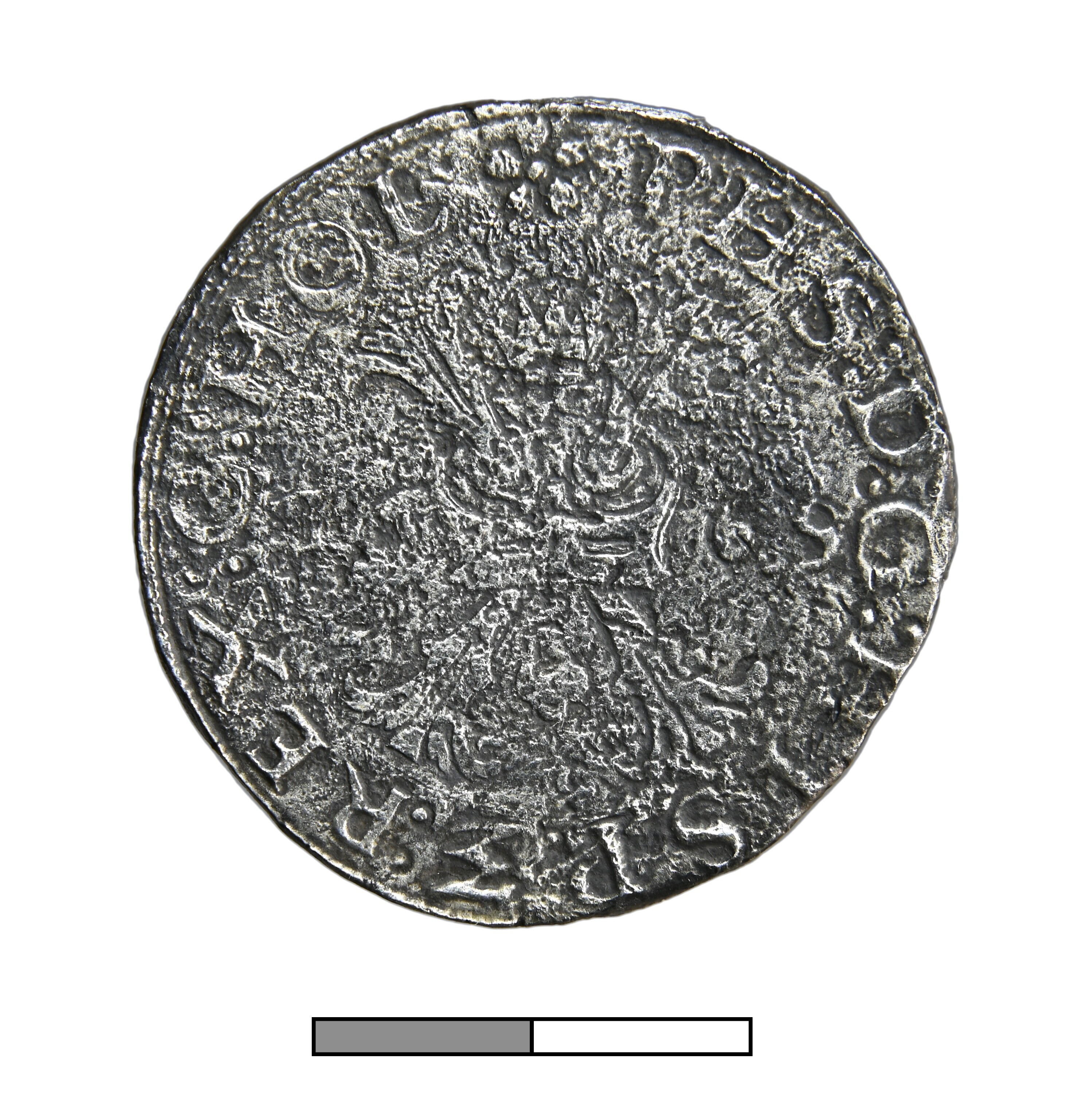 Kruisdaalder; Holland Graafschap (1049-1581); Philips II (1555-1581); vz.: gekroond stokkenkruis 15-69, met omschrift ?:PHS:D:G:HISP:?:REX:C:HOL:; kz.: gekroond wapen, met omschrift DOMINVS•MI-HI•ADIVTOR; muntteken: roos; muntplaats: Dordrecht; gewicht: 26.75 gram; zeldzaamheid R2; referentie: vHoudt 290.DO.1569