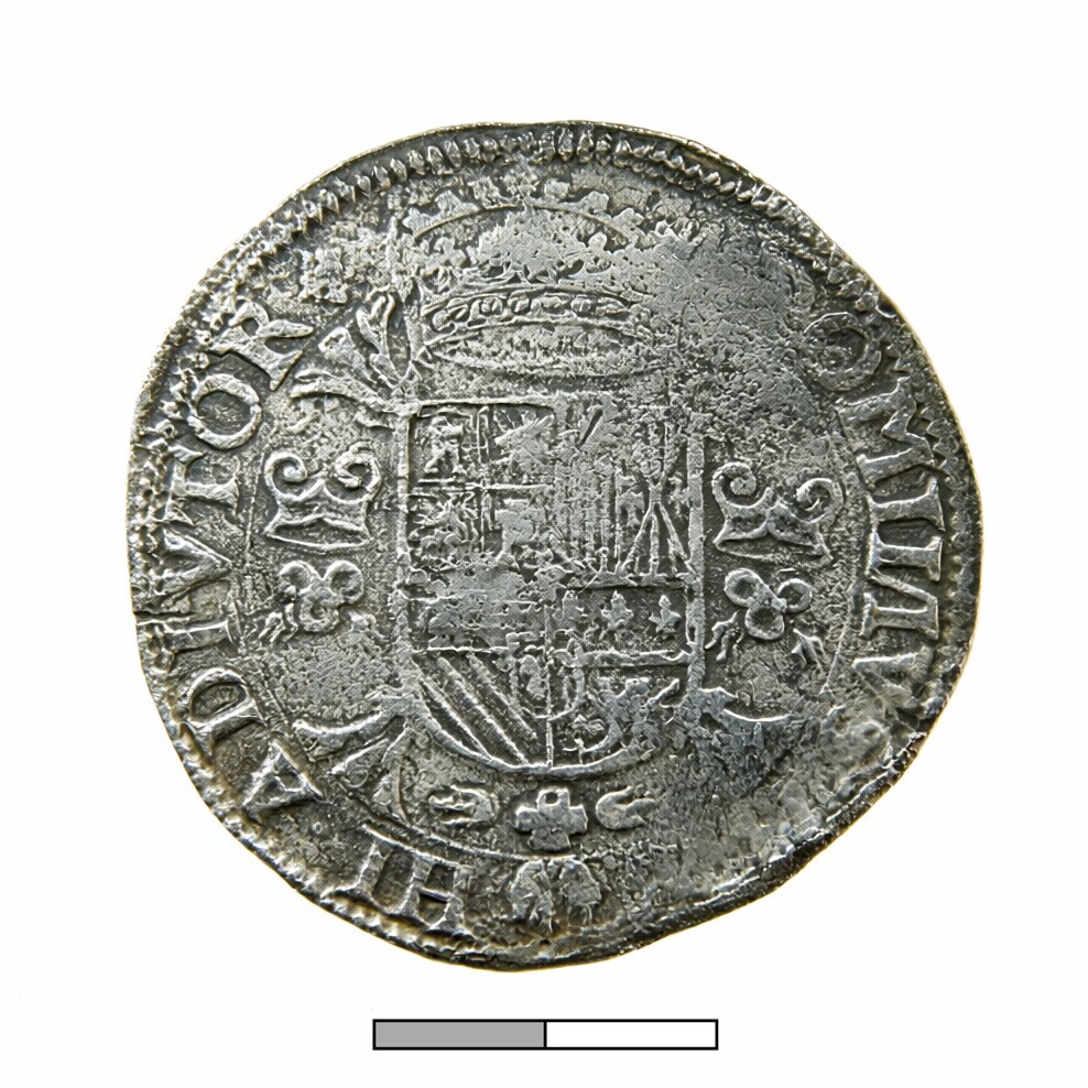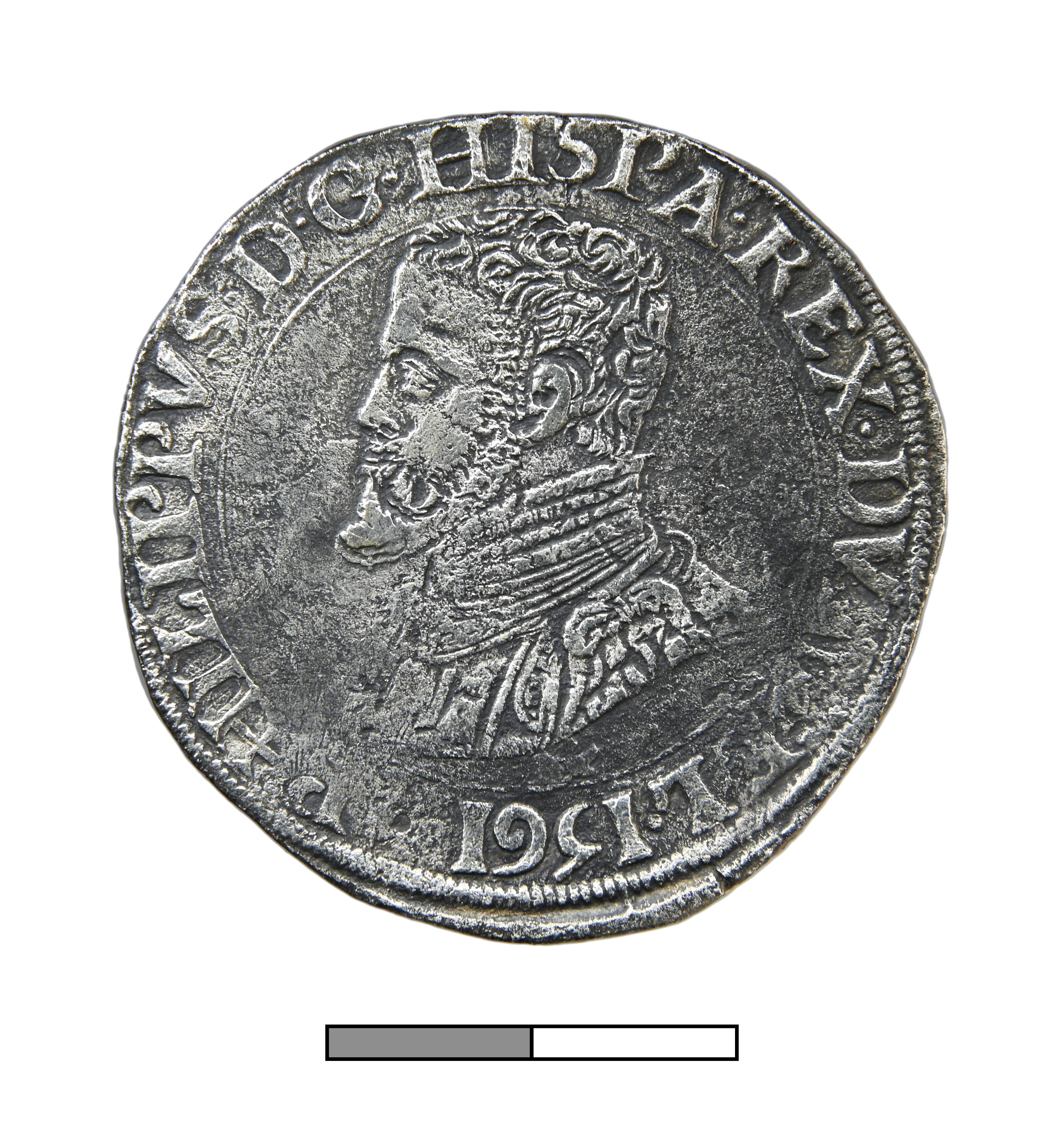 Philipsdaalder; Gelre Hertogdom (1339-1581); Philips II (1555-1581); vz.: geharnast borstbeeld van Philips II naar links, met omschrift PHILIPPVS•D•G•HISPA•REX•DVX•GEL?1561•; kz.: gekroond wapenschild op stokkenkruis, met omschrift •DOMINVS•MI-HI•ADIVTOR•+; muntteken: Gelders kruis; muntplaats: Nijmegen; gewicht: 31.8 gram; zeldzaamheid 97006; referentie: vHoudt 265.NIJ.1561