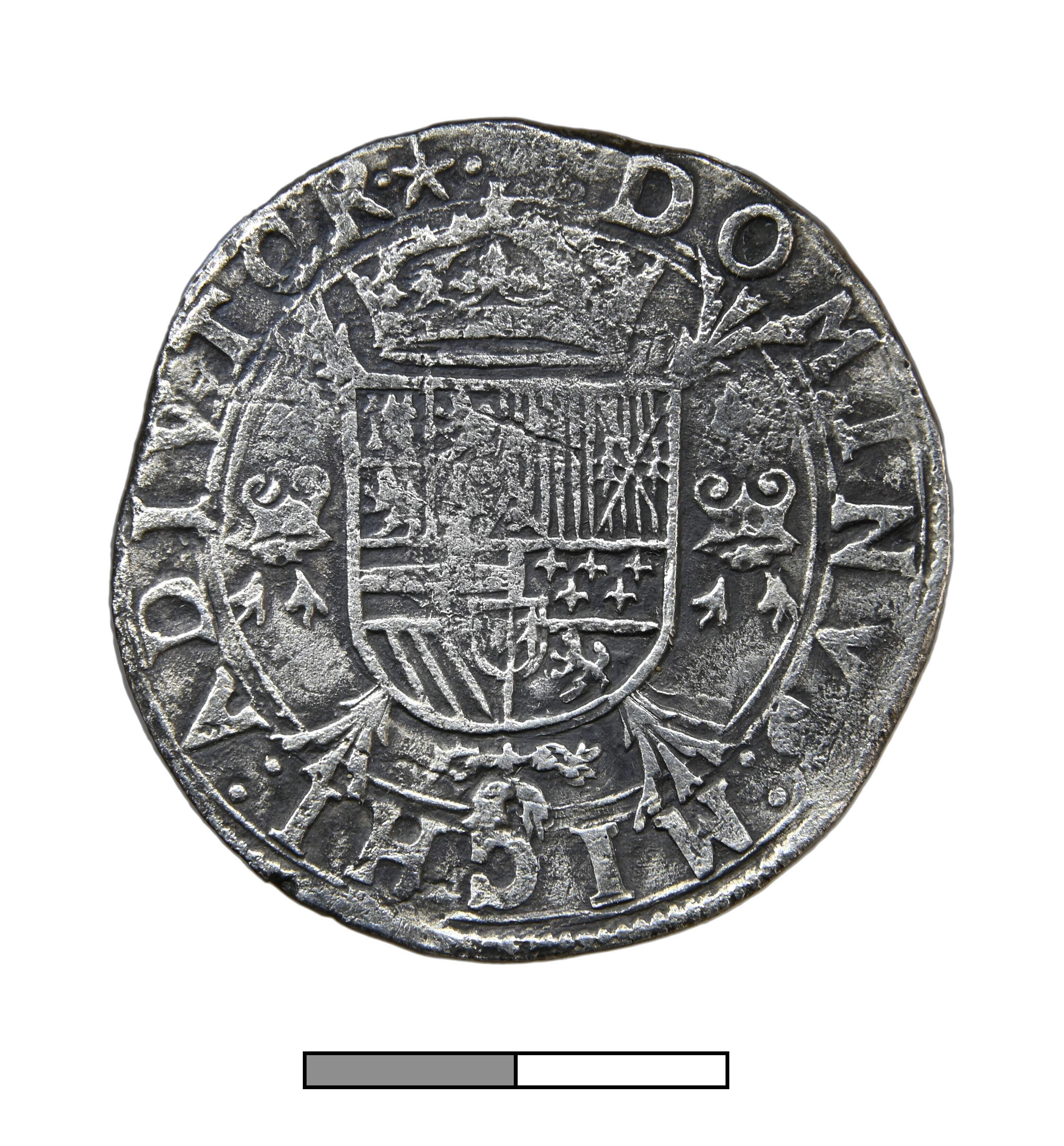 Philipsdaalder; Brabant Hertogdom (1183-1795); Philips II (1555-1581); vz.: geharnast borstbeeld van Philips II naar links, met omschrift •PHS•D•G•HISP•ANG•Z•REX•DVX•BRAB•1558; kz.: gekroond wapenschild op stokkenkruis, met omschrift DOMINVS•MICHI:ADIVTOR*; muntteken: ster; muntplaats: Maastricht; gewicht: 31.9 gram; zeldzaamheid R1; referentie: vHoudt 253.MA.1558