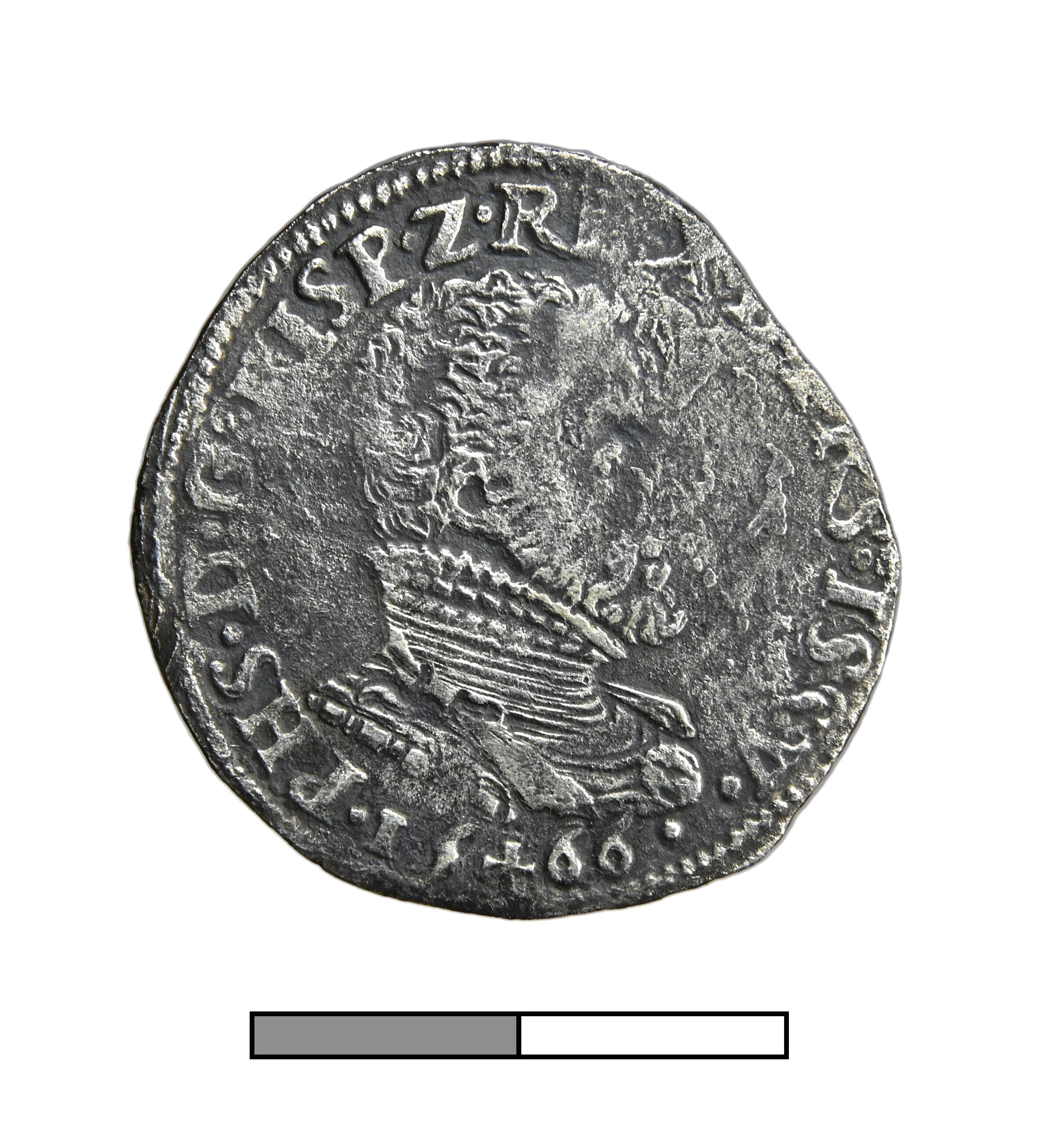 1/5 Philipsdaalder; Overijssel Heerlijkheid (1528-1581); Philips II (1555-1581); vz.: geharnast borstbeeld van Philips II naar rechts, met omschrift •PHS•D•G•HISP•Z•REX•D•TRS•ISSV• 15+66; kz.: gekroond wapenschild op stokkenkruis, met omschrift DOMINVS MIHI ADIVTOR; muntteken: kruis; muntplaats: Hasselt; gewicht: 5.25 gram; referentie: vHoudt 271.HS.1566