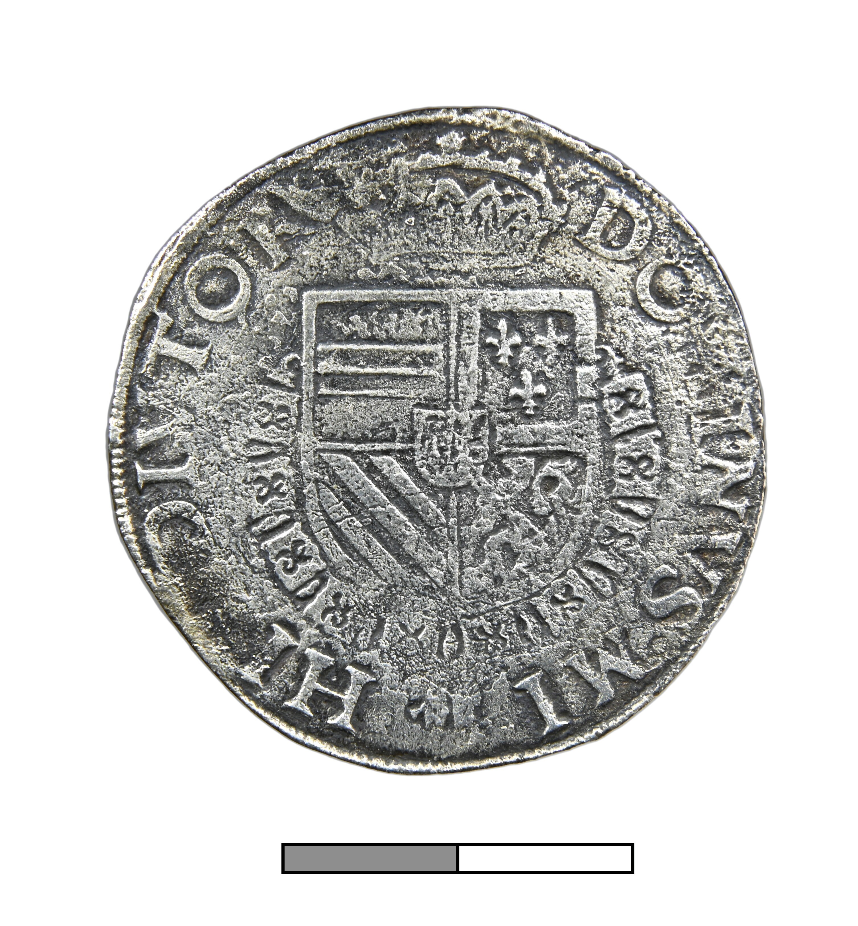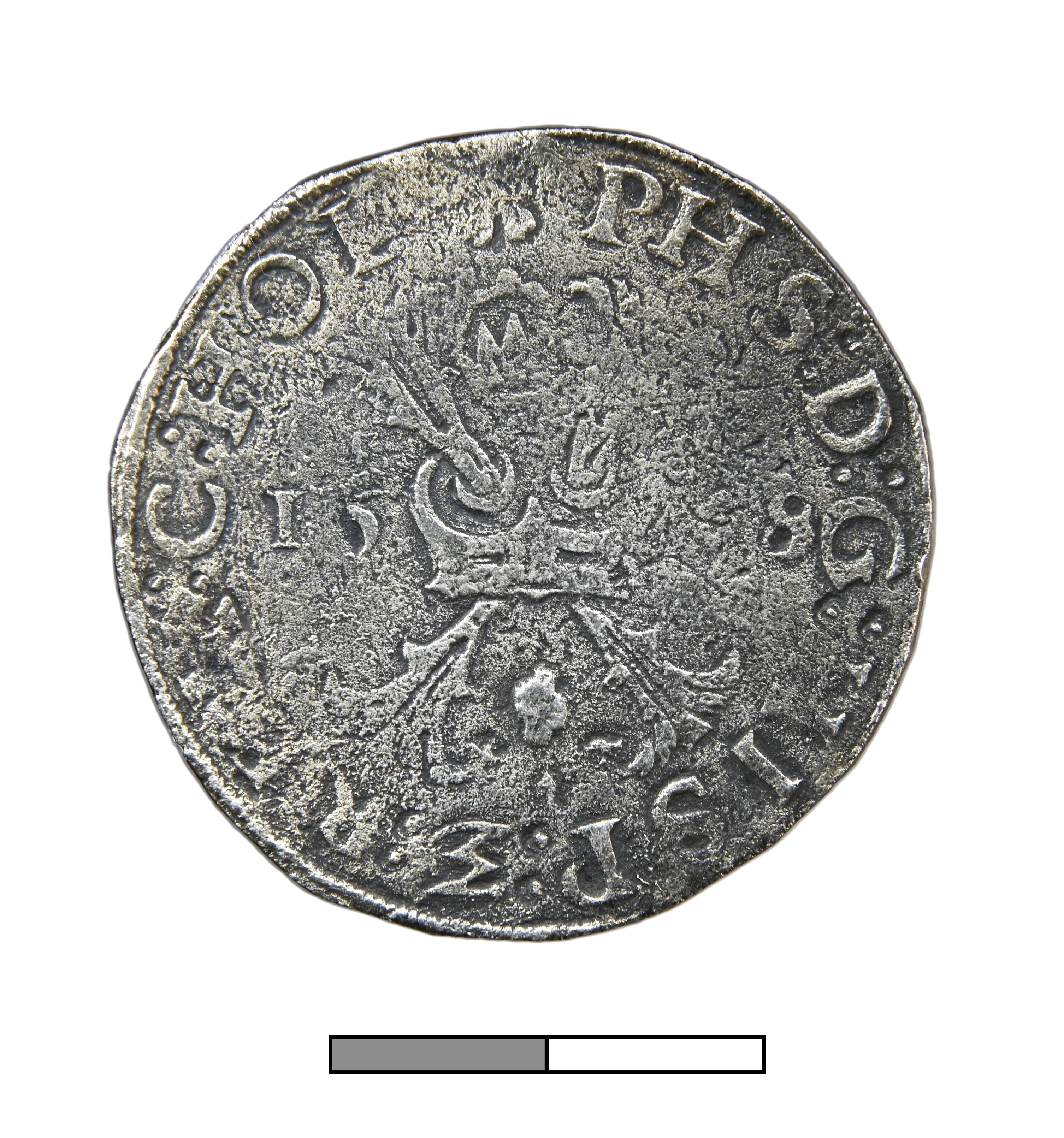 Kruisdaalder; Holland Graafschap (1049-1581); Philips II (1555-1581); vz.: gekroond stokkenkruis 15-68, met omschrift ?PHS:D:G:HISP•Z:REX•C:HOL•; kz.: gekroond wapenschild met gulden vlies, met omschrift DOMINVS•MI-HI•ADIVTOR; muntteken: roos; muntplaats: Dordrecht; gewicht: 27.45 gram; referentie: vHoudt 290.DO.1568