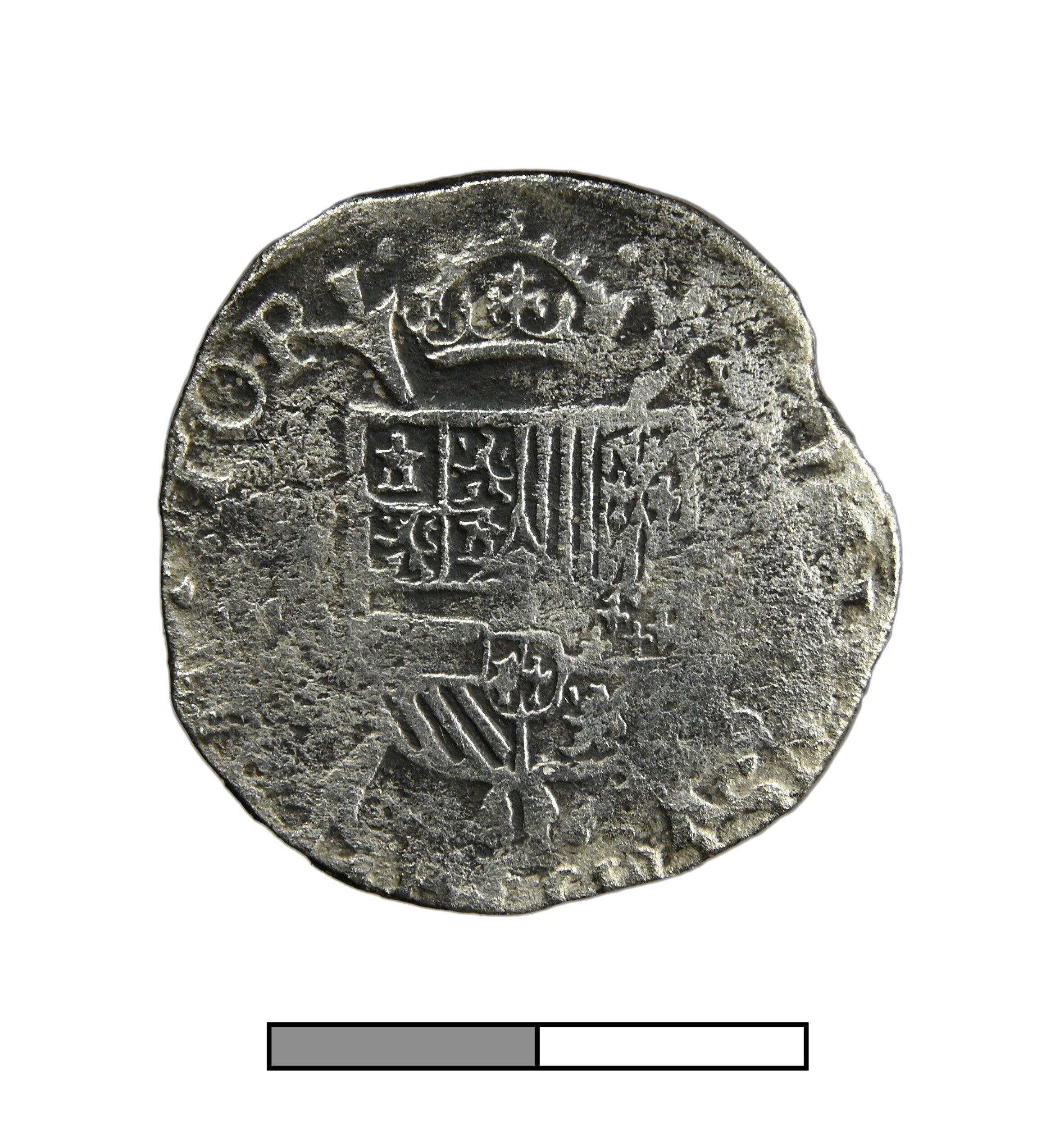 1/5 Philipsdaalder; Brabant Hertogdom (1183-1795); Philips II (1555-1581); vz.: geharnast borstbeeld van Philips II naar rechts, met omschrift PHS•D•G•HI[..]•- REX•DVX[…] 66; kz.: wapen van Philips II, met omschrift •DOMINVS• - MIHI•ADIVTOR•; dubbelslag; muntplaats: Antwerpen; gewicht: 5.7 gram; referentie: vHoudt 271.AN.1566