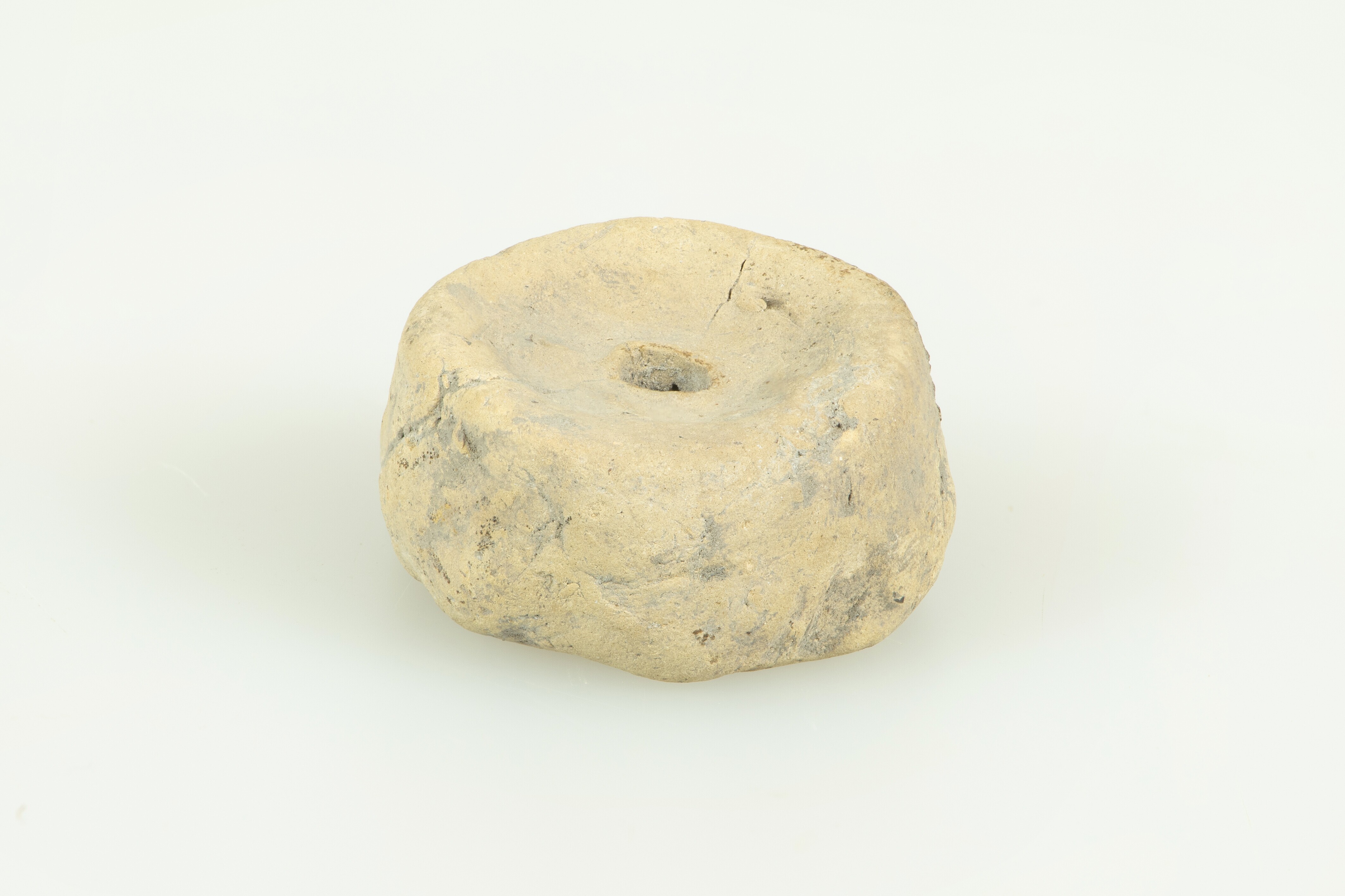 Spinklos; dik, rond schijfje met centrale doorboring; vondstdatum: 11-10-1967